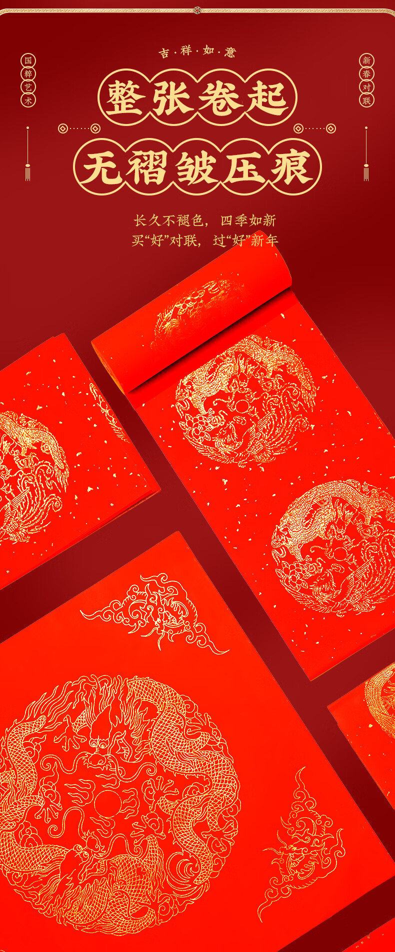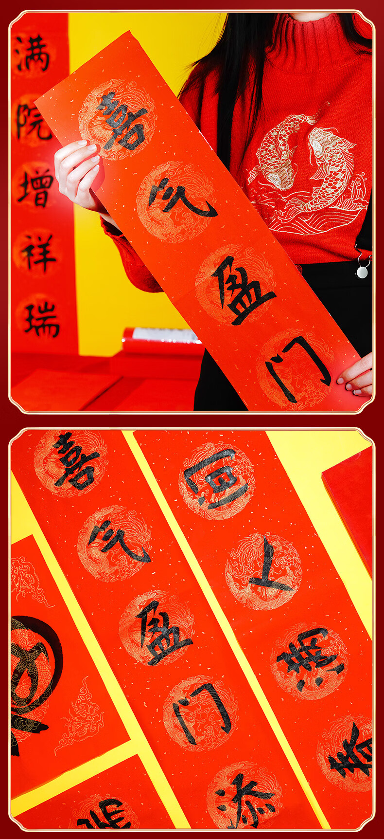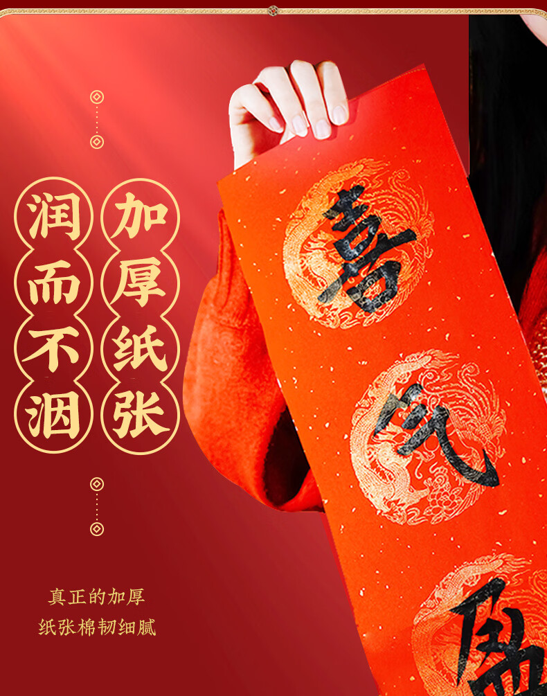 荣宝斋 【加厚】万年红对联春联专用纸 洒烫金蜡染福字宣纸 手写空白七言斗方红纸 2026新马年春节家用过 龙凤呈祥34*34cm【加厚】-10副
