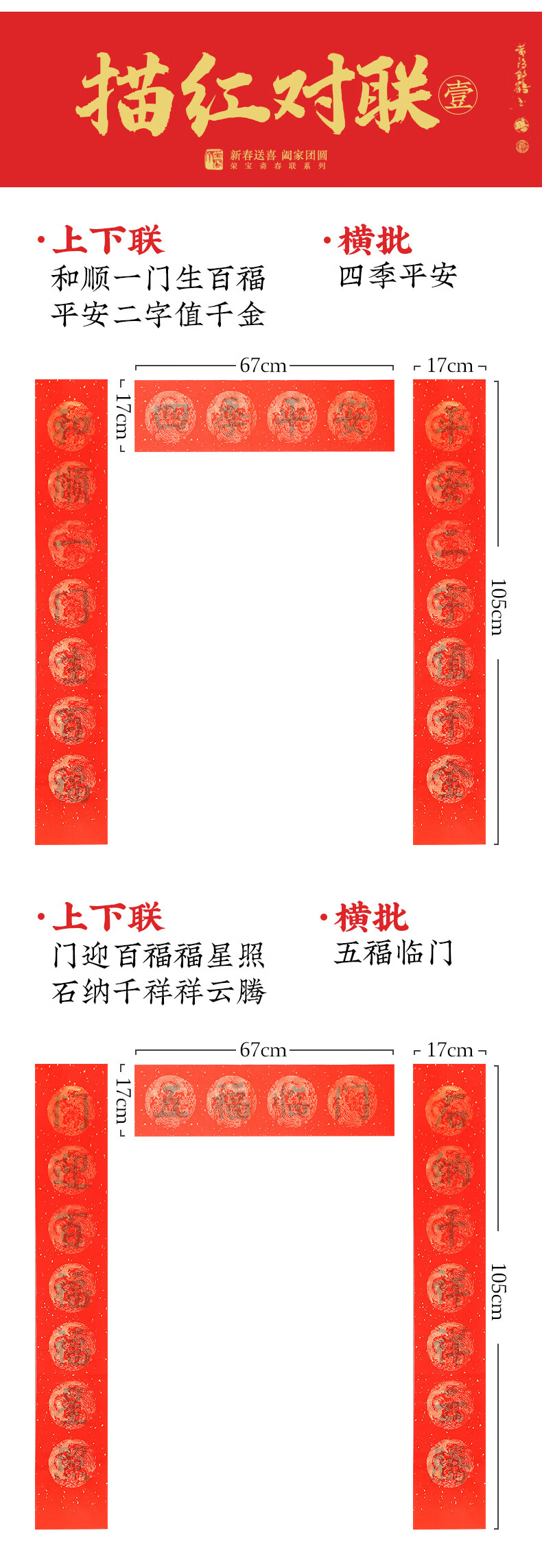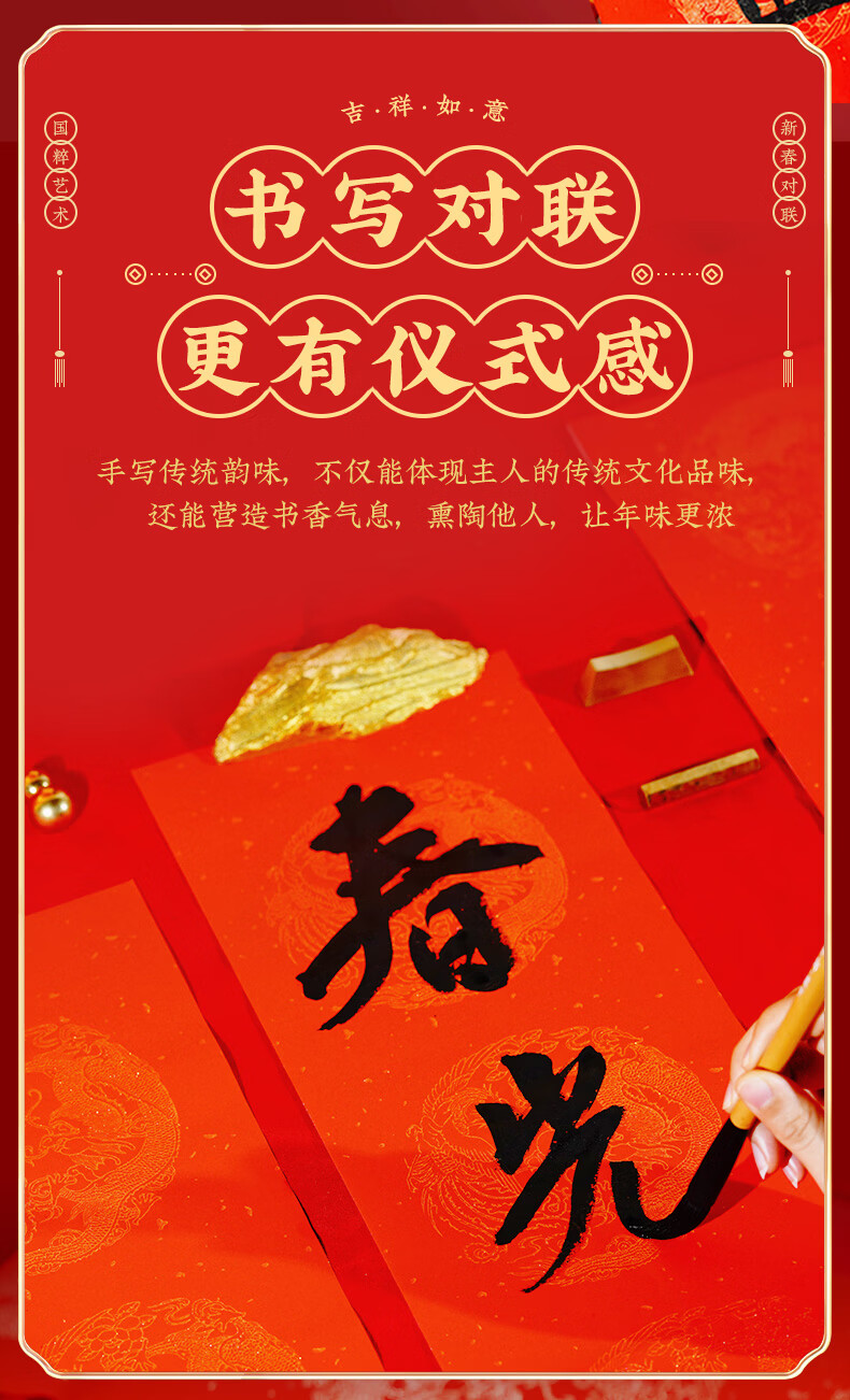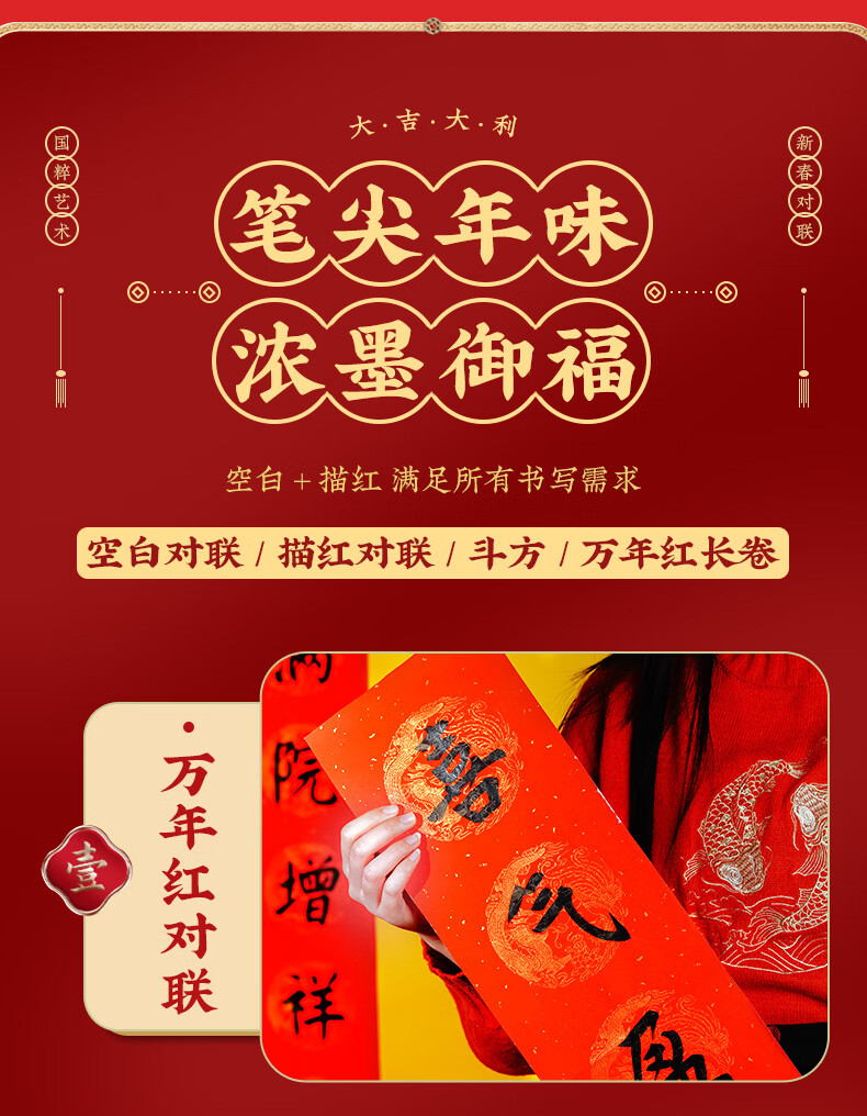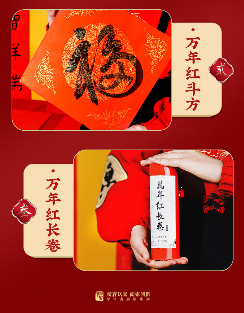 荣宝斋 【加厚】万年红对联春联专用纸 洒烫金蜡染福字宣纸 手写空白七言斗方红纸 2026新马年春节家用过 龙凤呈祥34*34cm【加厚】-10副