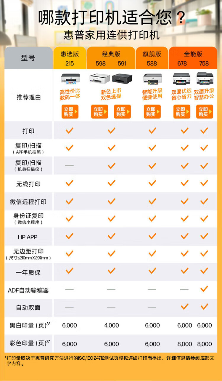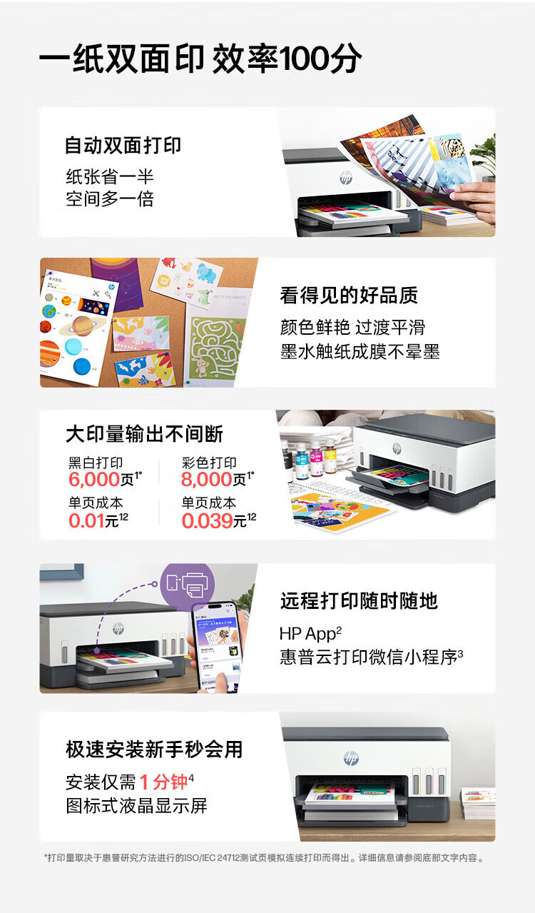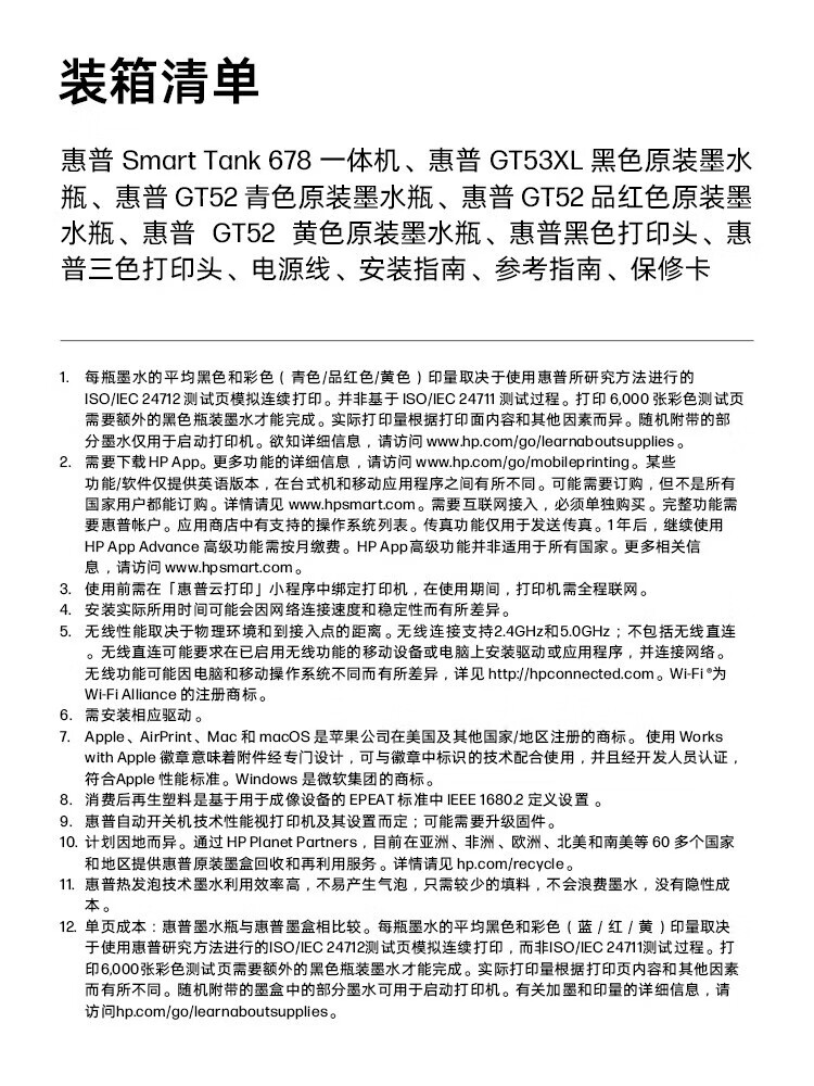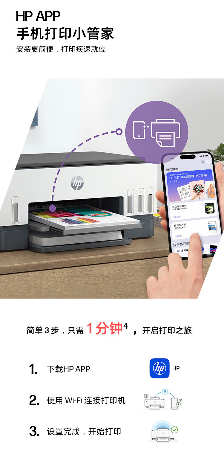 惠普(HP)678 彩色连供自动双面多功能喷墨打印机 无线连接 微信打印 复印扫描 家用作业