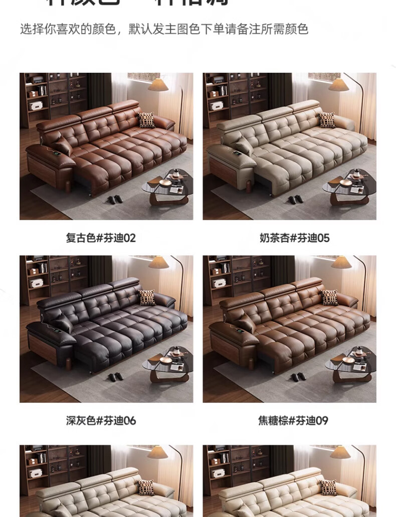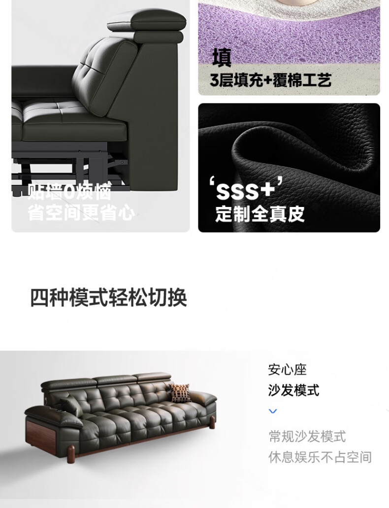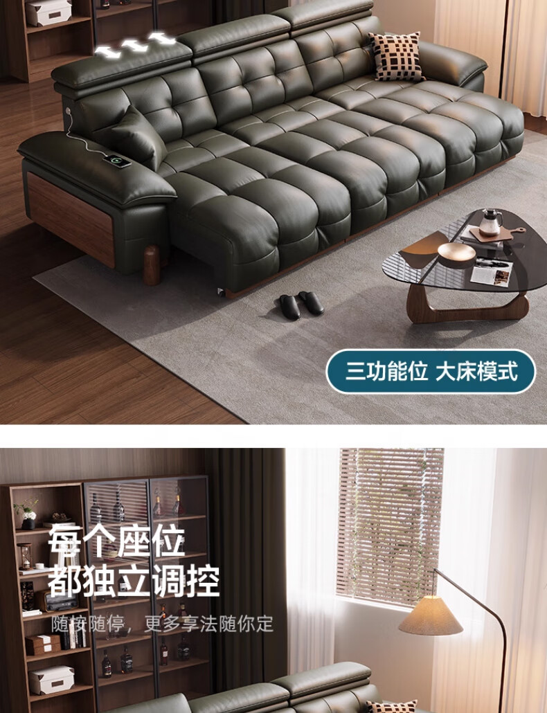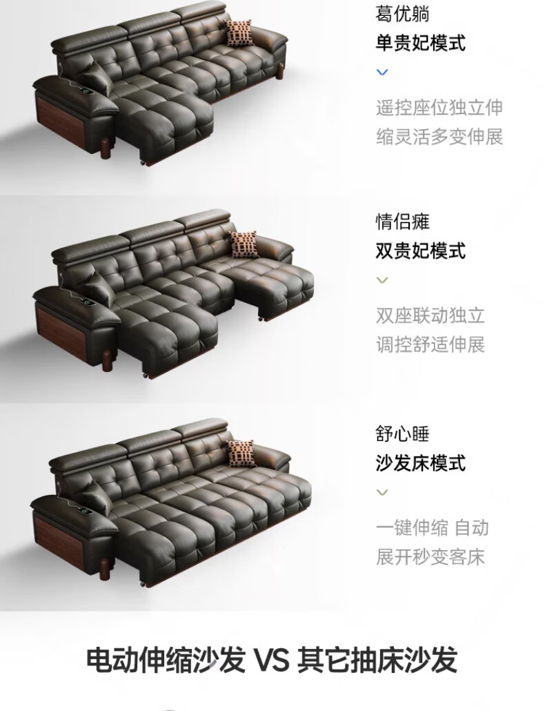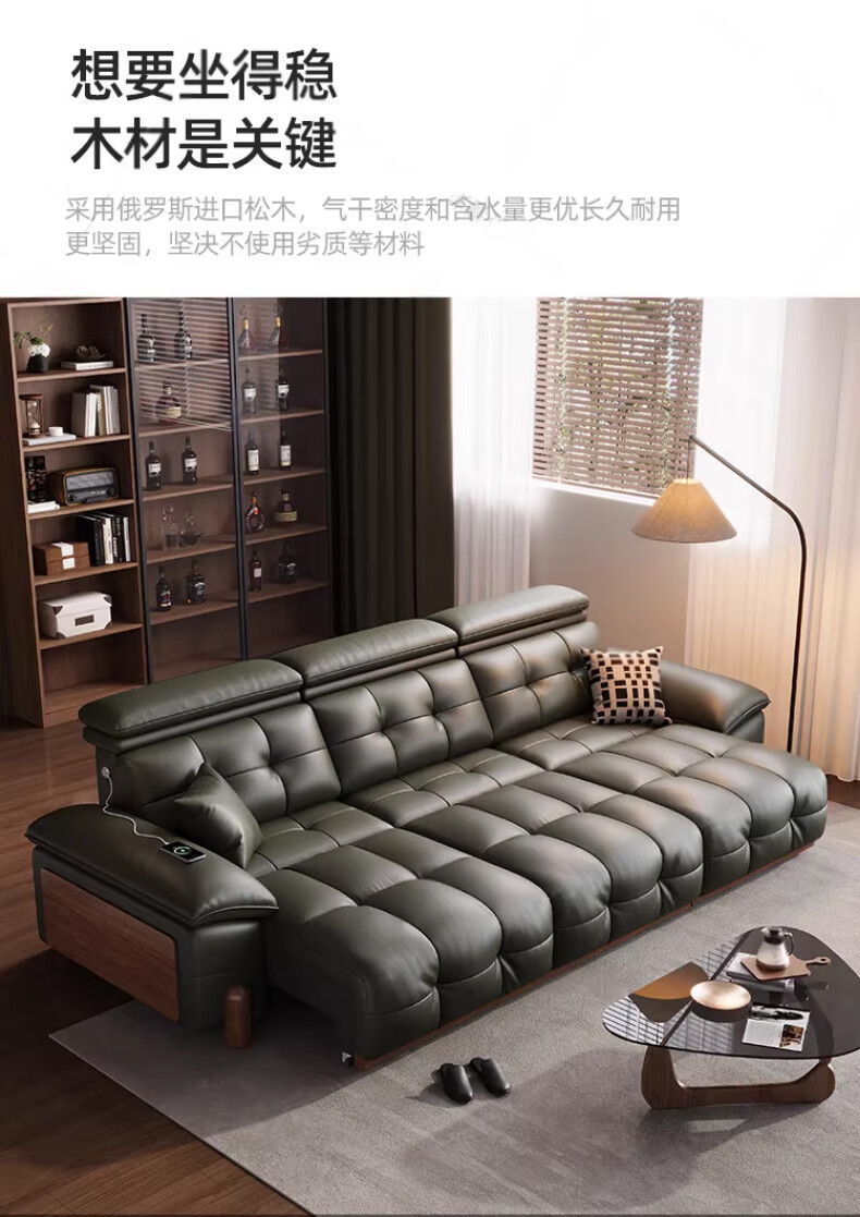 泊家复古风真皮电动沙发客厅2025新款实木头层牛皮功能沙发床一体两用 3.35米三位/3电机+遥控+app声控 360°全真皮包裹+3.0加厚粒面全青皮