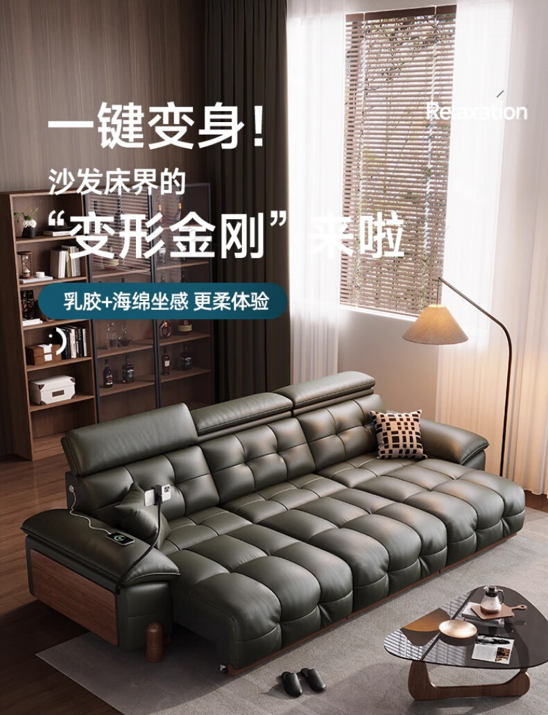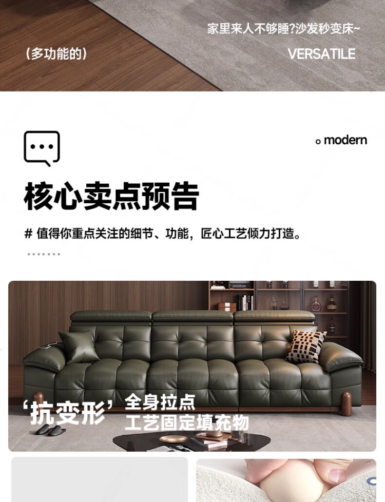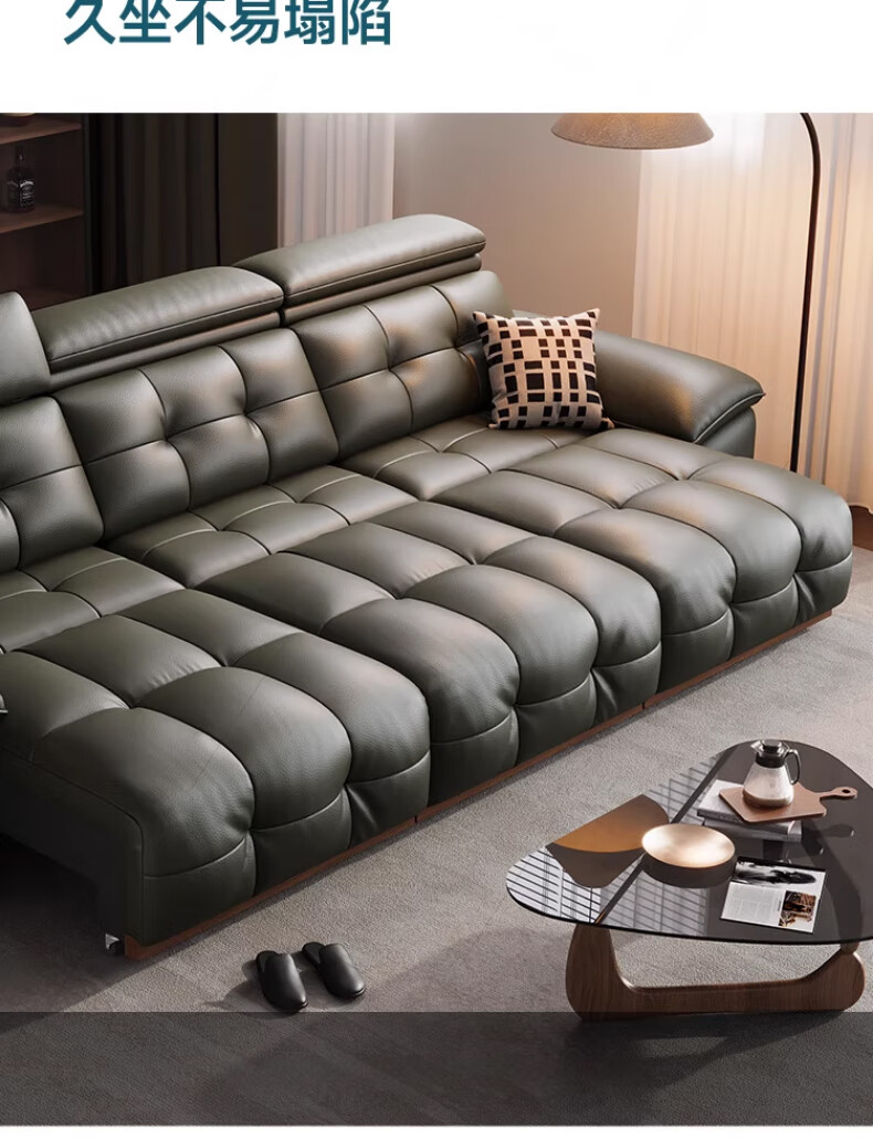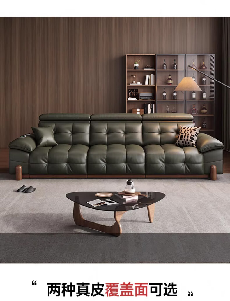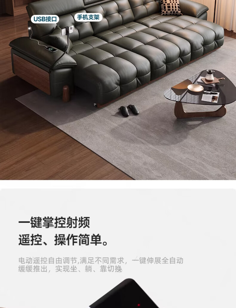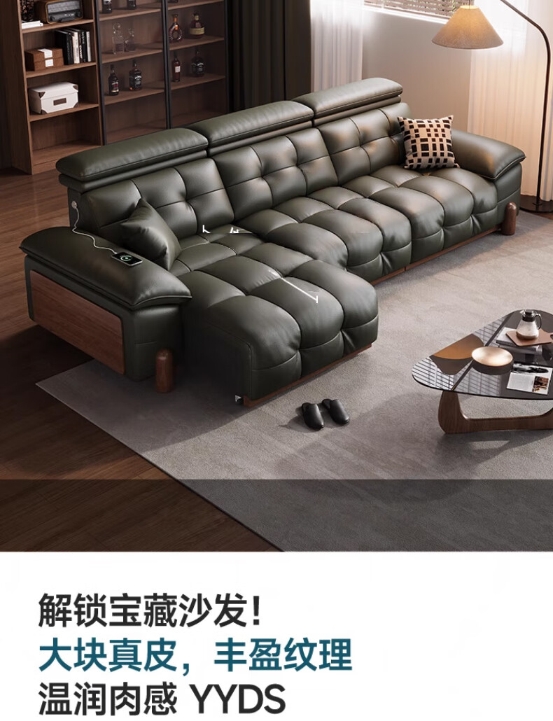 泊家复古风真皮电动沙发客厅2025新款实木头层牛皮功能沙发床一体两用 3.35米三位/3电机+遥控+app声控 360°全真皮包裹+3.0加厚粒面全青皮