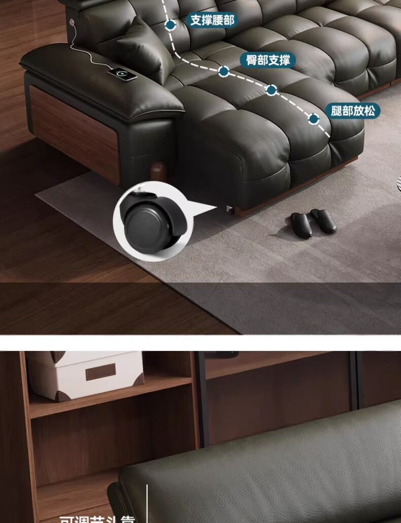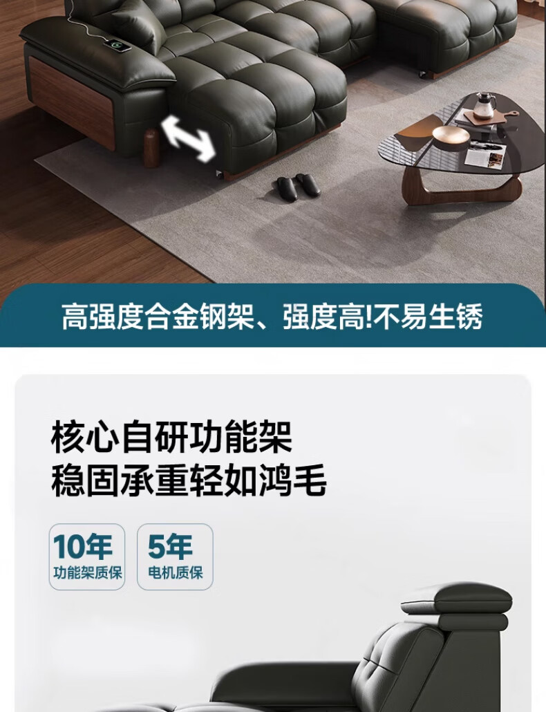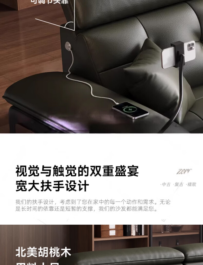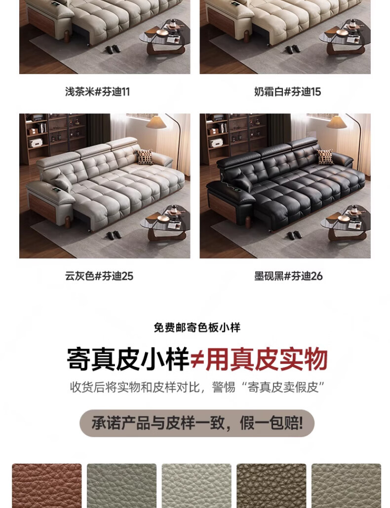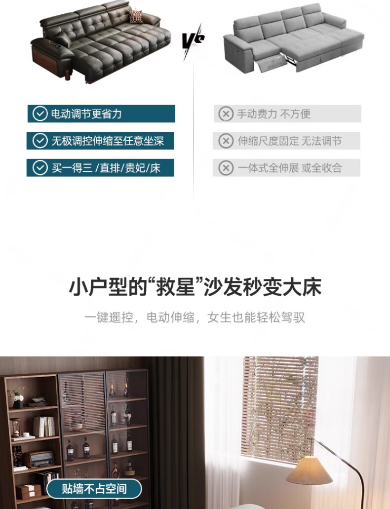 泊家复古风真皮电动沙发客厅2025新款实木头层牛皮功能沙发床一体两用 3.35米三位/3电机+遥控+app声控 360°全真皮包裹+3.0加厚粒面全青皮