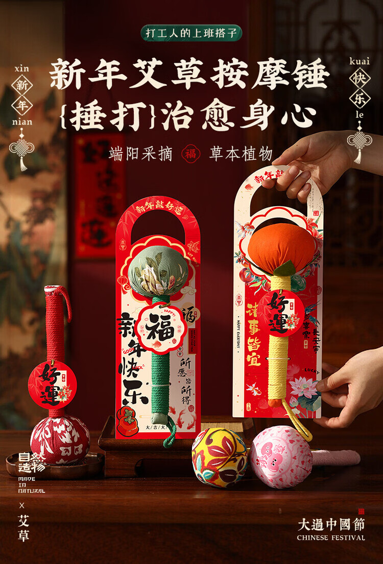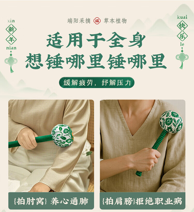 OYKTN新年礼物养生艾草锤送爸爸妈妈贴心按摩伴手礼实用好礼送好朋友 【诸事顺遂】柿子艾草锤(成品)
