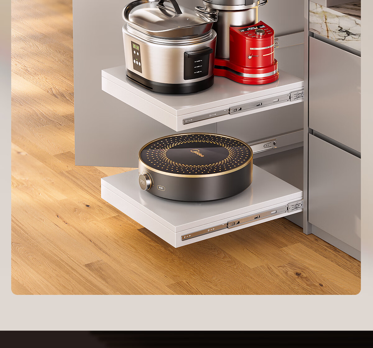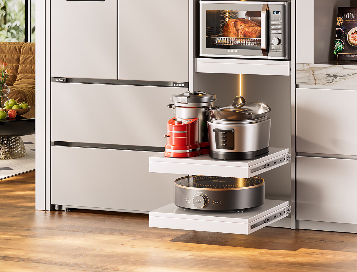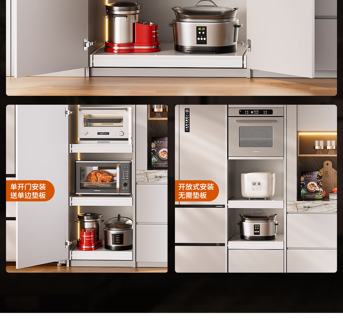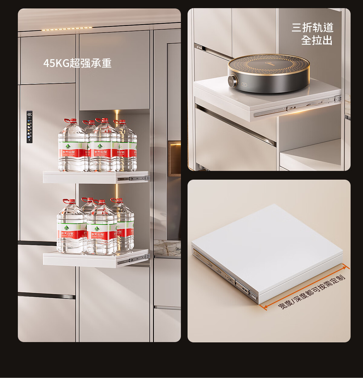 德米莫拉篮德米莫高柜阻尼抽屉拉篮厨房橱柜轨道大怪物高深浅餐边柜 500柜300深 珍珠白-全拉阻尼轨道+层板(15天发货)