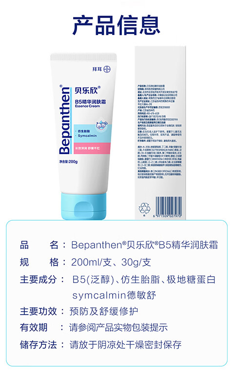 Bepanthen贝乐欣 拜耳新生儿B5精华润肤婴儿秋冬滋润儿童身体乳 B5精华润肤乳200ml+30g
