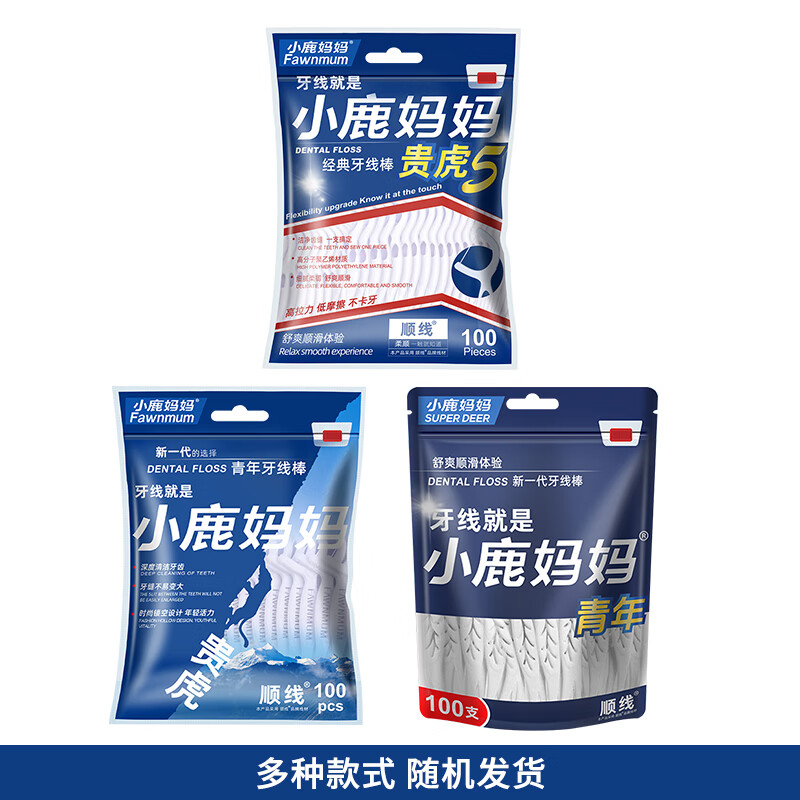 小鹿妈妈(FAWNMUM)牙线棒家用经典舒适超细清洁牙缝家庭用剔牙线 100支 5袋