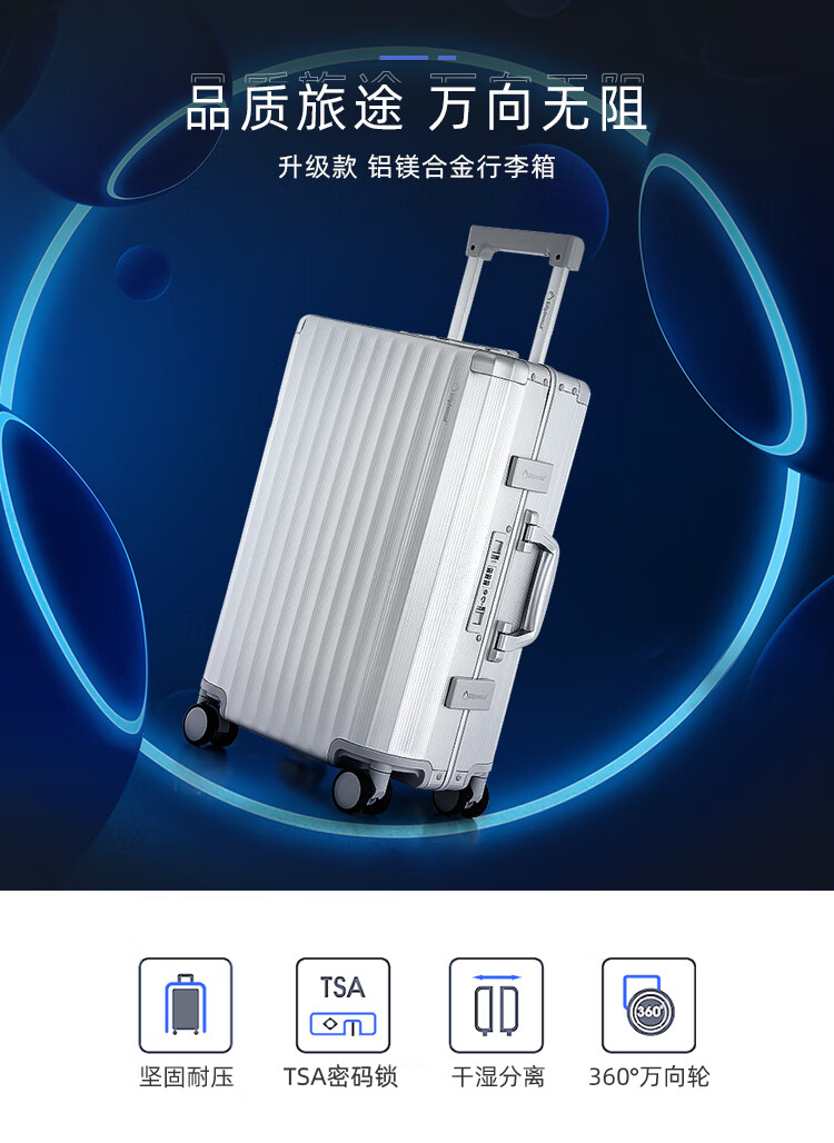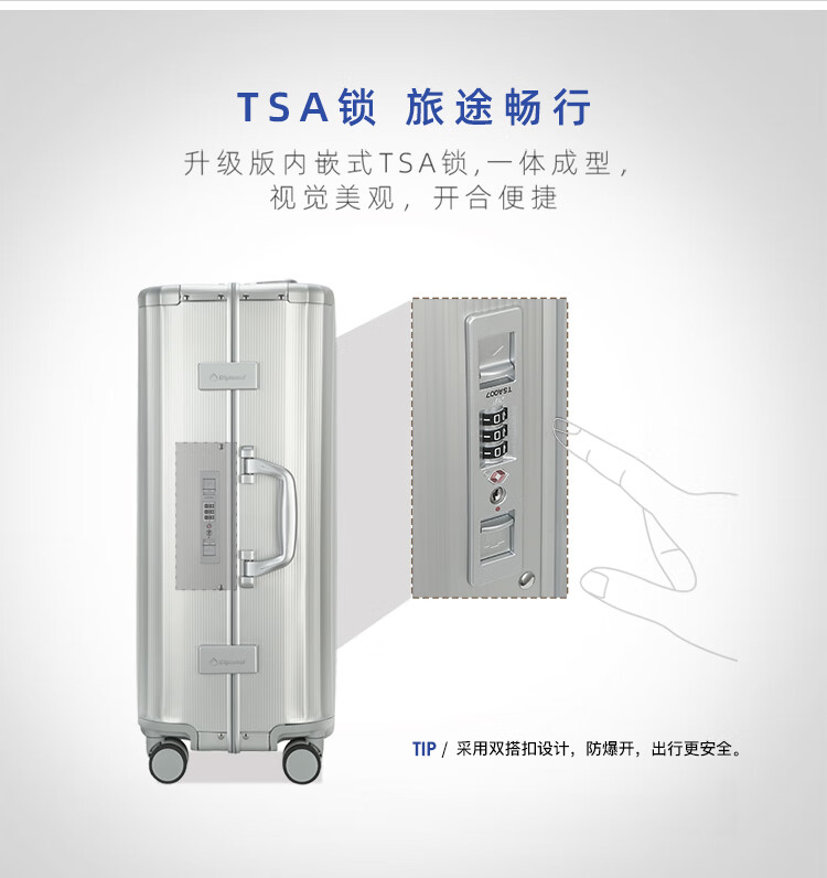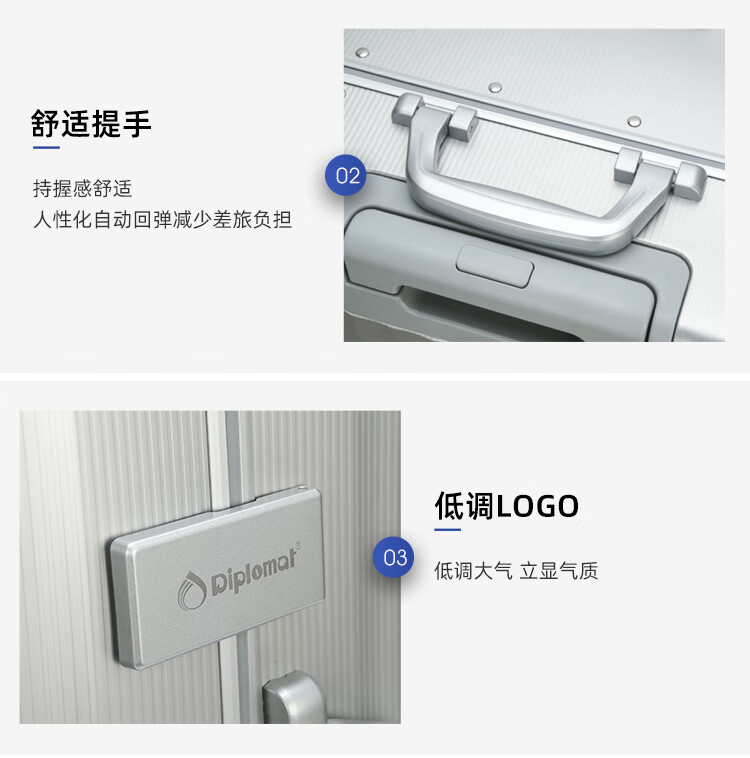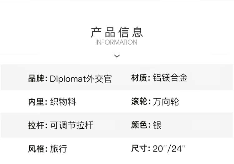 Diplomat外交官行李箱时尚镁铝合金铝框男女旅行拉杆箱TL-25052银色20英寸