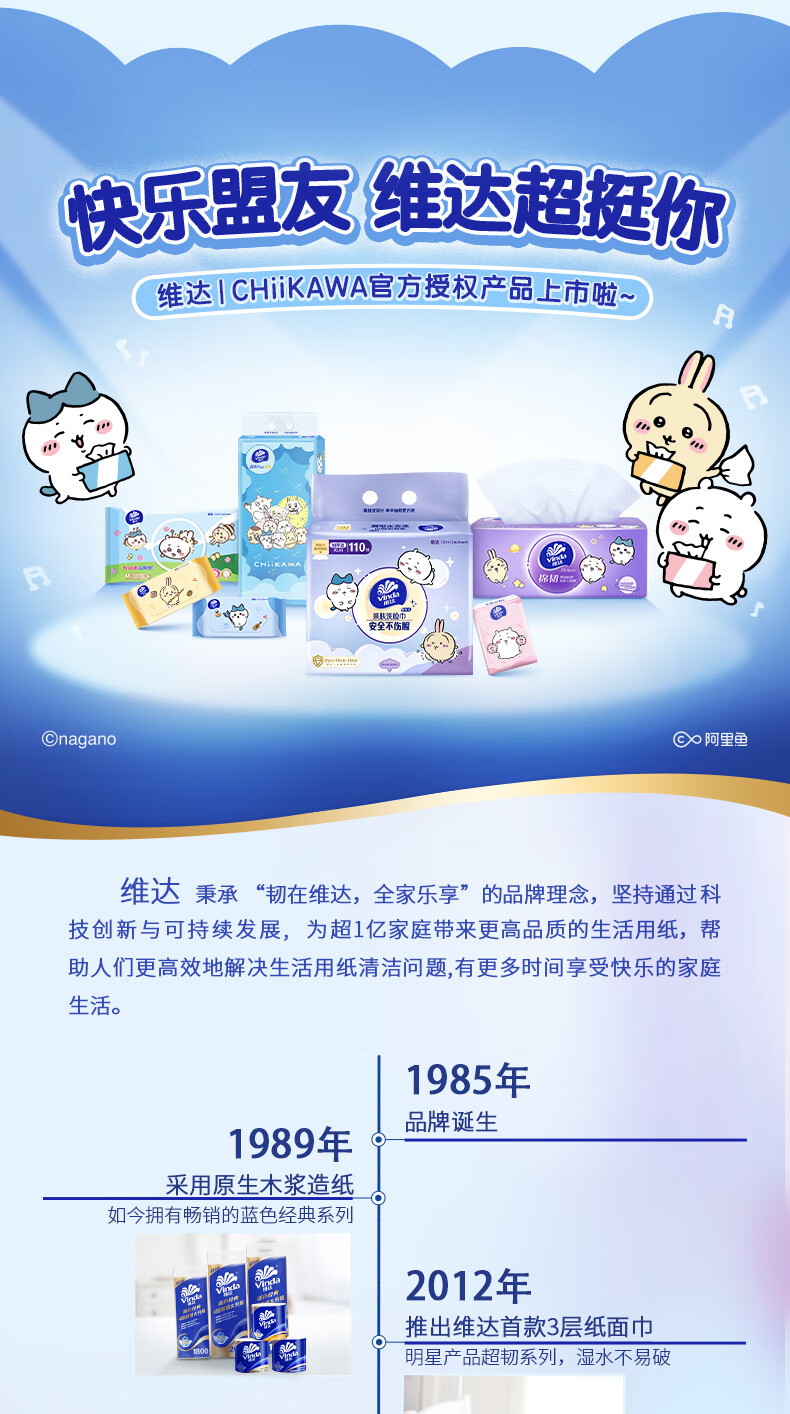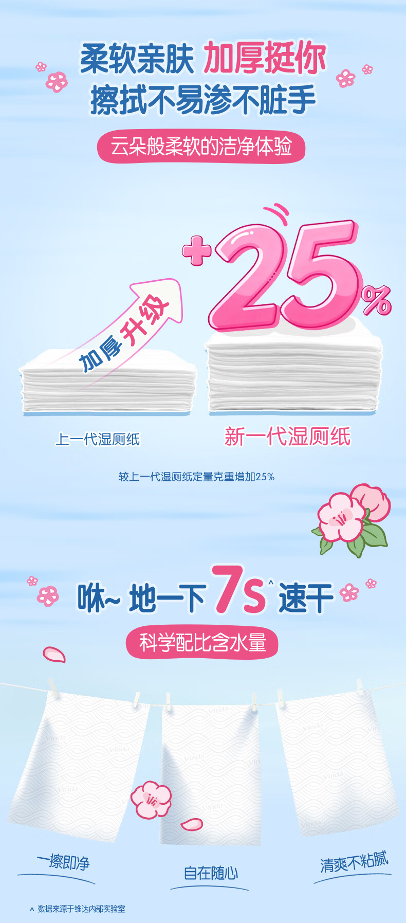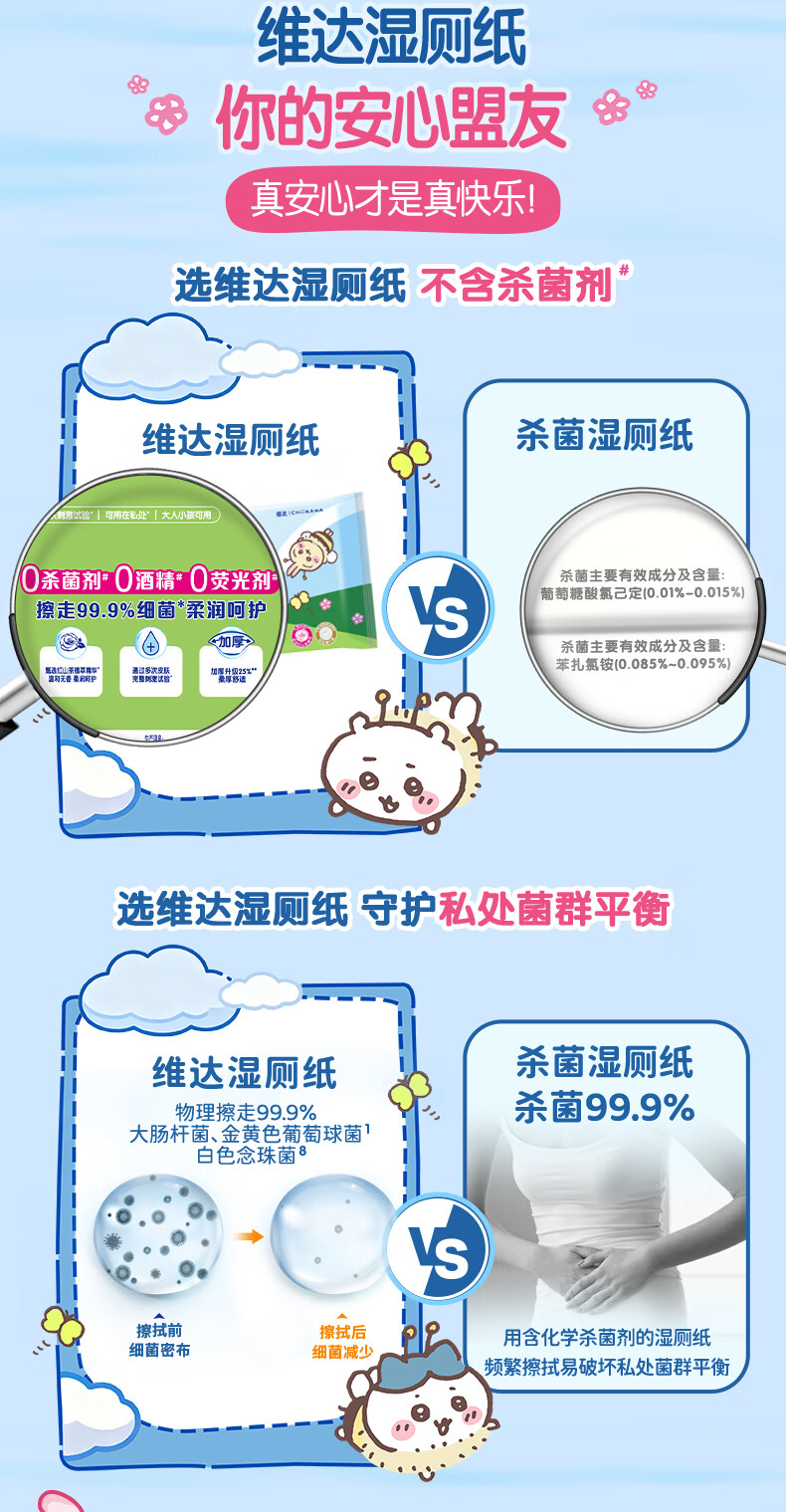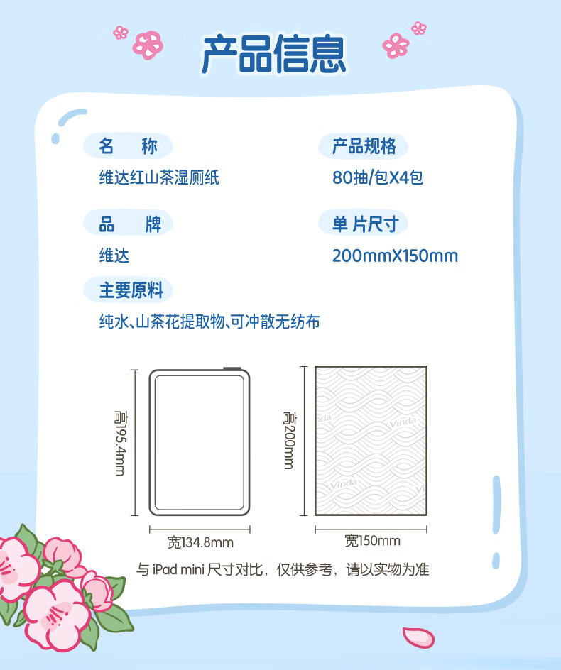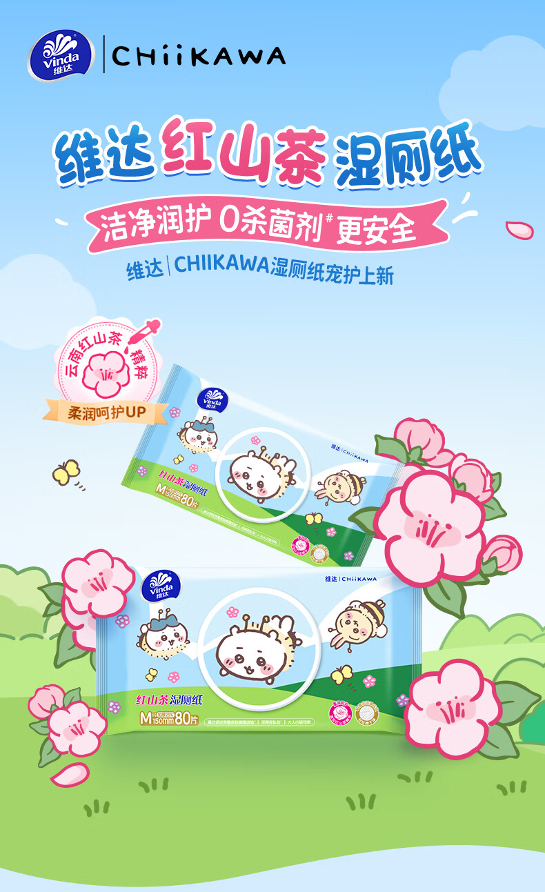 维达|CHIIKAWA湿厕纸80片*4包 红山茶精华 湿纸巾厕纸洁厕湿巾湿厕巾