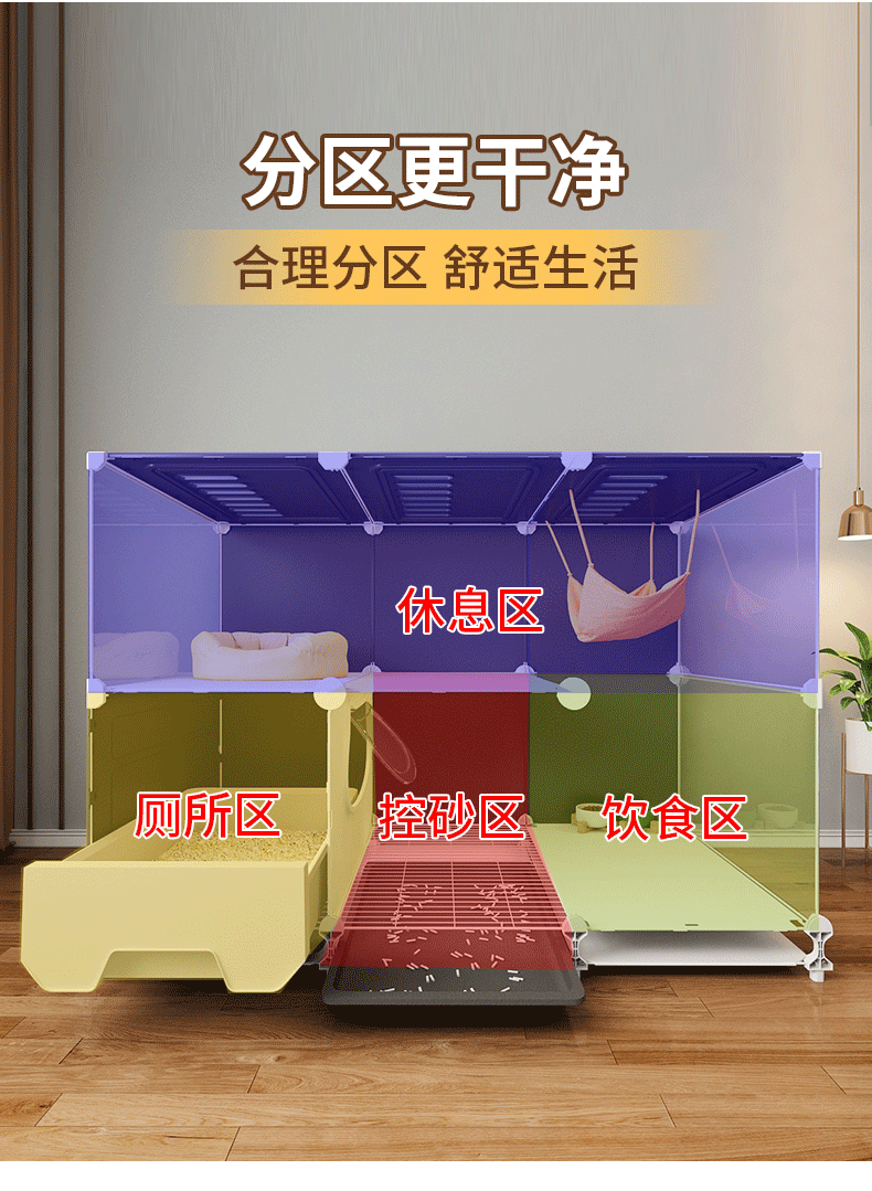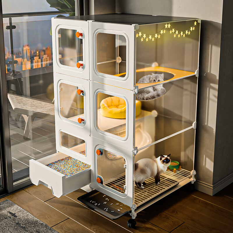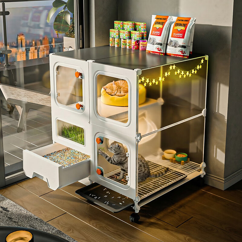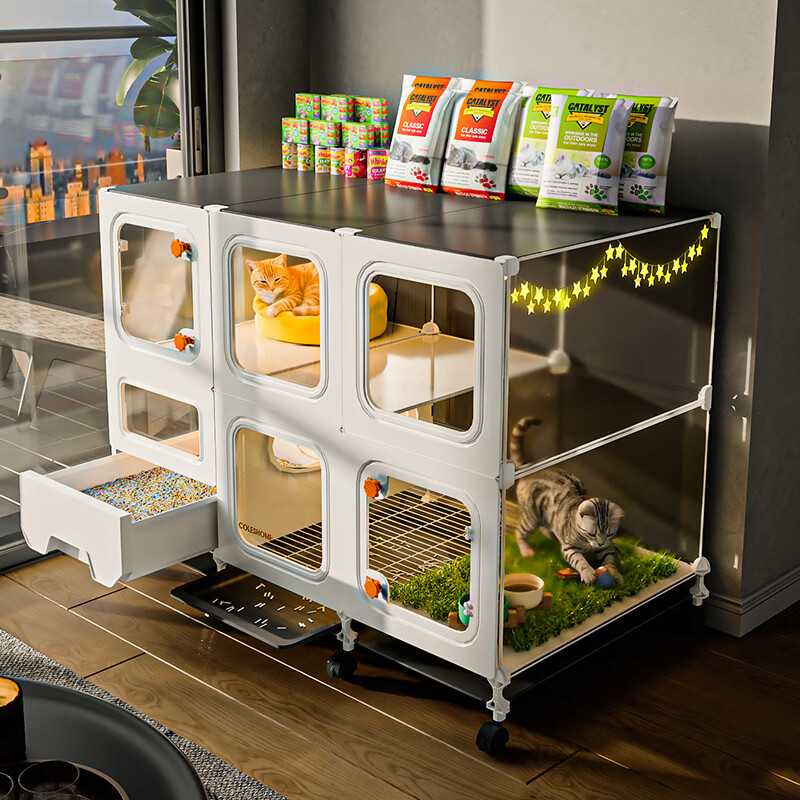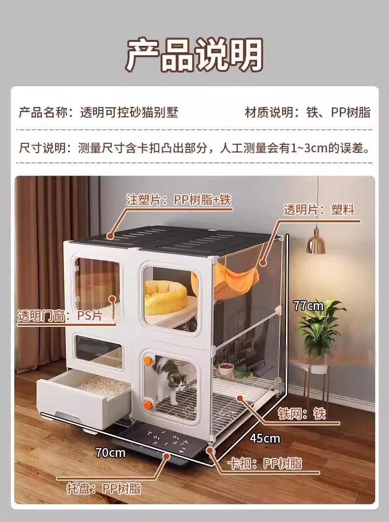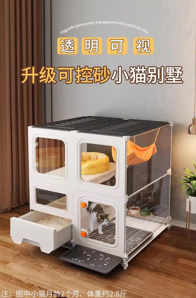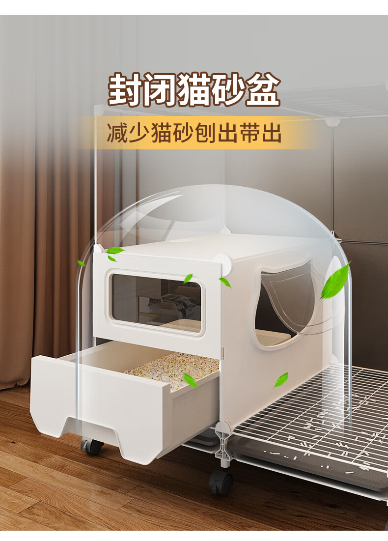 蔻丝猫笼子家用室内超大自由空间双托盘可控砂猫窝猫厕所一体猫咪别墅
