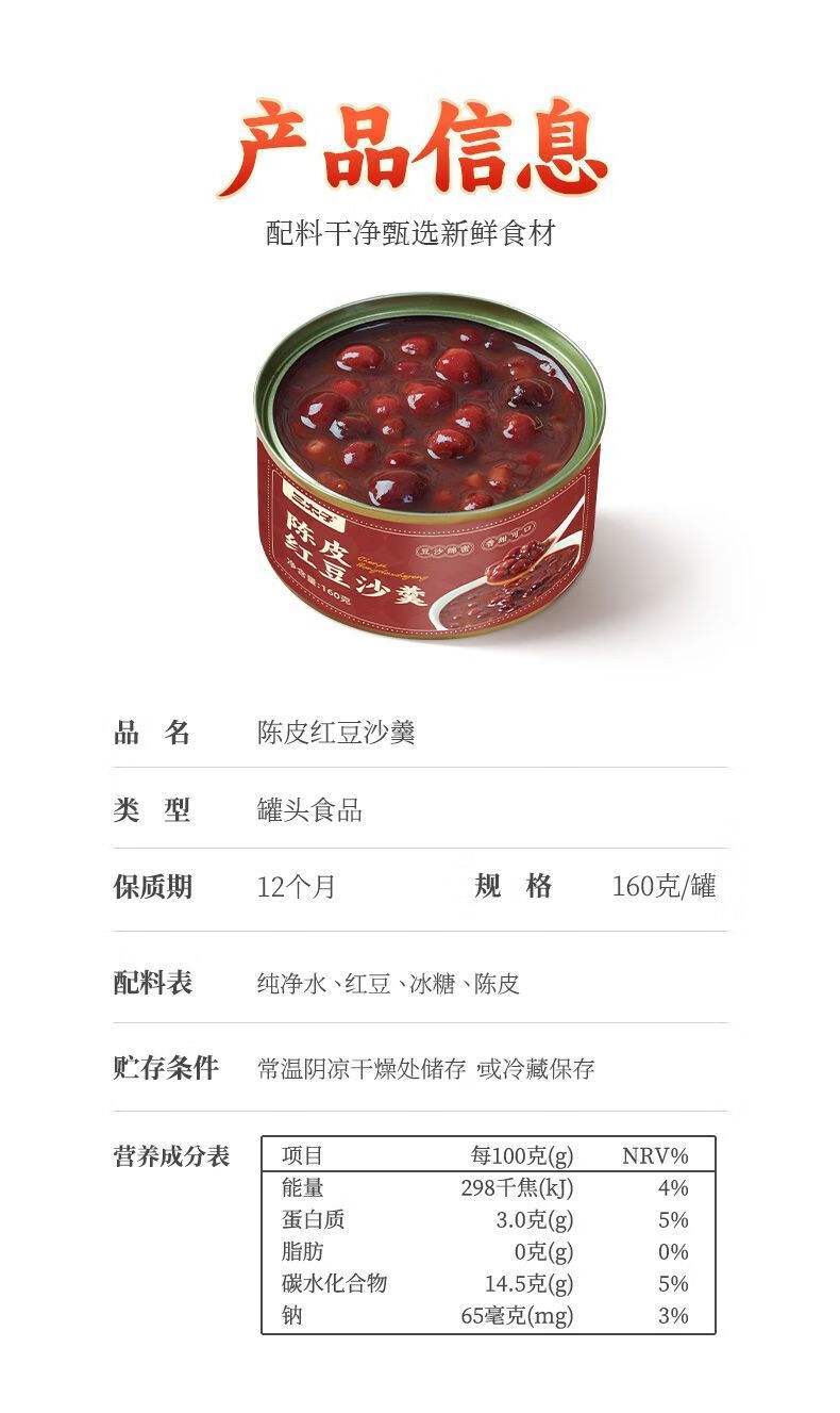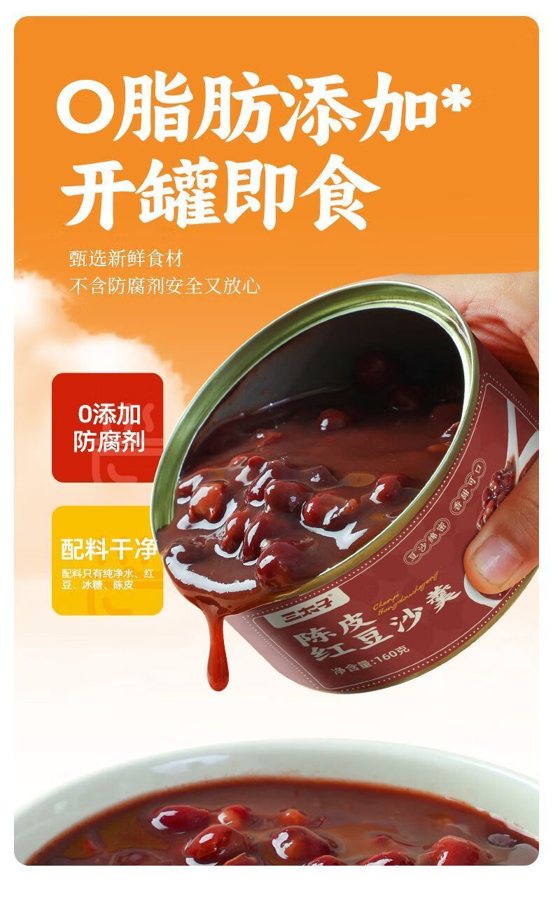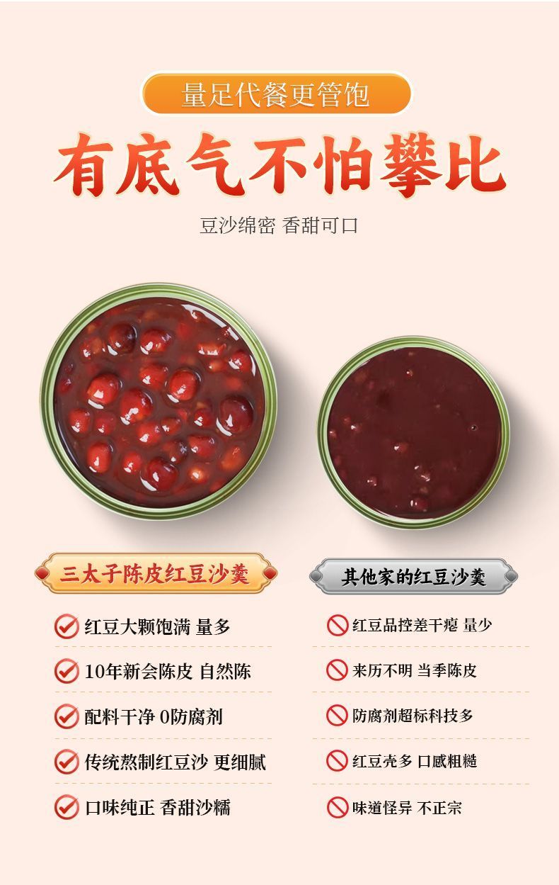 三太子陈皮红豆沙羹代餐速食粥免煮上班便携早餐甜品罐头 三太子陈皮红豆沙羹160克*4罐