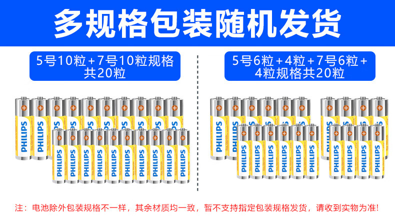 飞利浦(PHILIPS)碳性5号电池7号电池各10粒/20粒干电池适用遥控器/钟表/电子称/计算器/闹钟/耳温枪七号电池5号