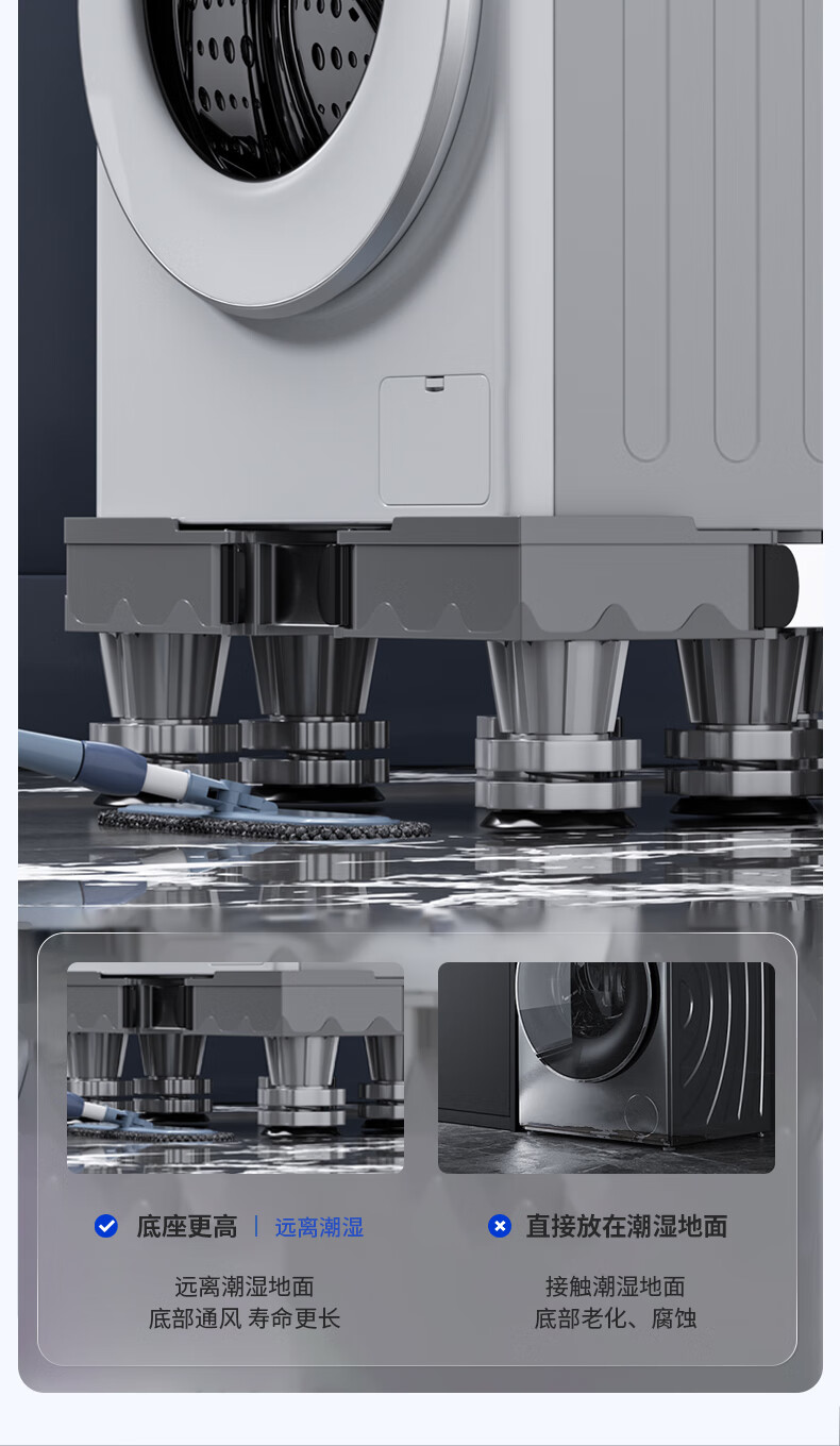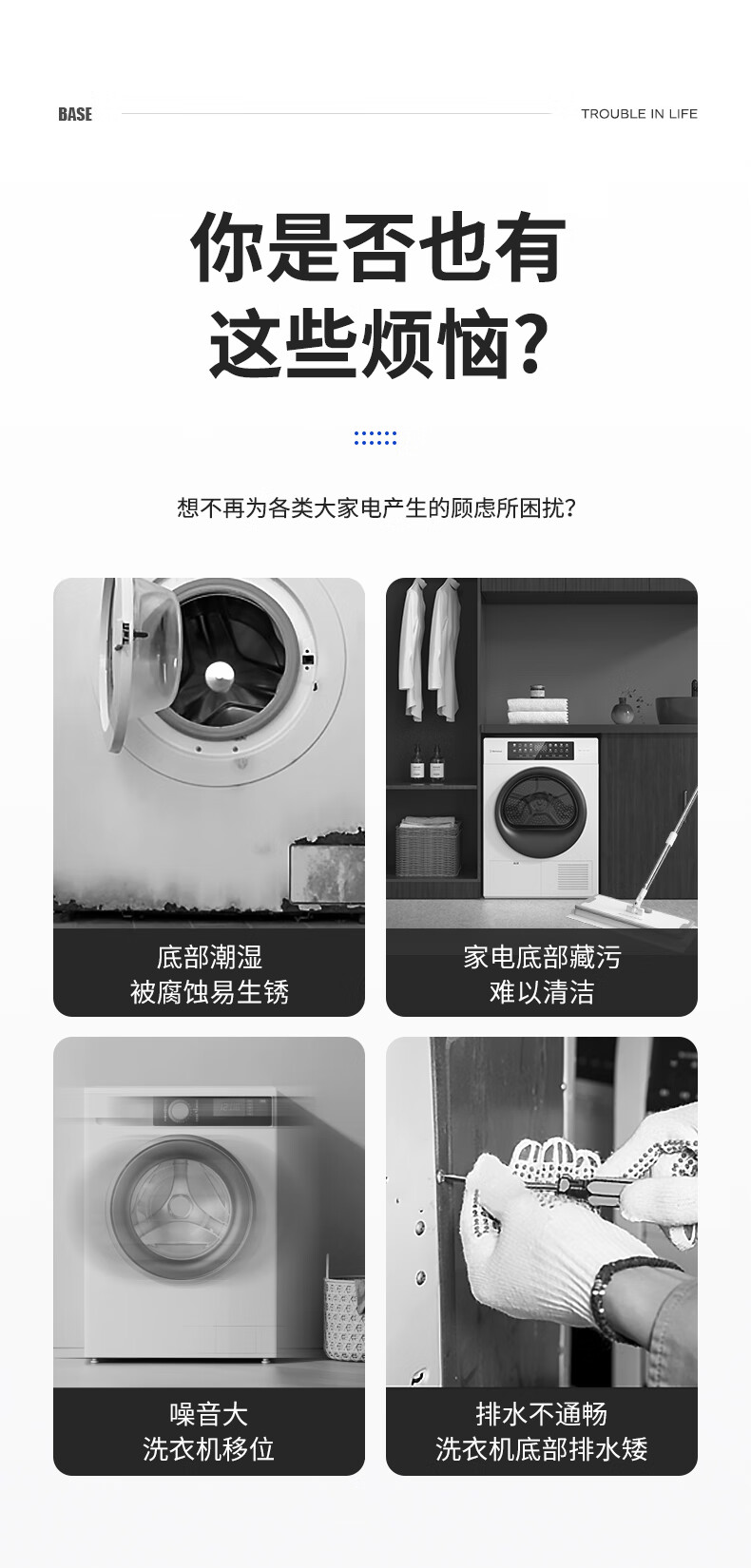 妙馨思洗衣机底座全增支架波轮滚筒防滑支架防震脚垫脚架冰箱洗衣机底座移动架加高滑轮底架托盘海尔通用