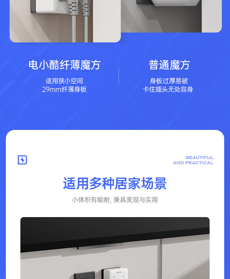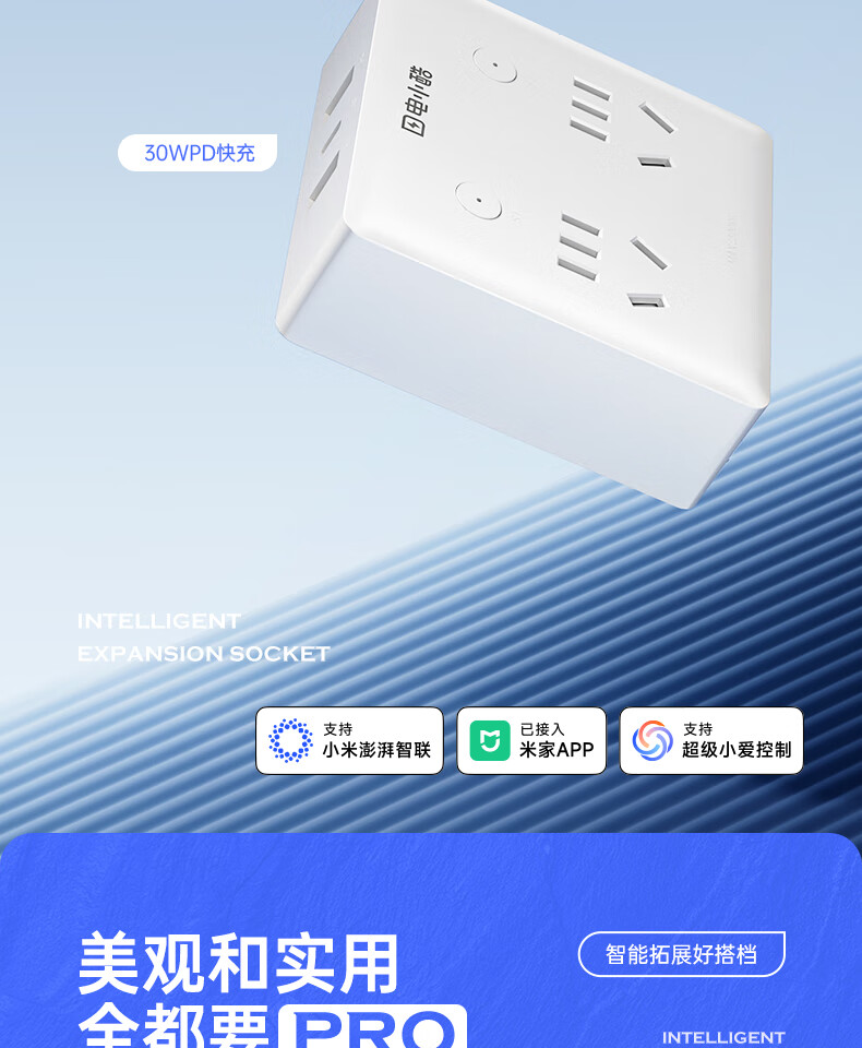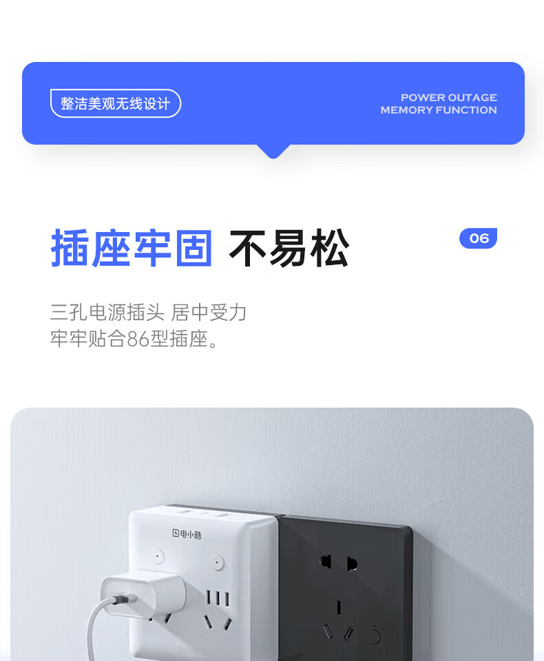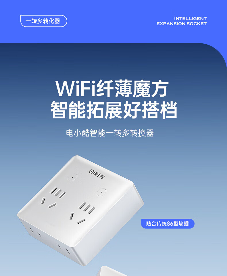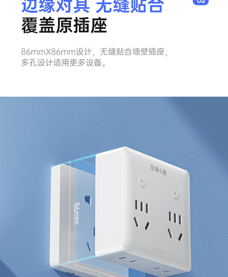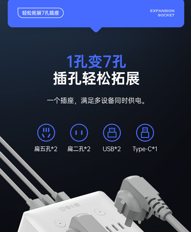 电小酷1转7智能86型墙壁拓展插头CP7Pro 定时开关 电量统计 童锁 过载断电 已接入米家APP 30W快充插头