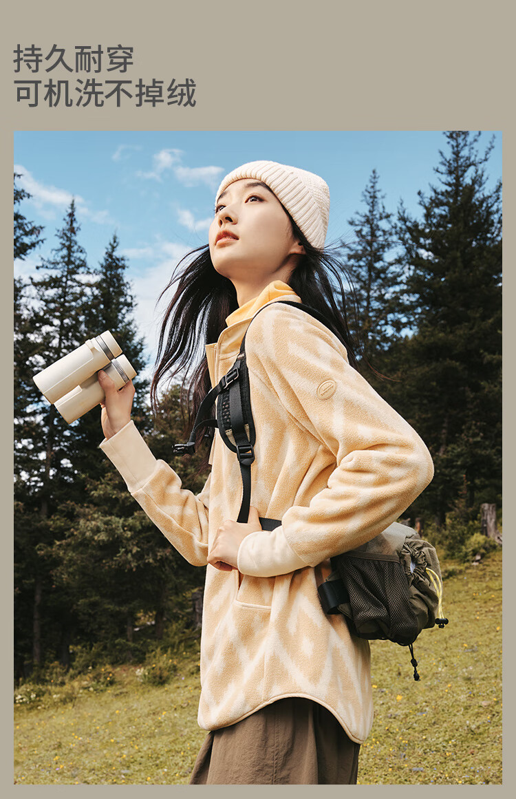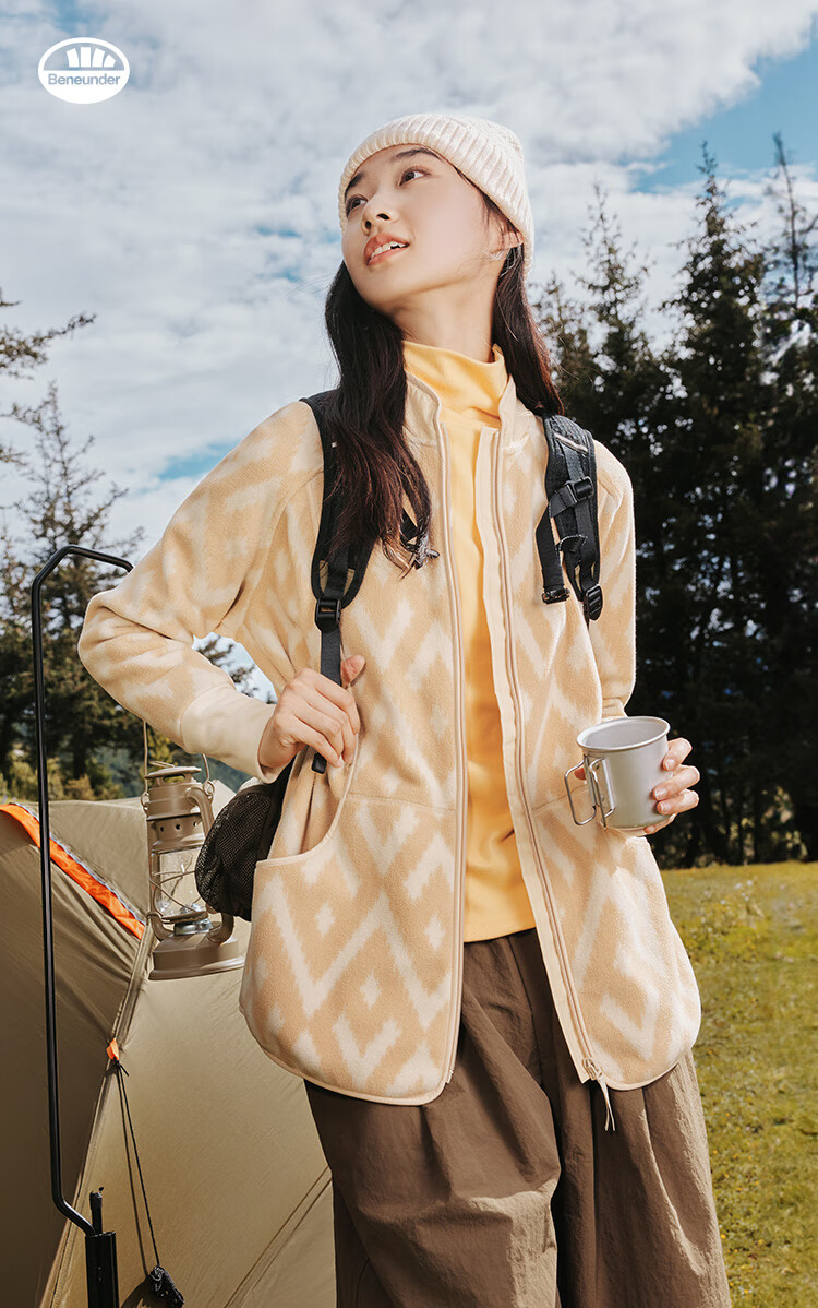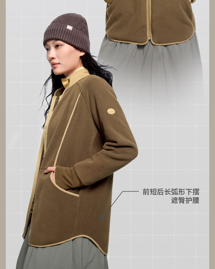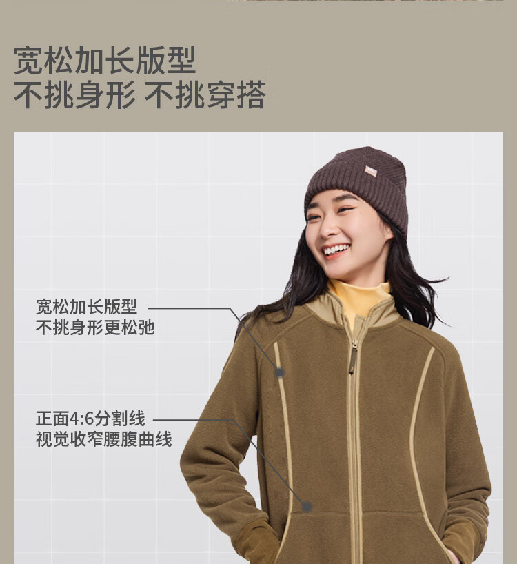 蕉下(beneunder)万粒绒外套宽松秋冬时尚休闲保暖抓绒外套女PO874 松露棕 M 160/84A