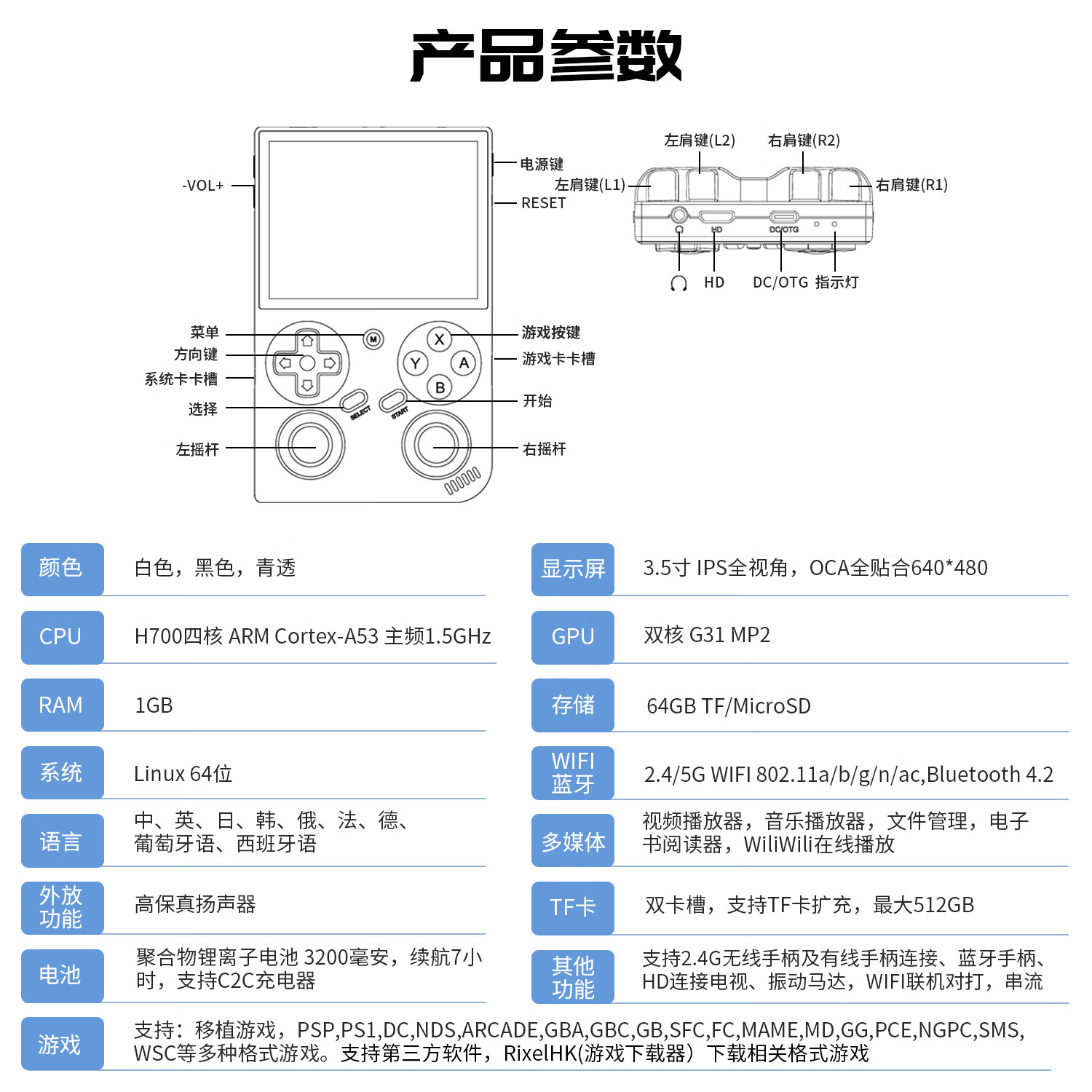 ANBERNIC安伯尼克RG 35XXPro掌机2025新款街机双摇杆连接电视掌上游戏机便携复古怀旧连手柄 青透 RG35XXPro标配64G
