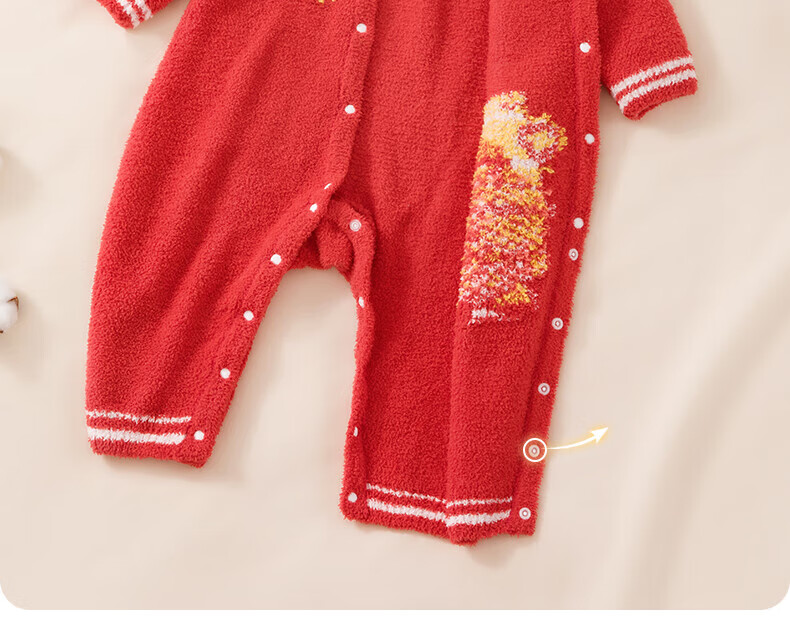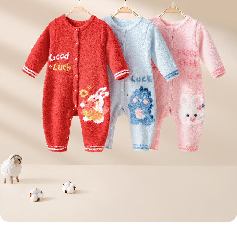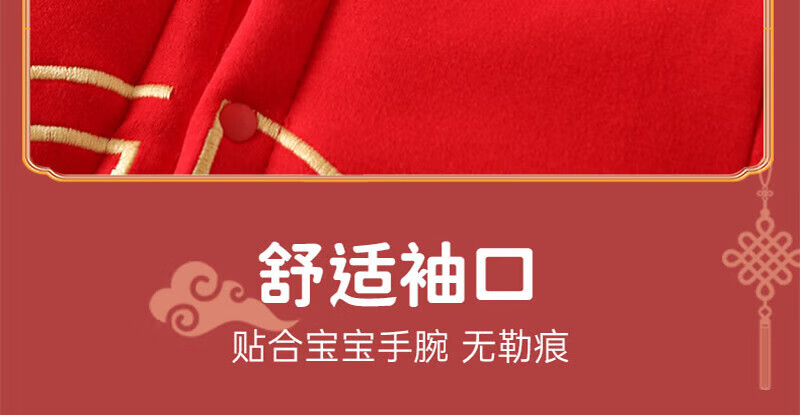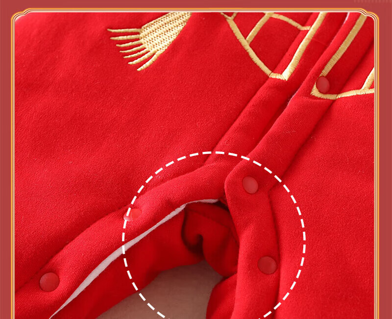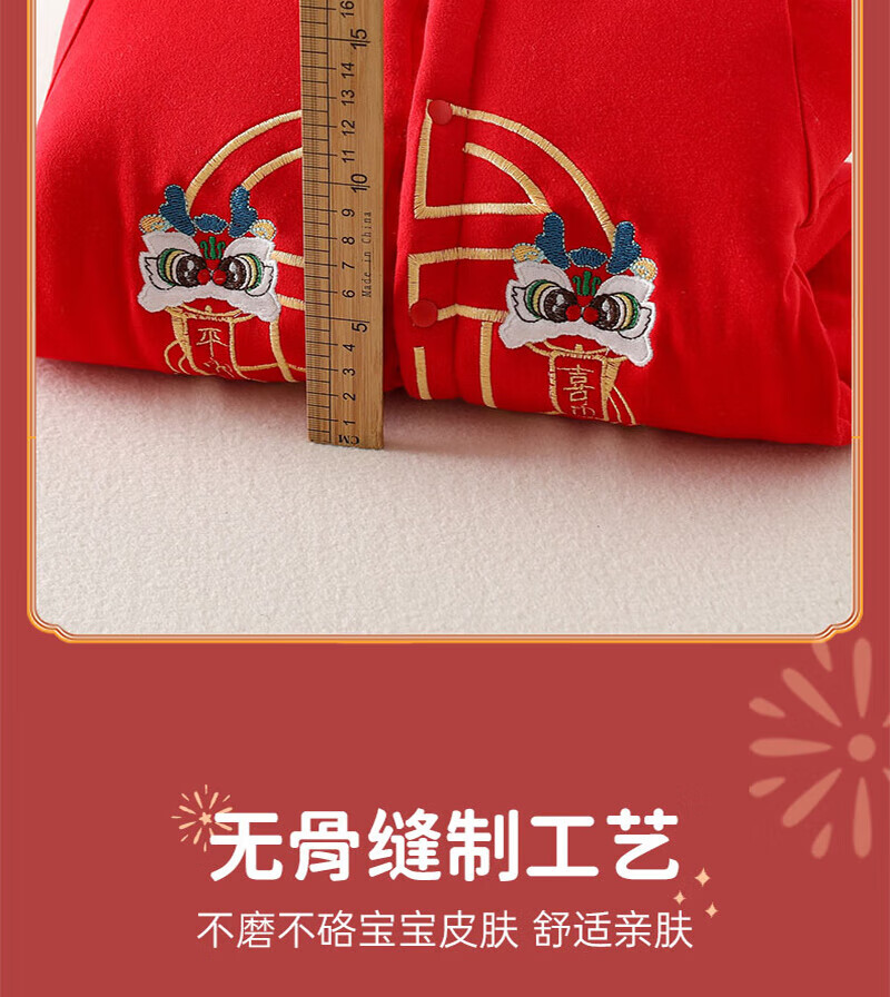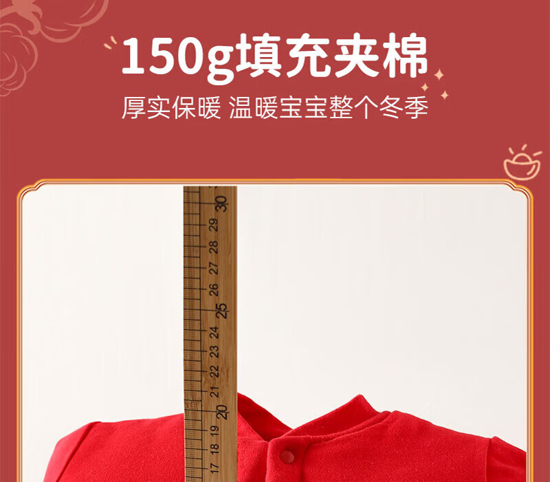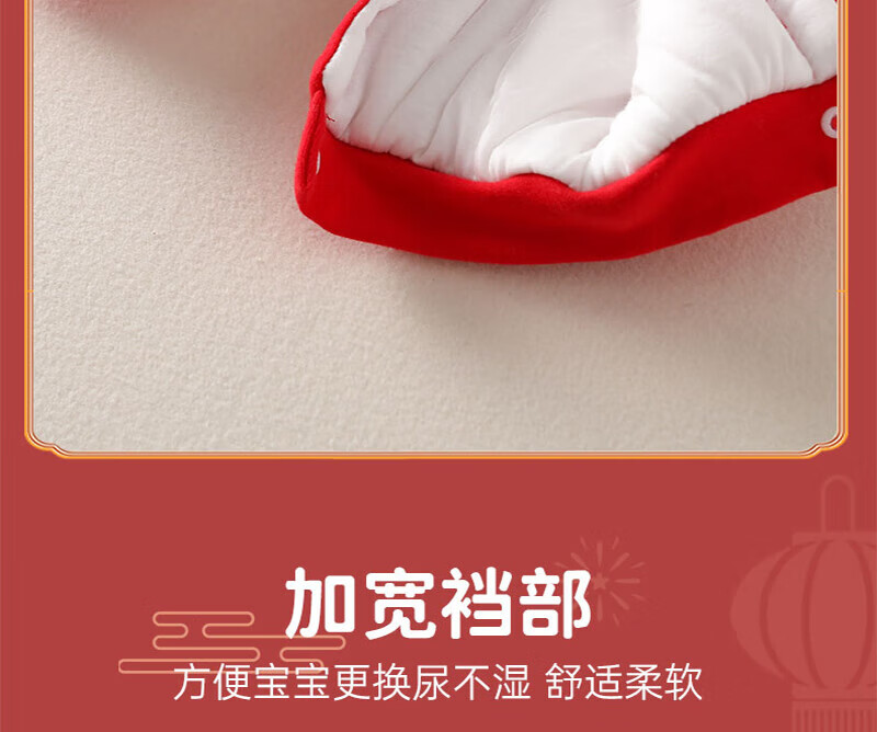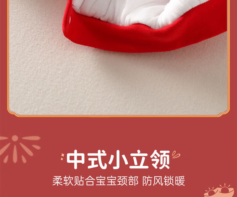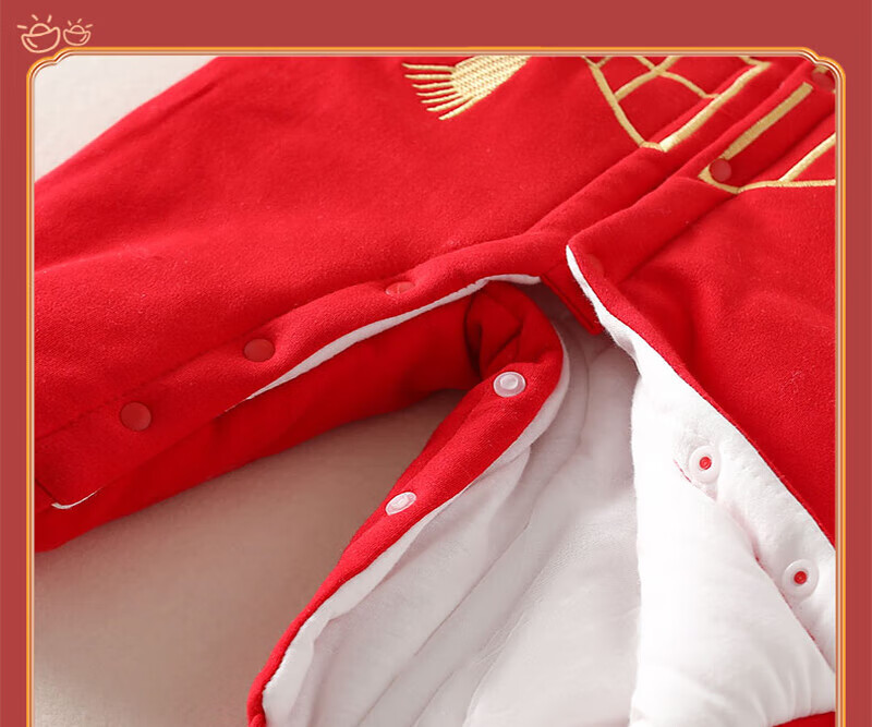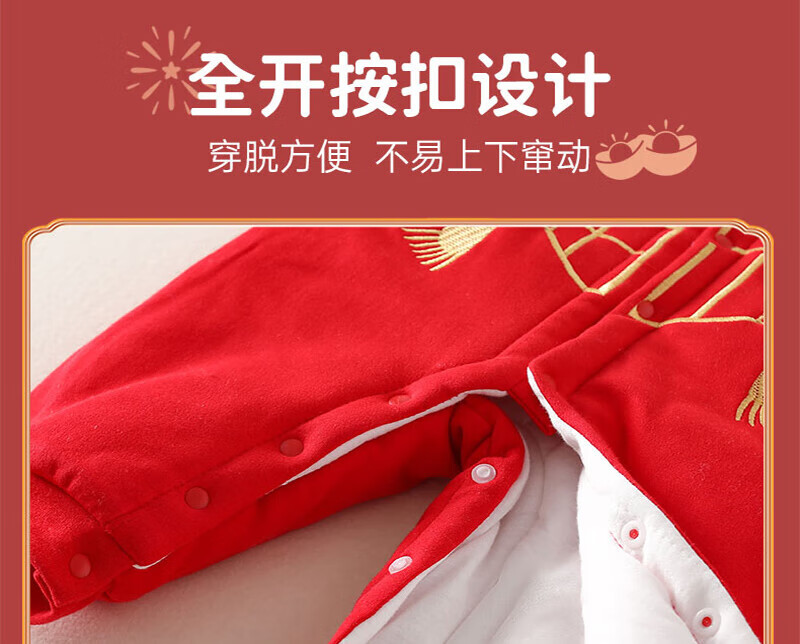 贝肽斯婴儿夹棉连体衣春秋季宝宝过年拜年衣服新生儿满月保暖衣 平安喜乐 80cm