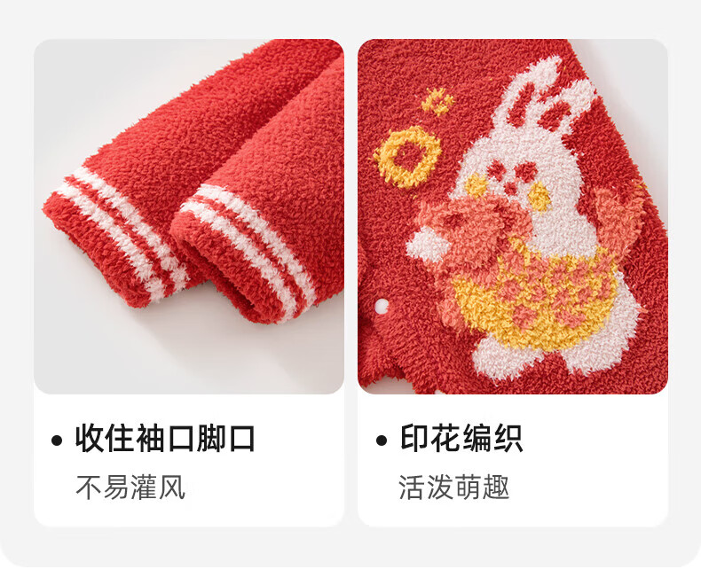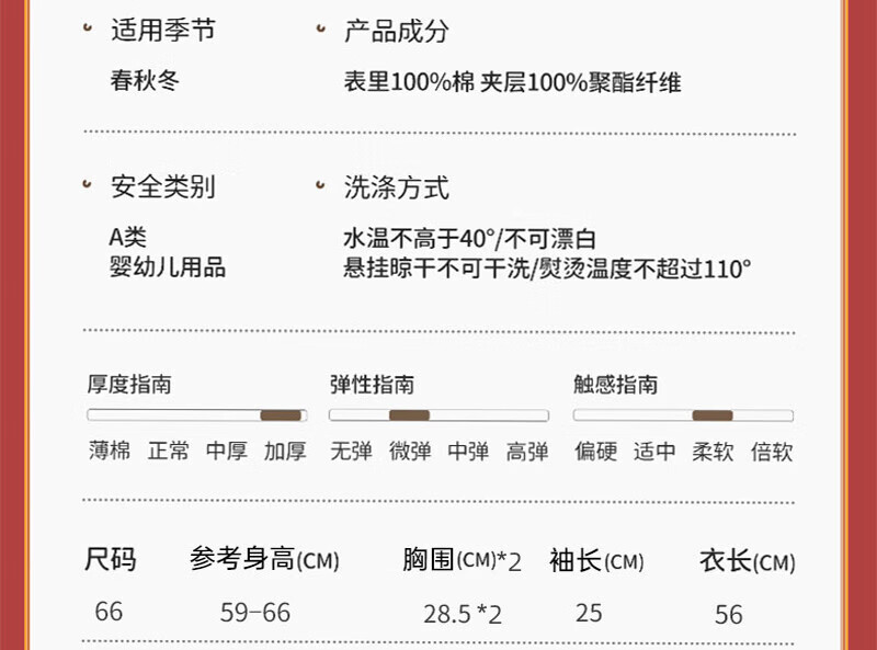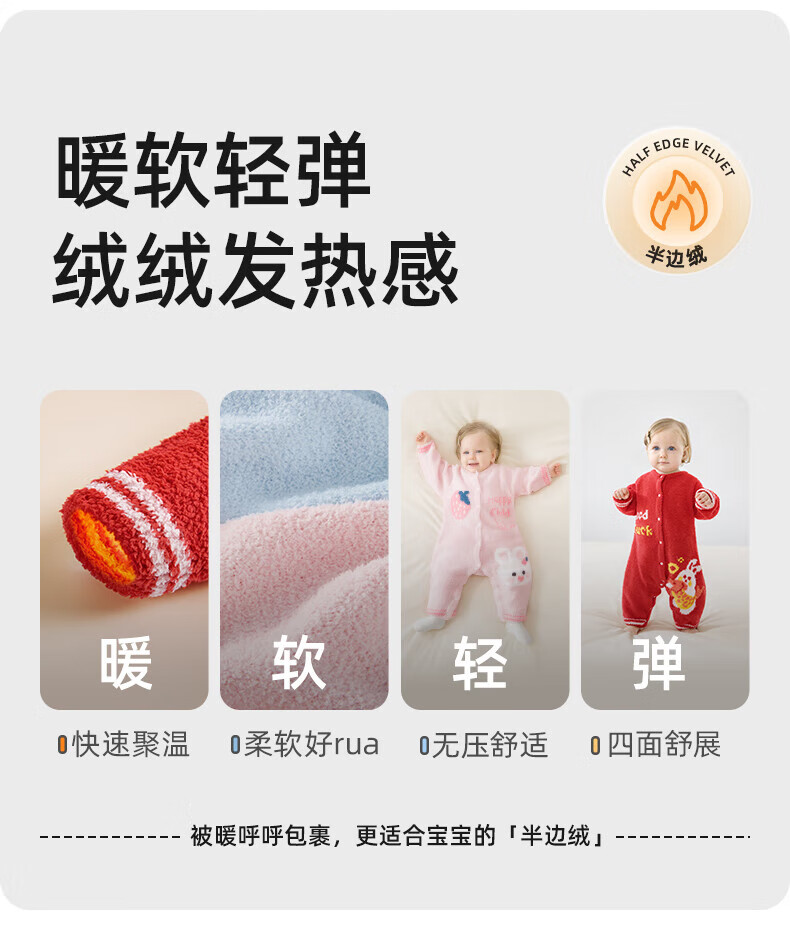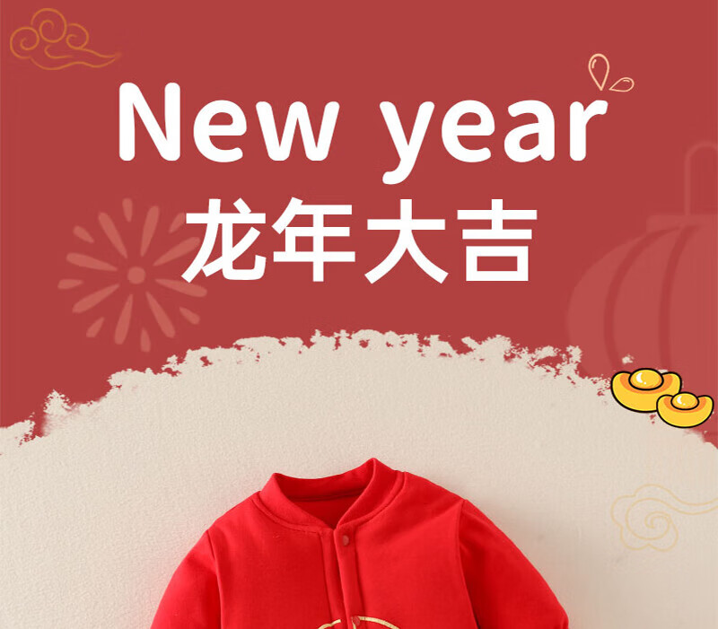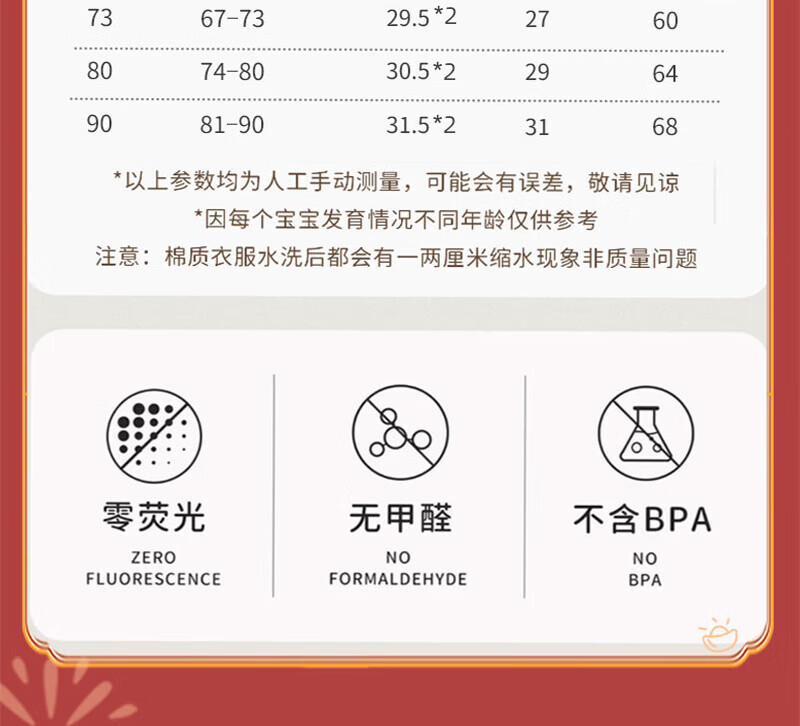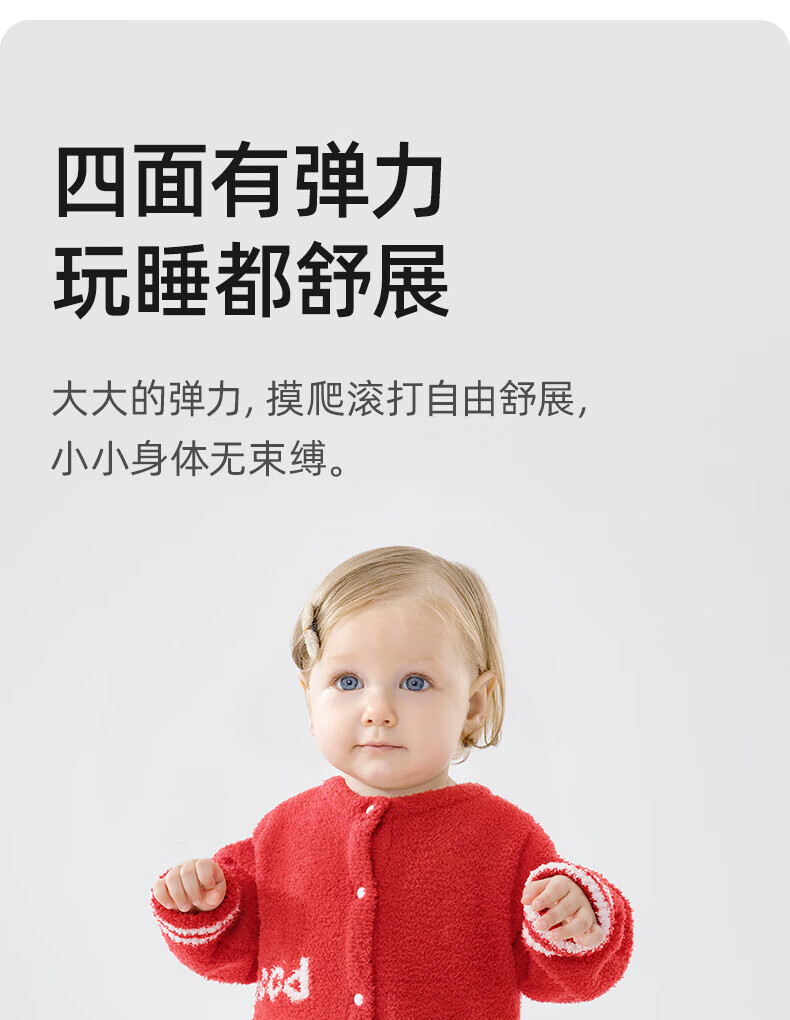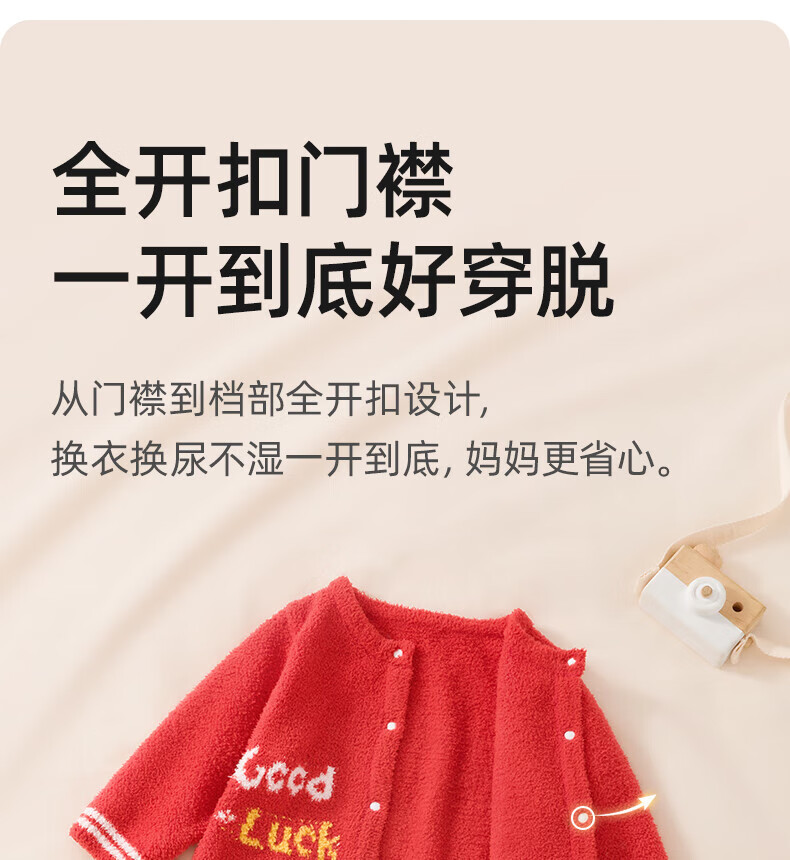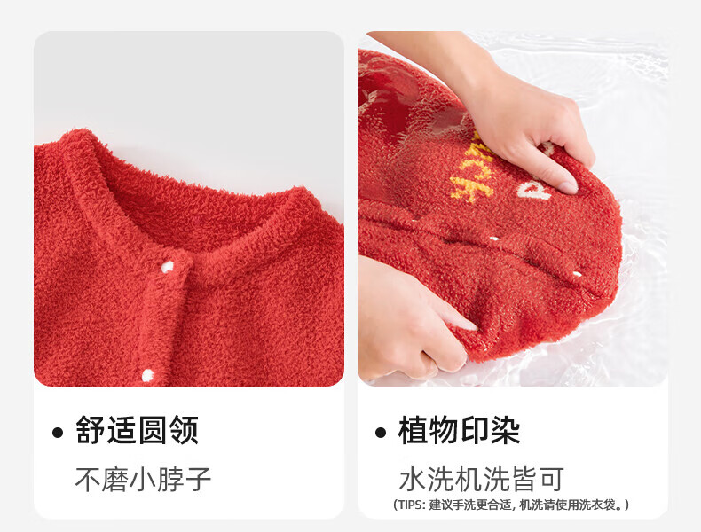 贝肽斯婴儿夹棉连体衣春秋季宝宝过年拜年衣服新生儿满月保暖衣 平安喜乐 80cm