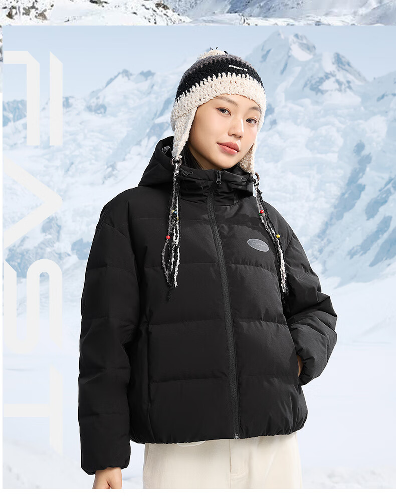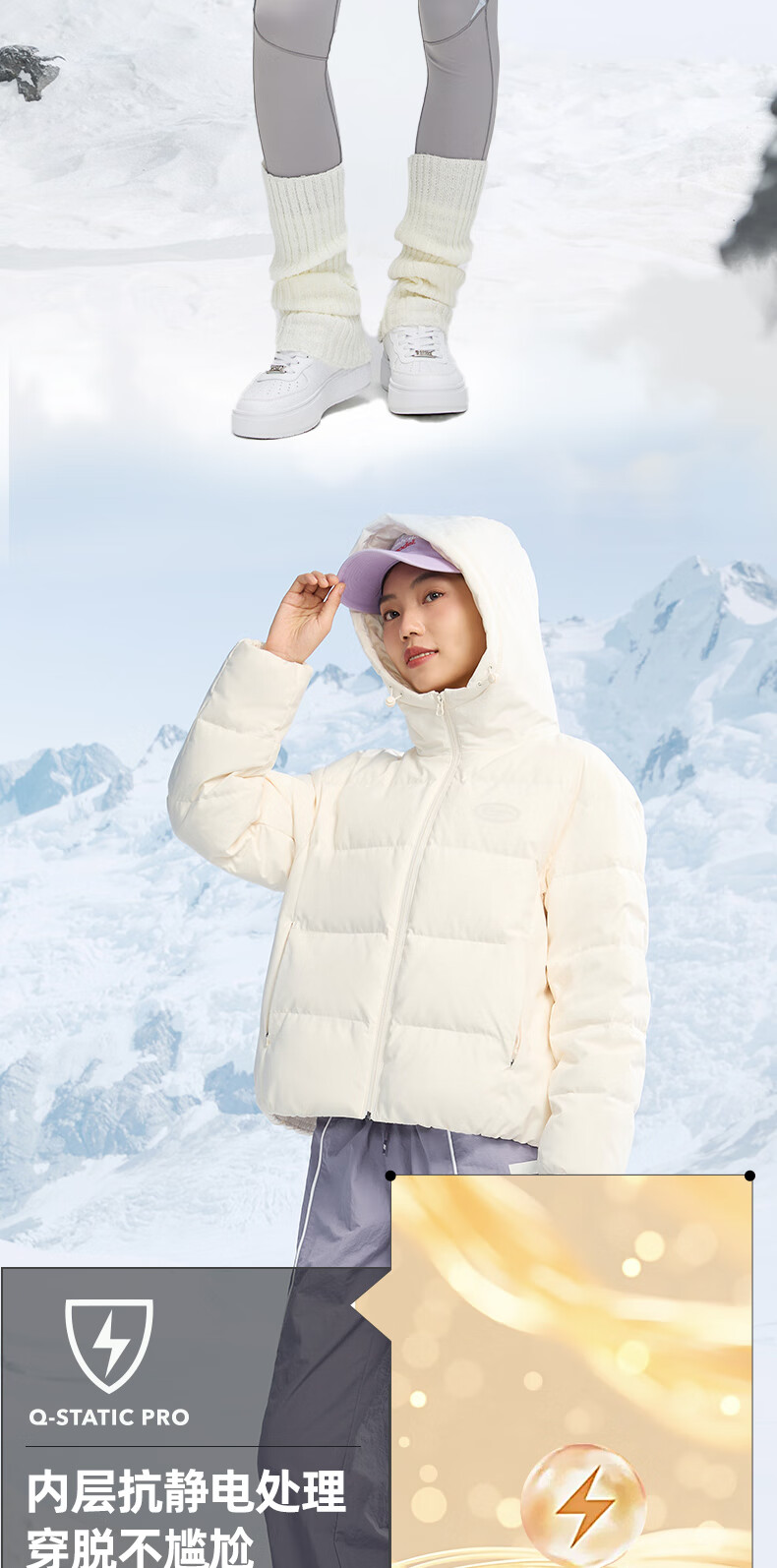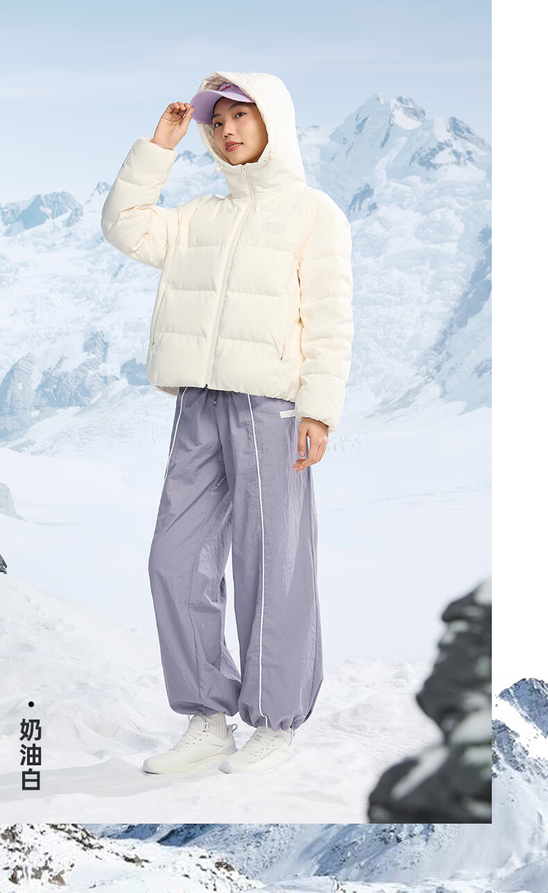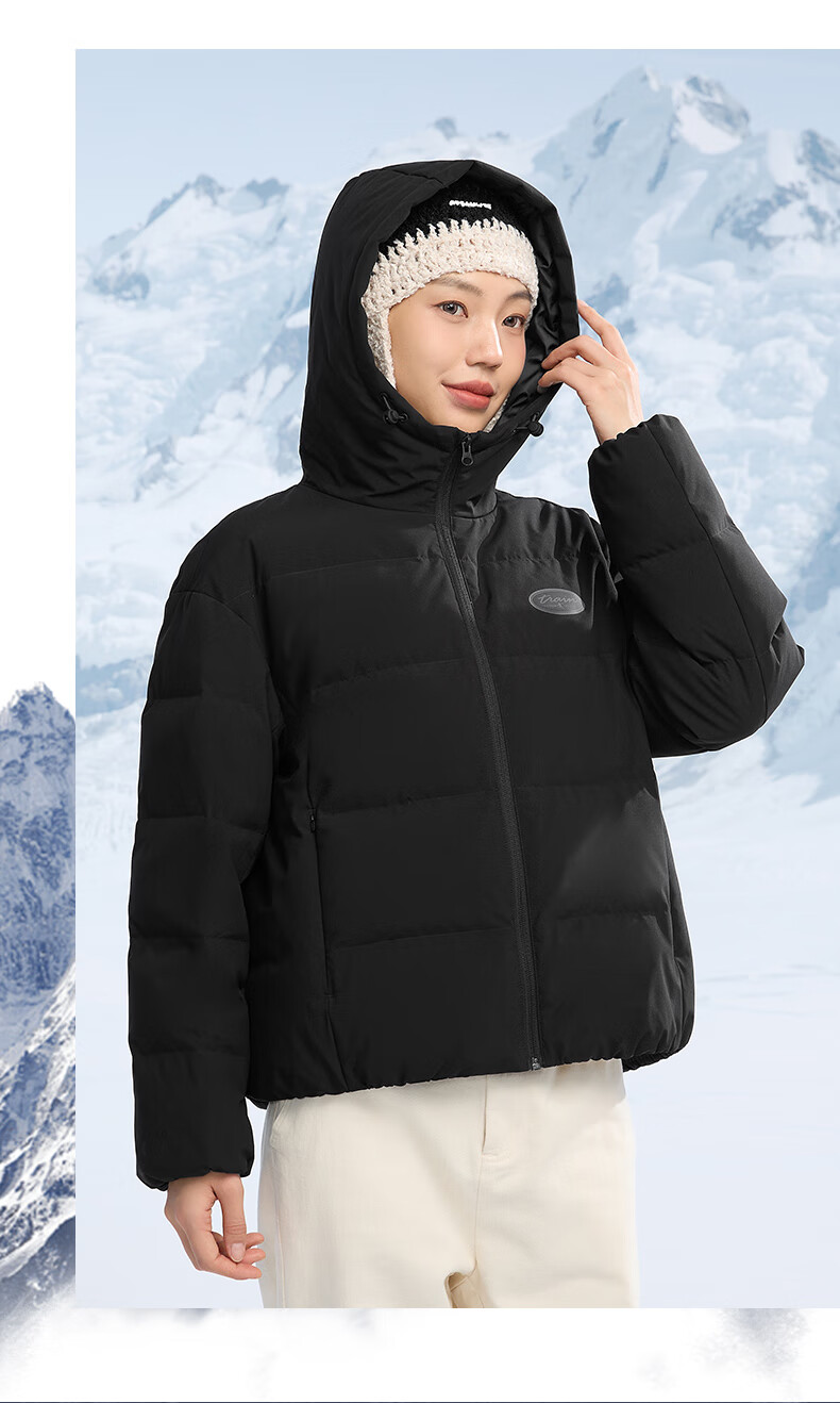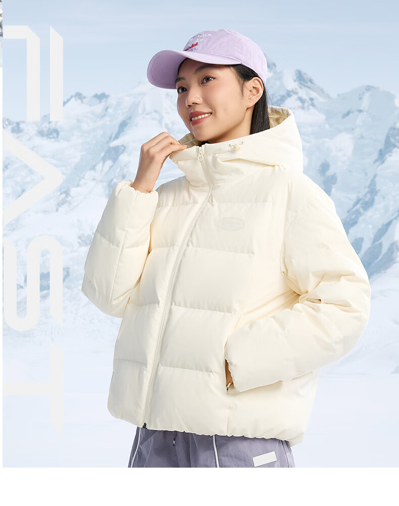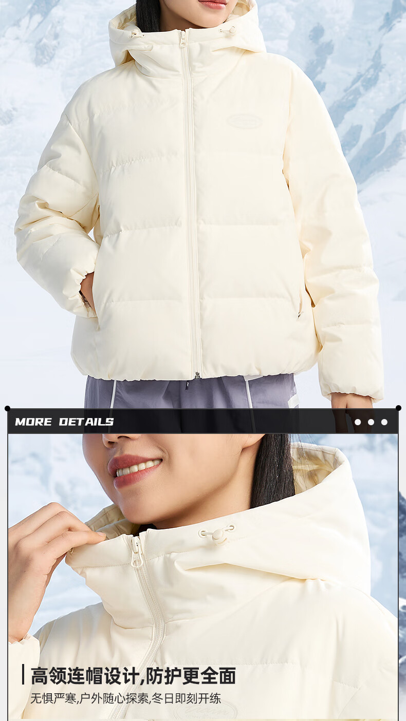 乔丹羽绒服女秋冬季加厚保暖短款纯色运动休闲连帽外套女士上衣