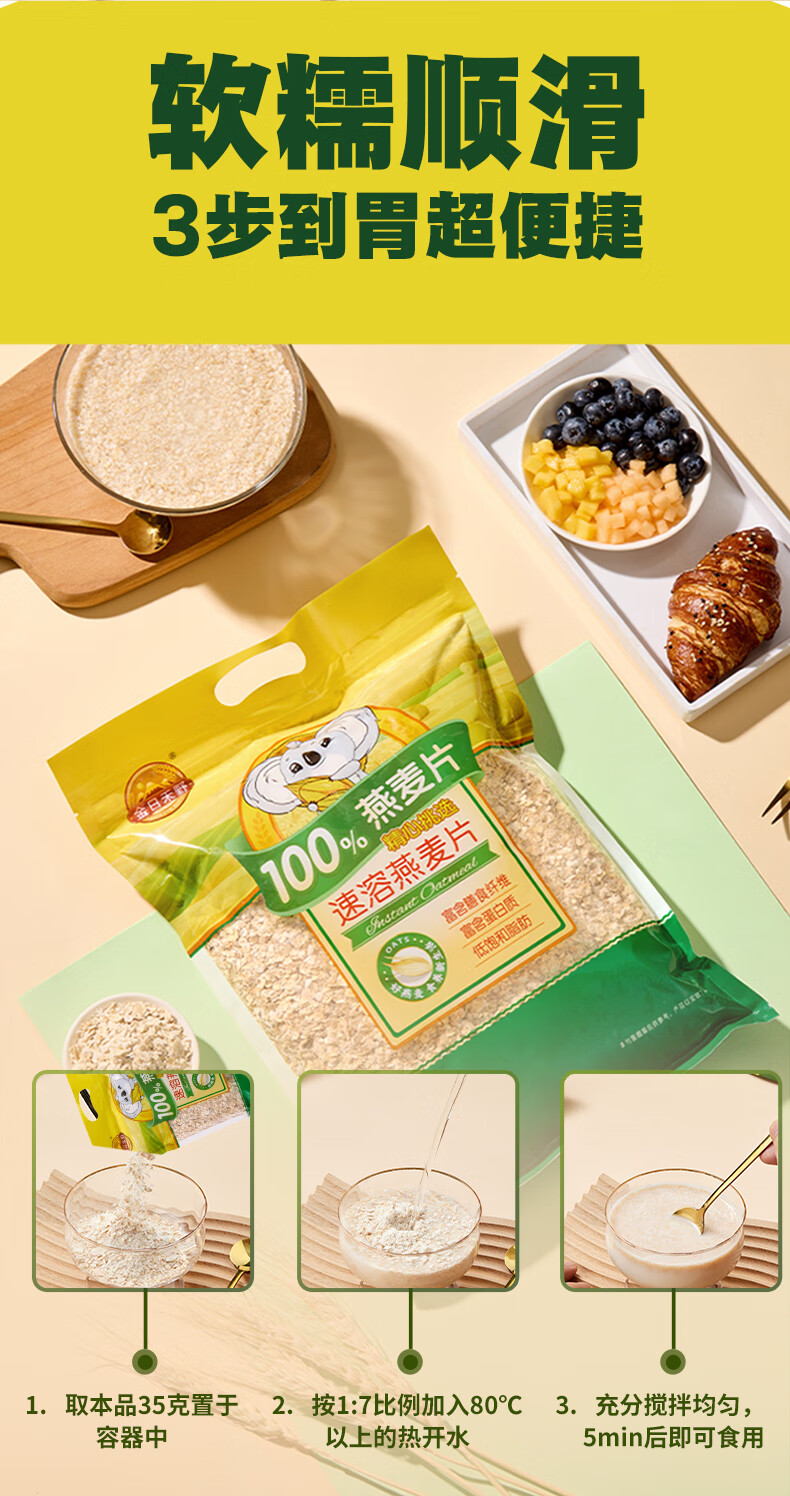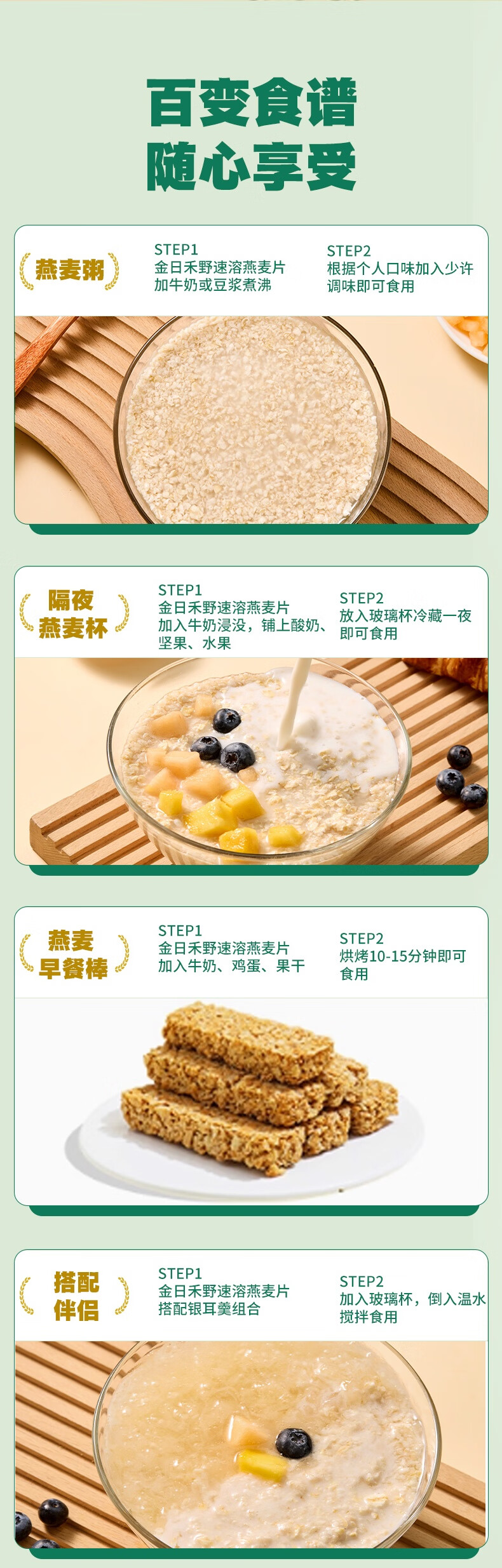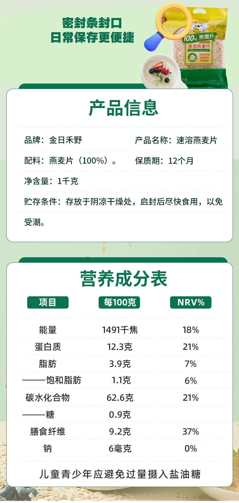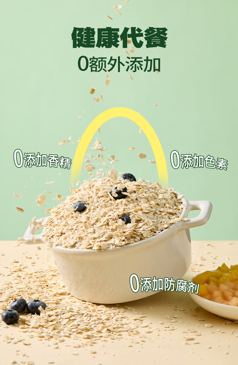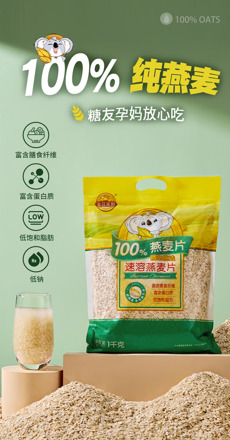 金日禾野即食纯燕麦片1000g谷物代餐营养早餐无额外添加蔗糖 囤货推荐【2kg】