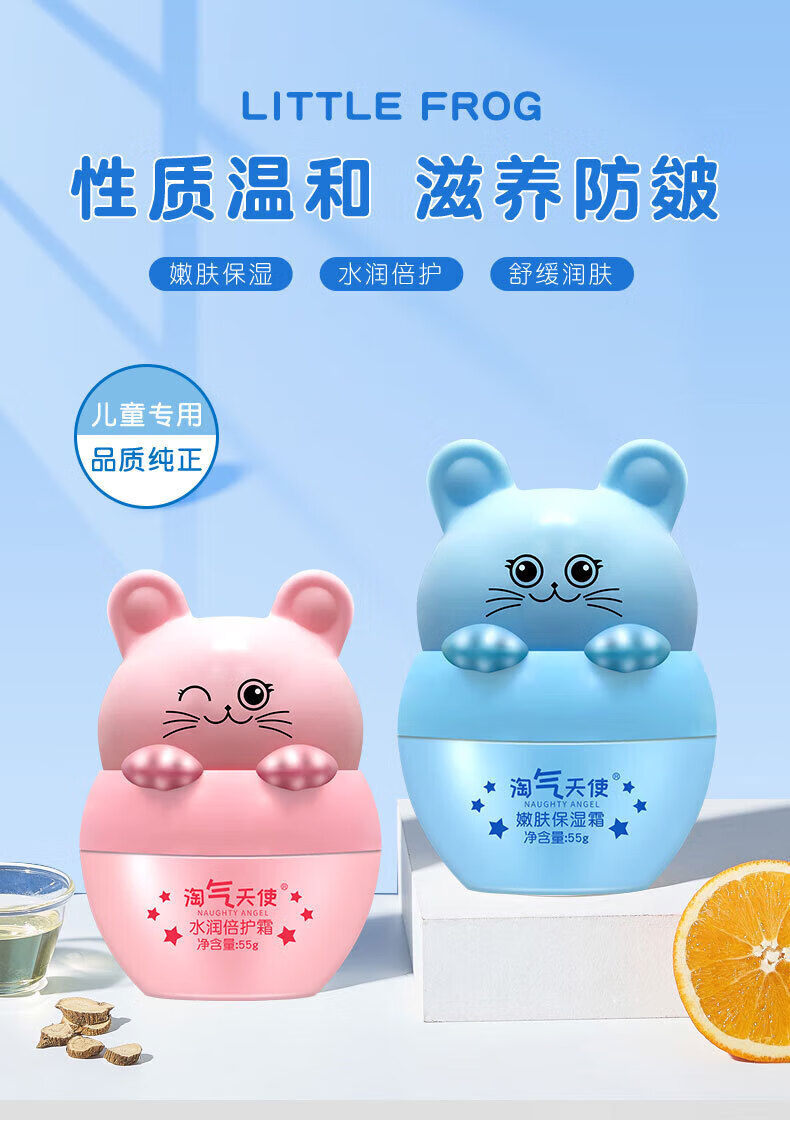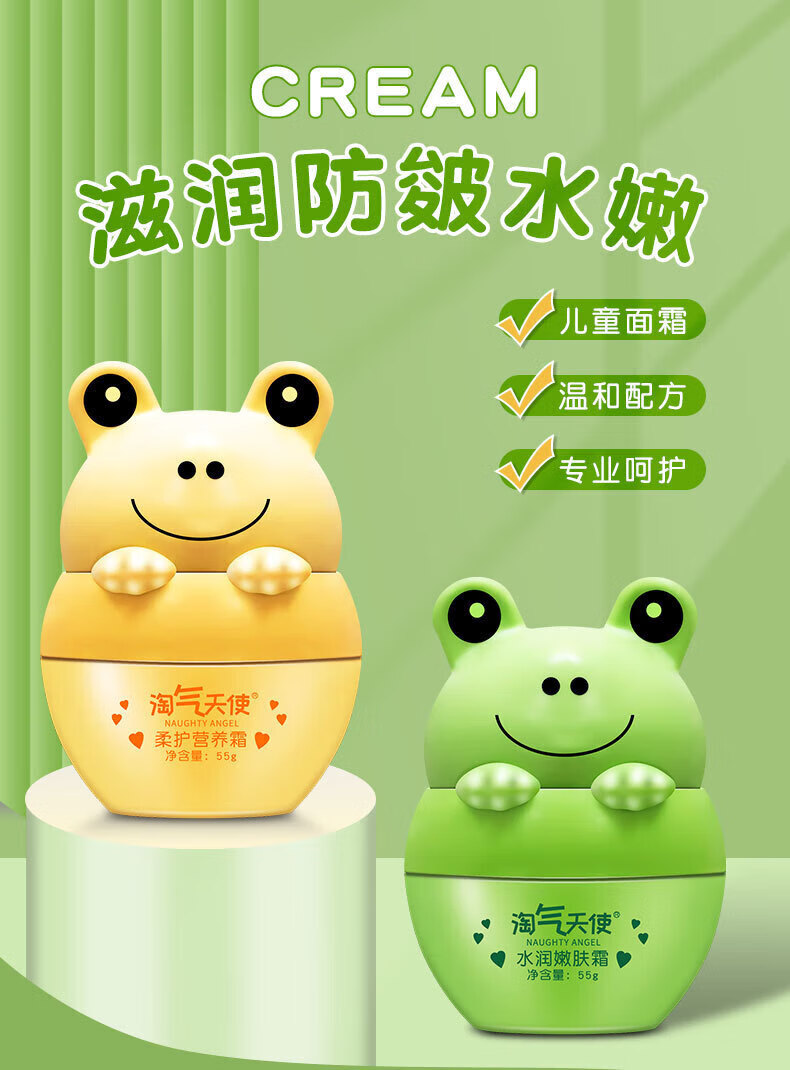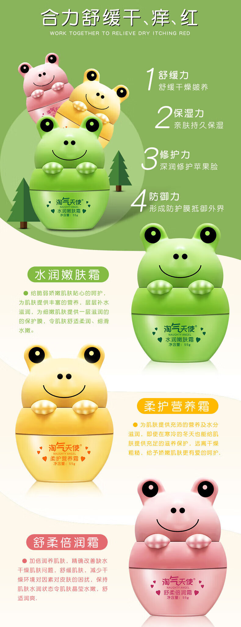 淘气天使 NAUGHTY ANGEL小青蛙儿面霜612岁防皲裂保湿正品 55g小青蛙舒柔倍润霜(红)