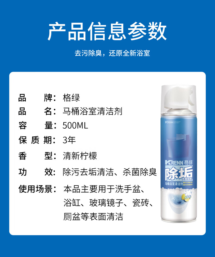 格绿【超值组合买就送】马桶浴室清洁剂500ml+多功能除菌清洁剂500ml 马桶浴室清洁剂500ml 【赠送】多功能除菌泡沫清洁剂500ml大容量