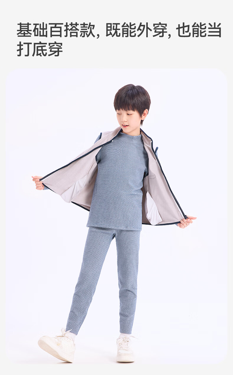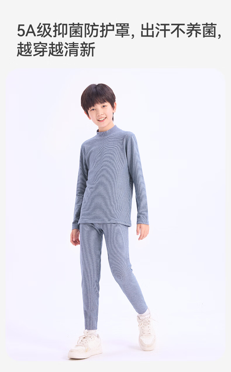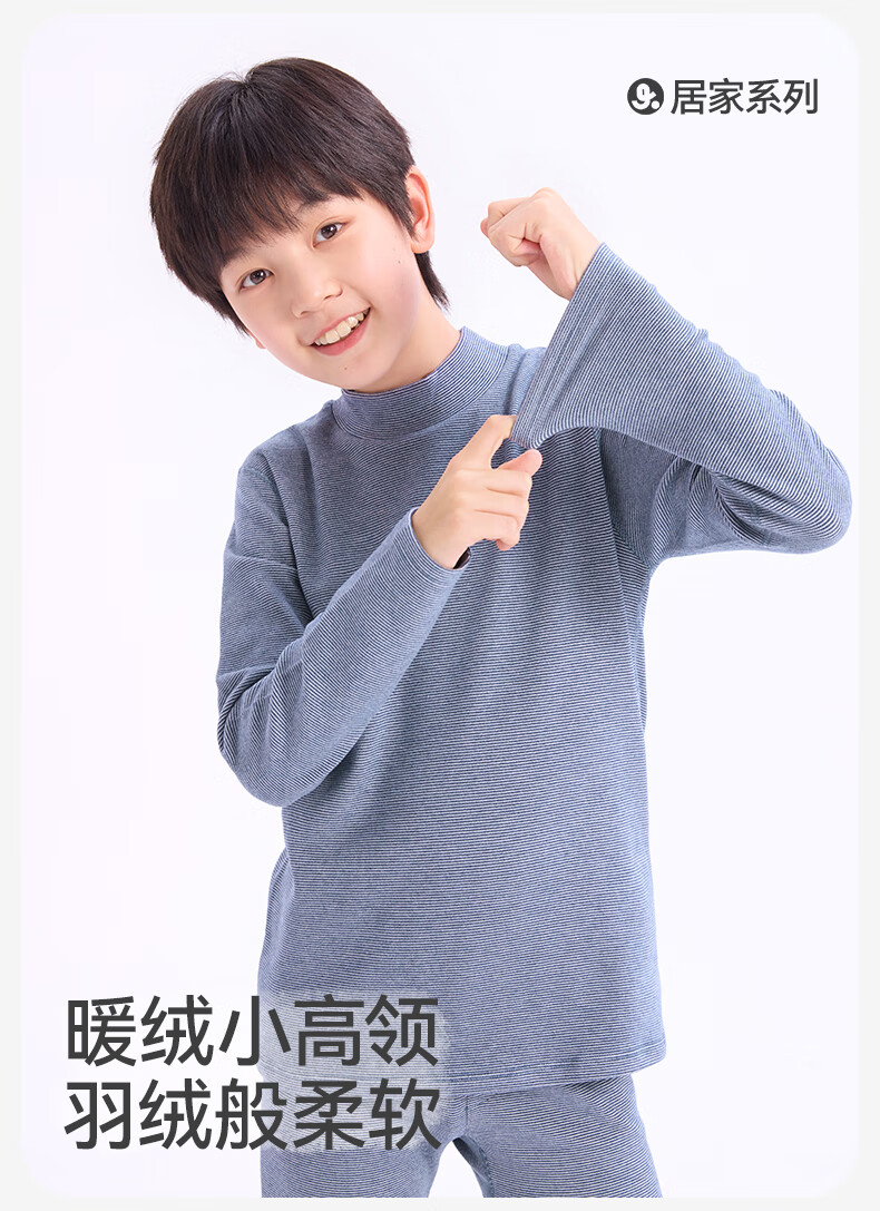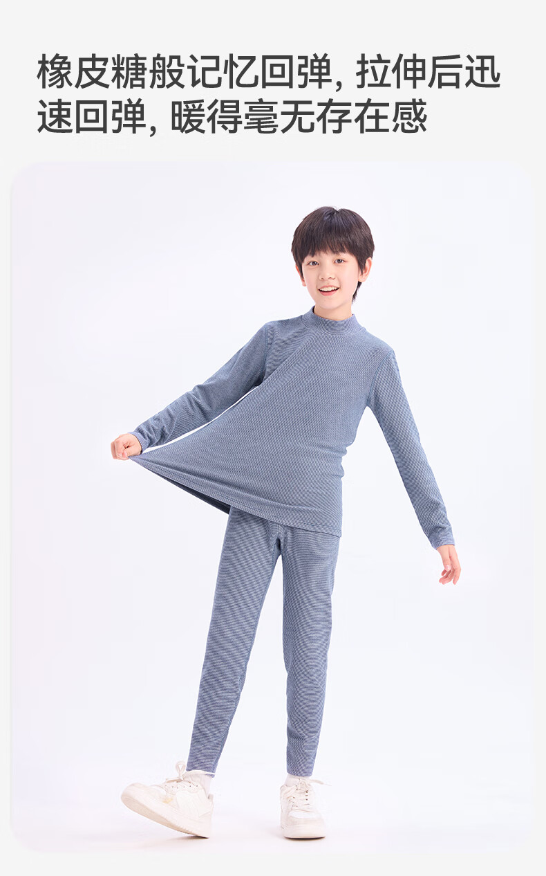 久岁伴儿童保暖内衣上衣男女童秋衣秋冬中厚小高领双面绒青少年校服打底 男童-蓝灰 170 /身高160-172体重105-120斤