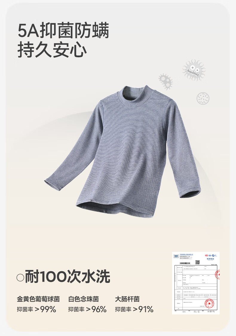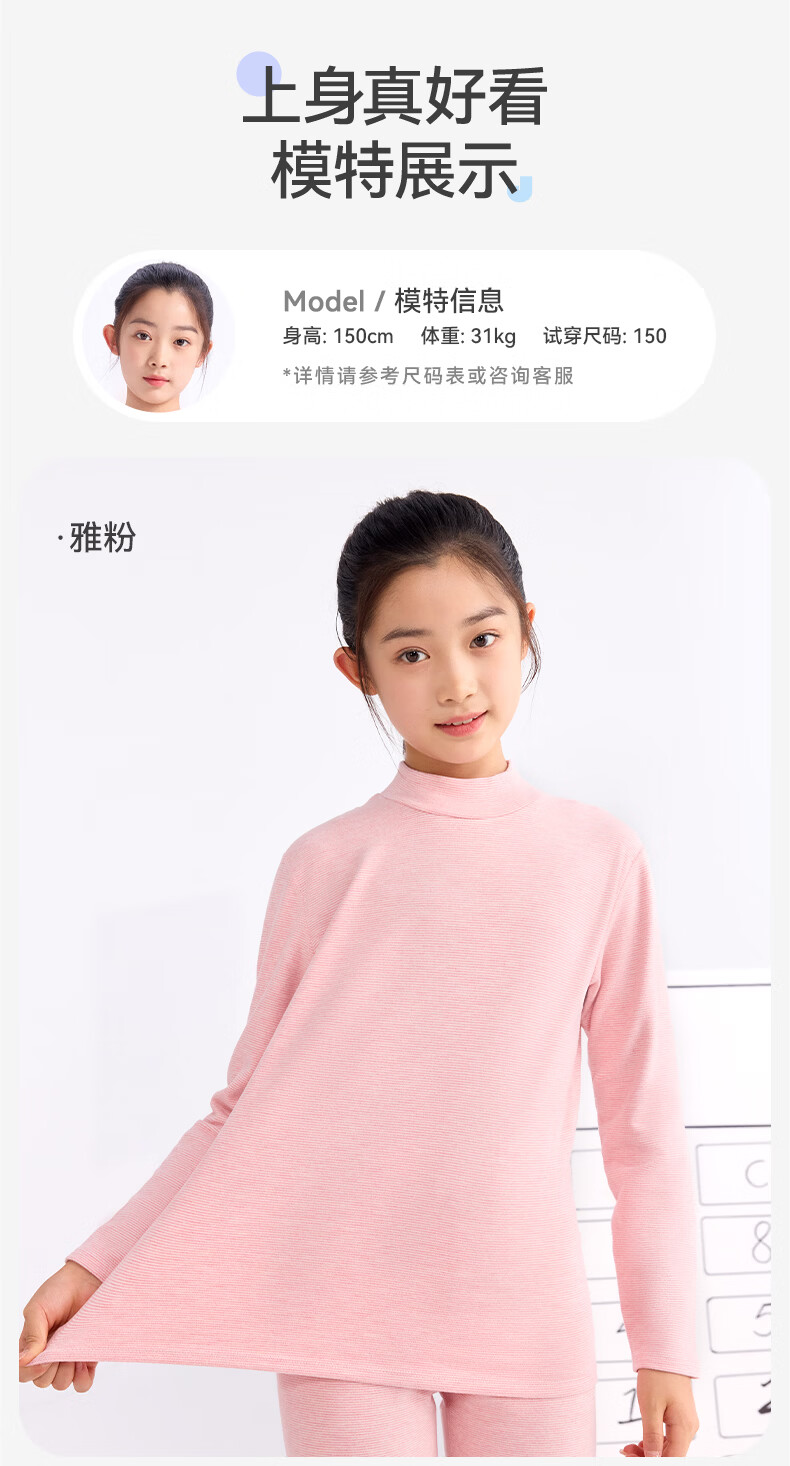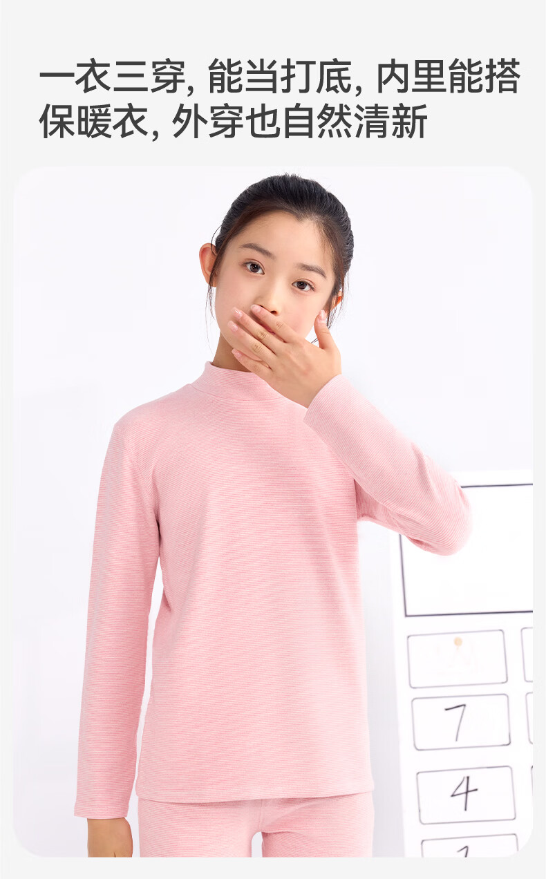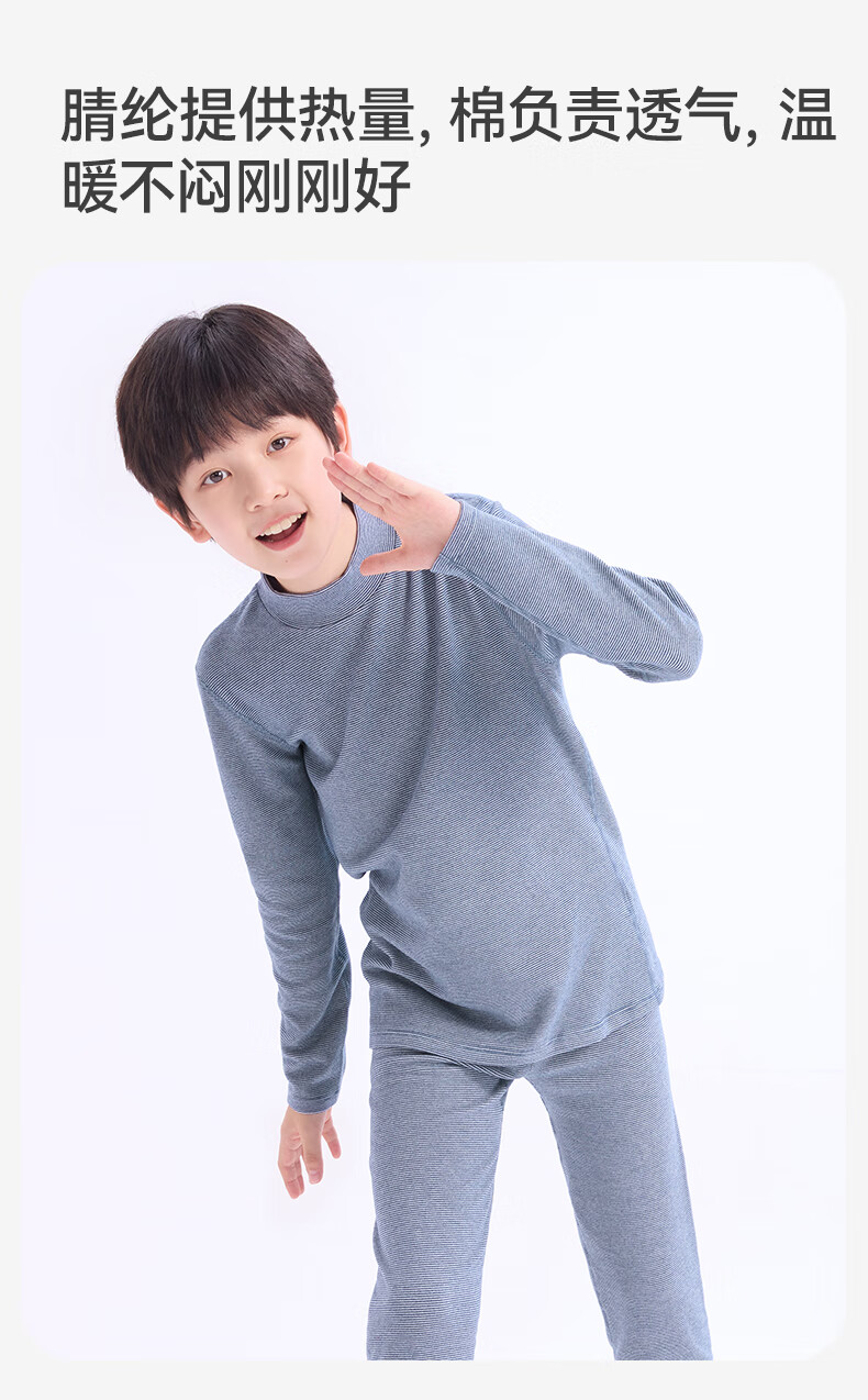 久岁伴儿童保暖内衣上衣男女童秋衣秋冬中厚小高领双面绒青少年校服打底 男童-蓝灰 170 /身高160-172体重105-120斤