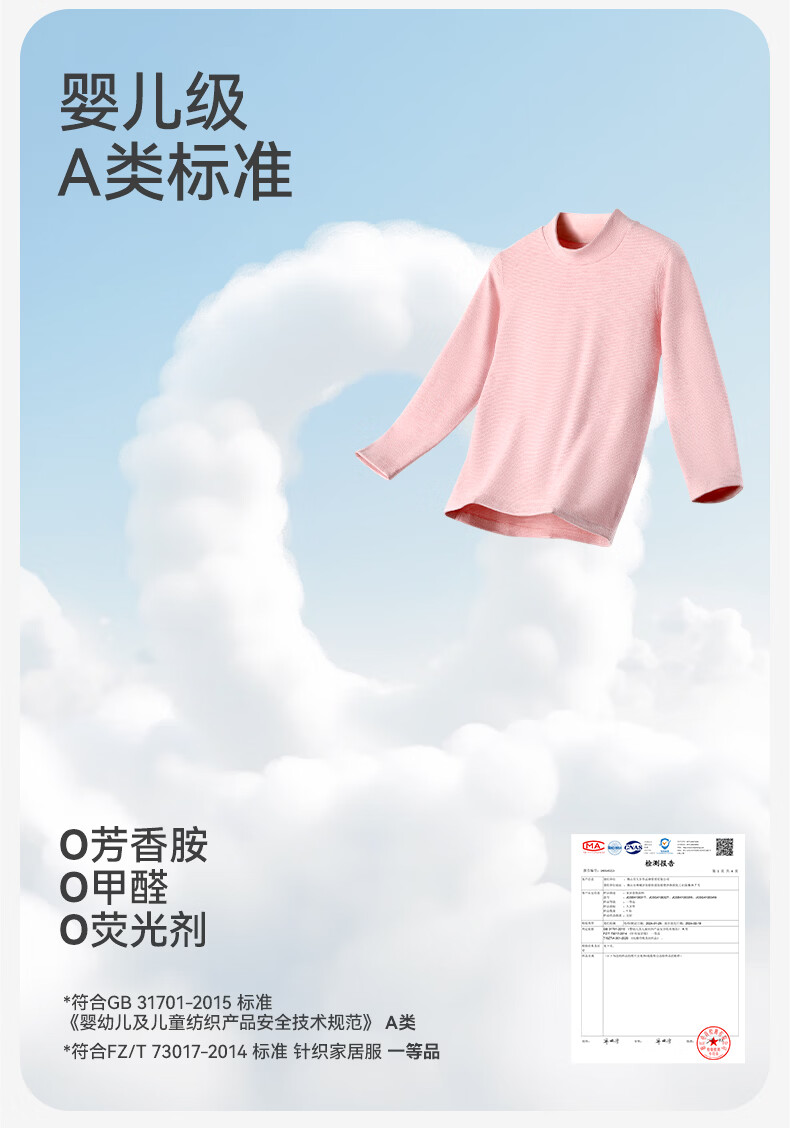 哈吉斯(HAZZYS)男童女童打底衫2025秋季新款高领弹力简约长袖 米白色 160