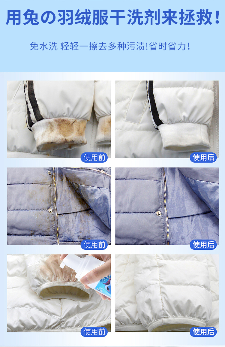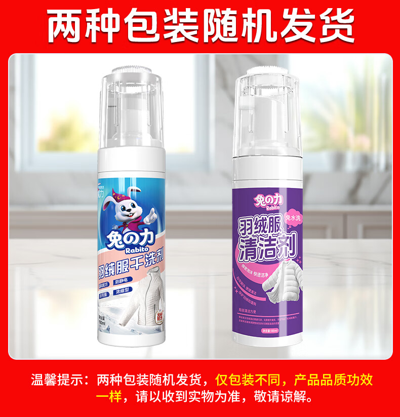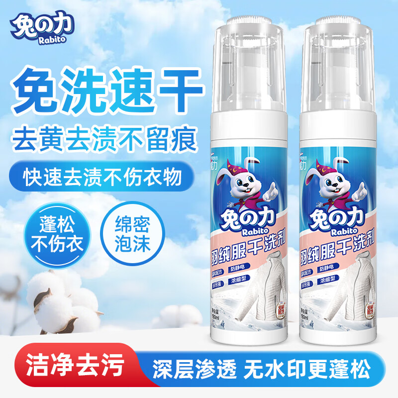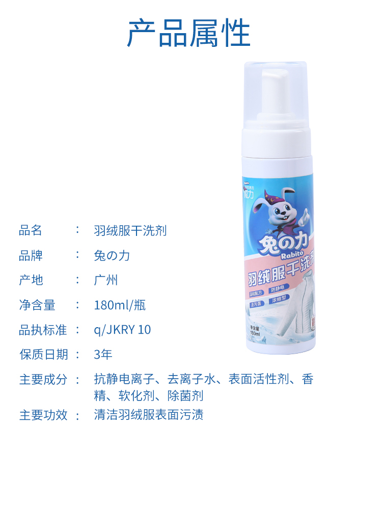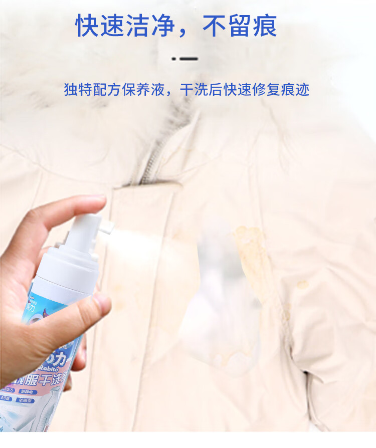 兔力羽绒服干洗剂 免洗喷雾去油渍干洗剂清洗液羽绒服清洁剂干洗喷雾 180ml 3瓶 【羽绒服干洗剂】