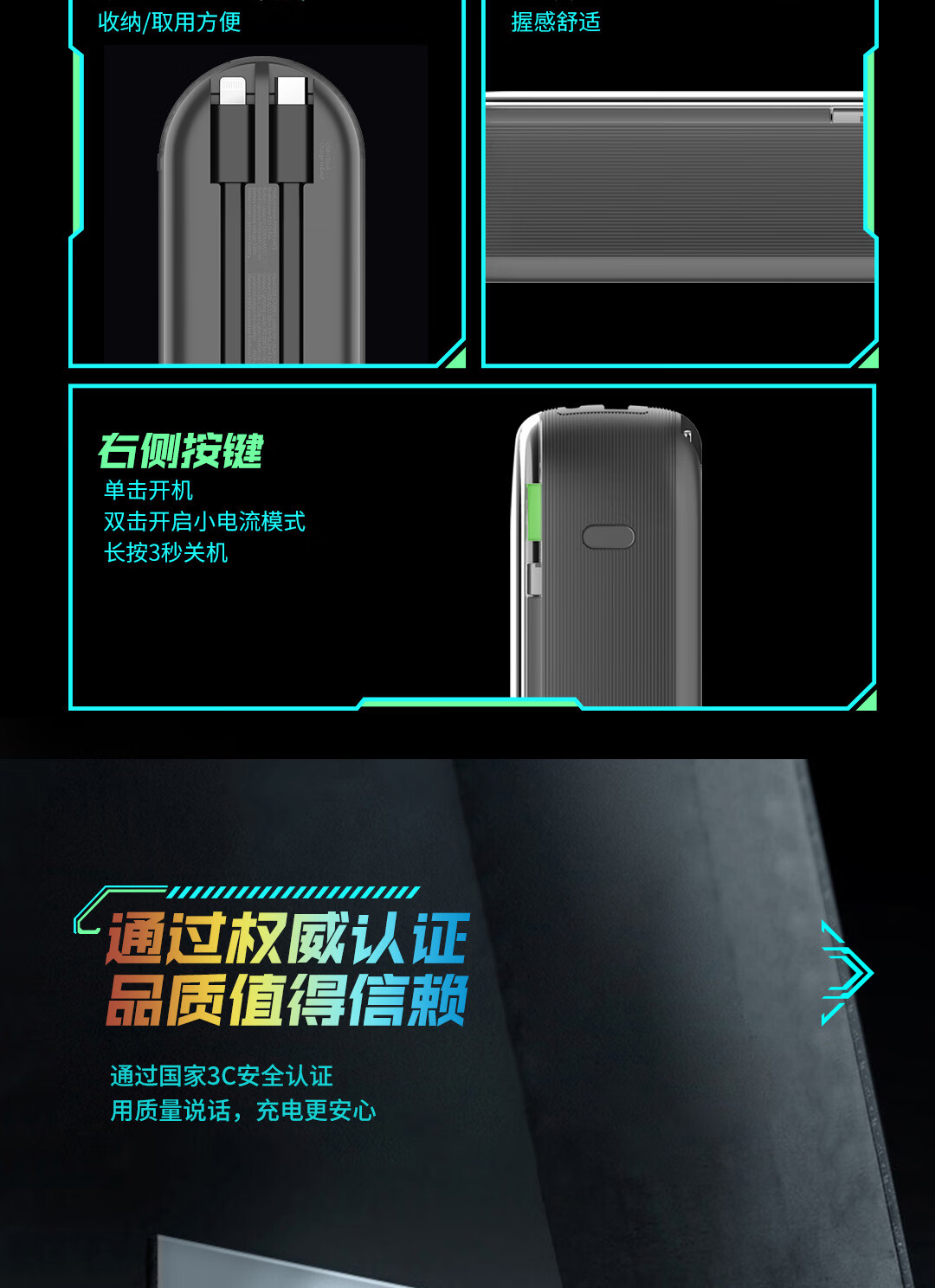 科希帝有3C认证【新国标丨可上飞机】超级快充充电宝自带线超薄小巧便携移动电源适用苹果安卓20000毫安 蓝色【低配版+3c认证】国产电芯