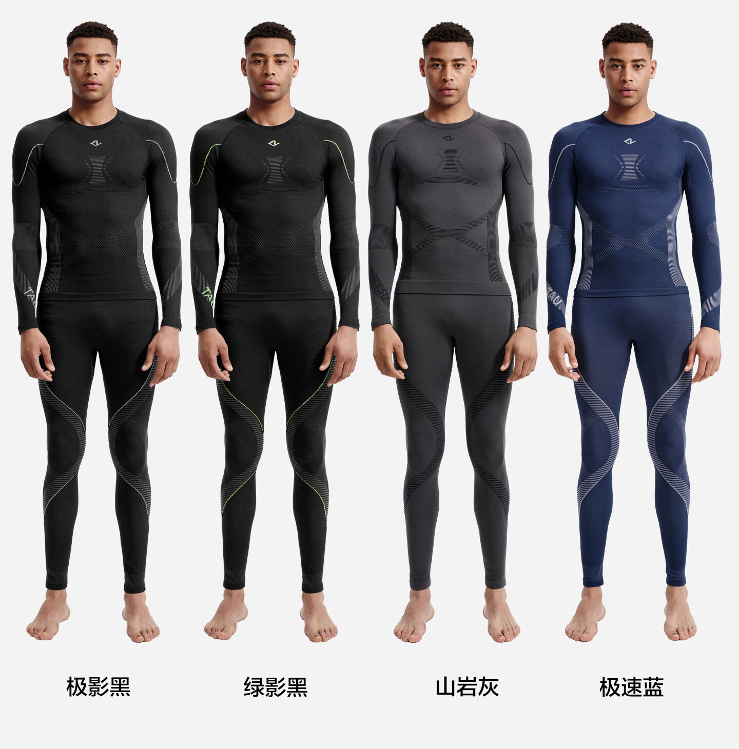 TAU情侣速干压缩衣跑步运动滑雪登山美利奴羊毛户外排汗保暖内衣套装 极影黑-女士 160(专业压缩设计)