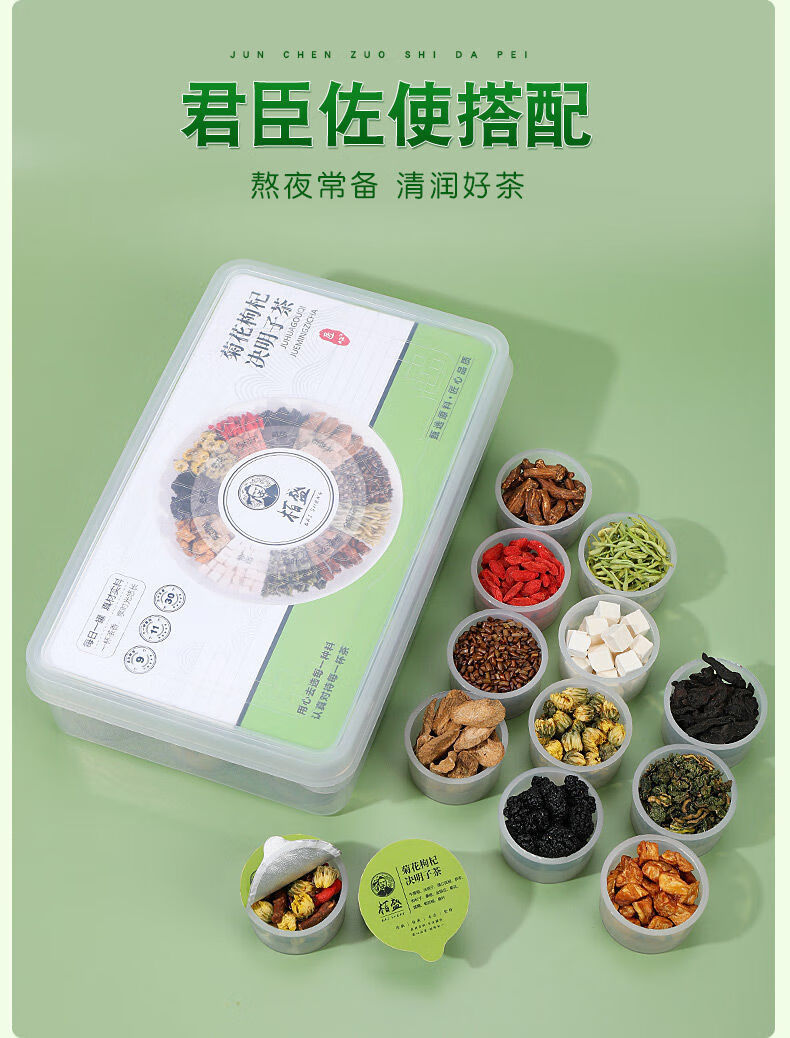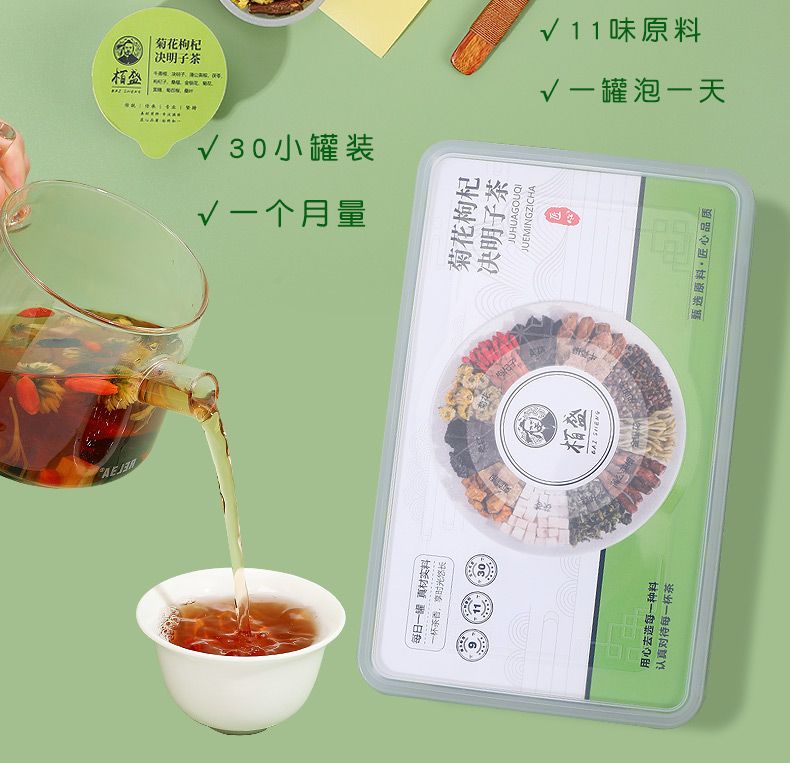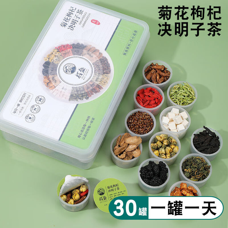 同仁堂金银花菊花枸杞决明子小罐装茶明日清火口干口气柑火口臭护矸熬夜 1周期[30罐30天]升级礼盒+人参
