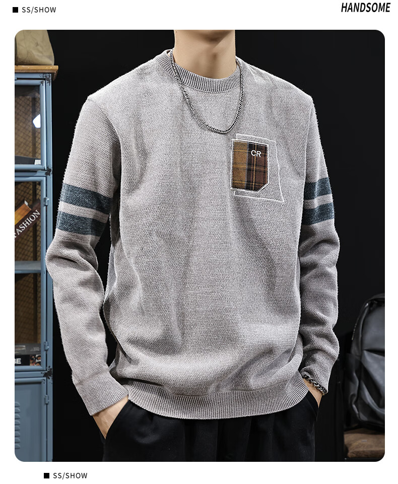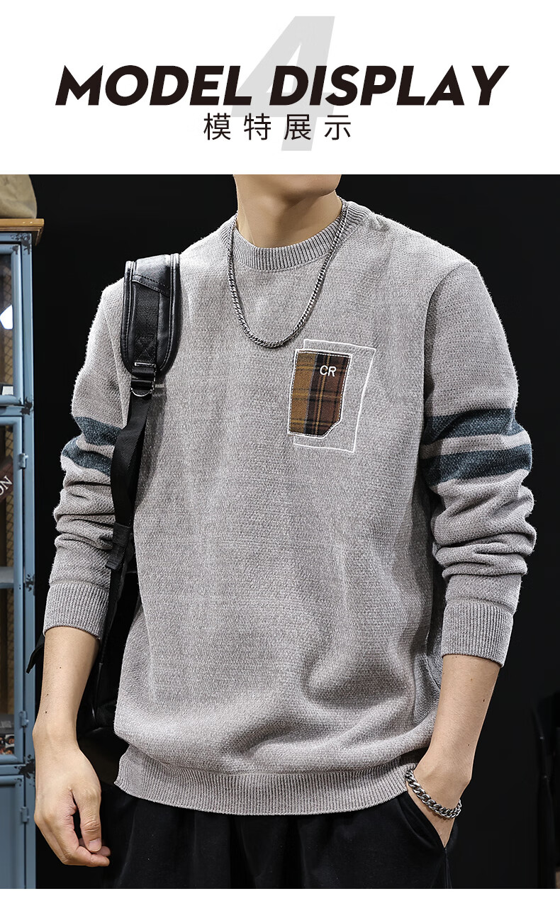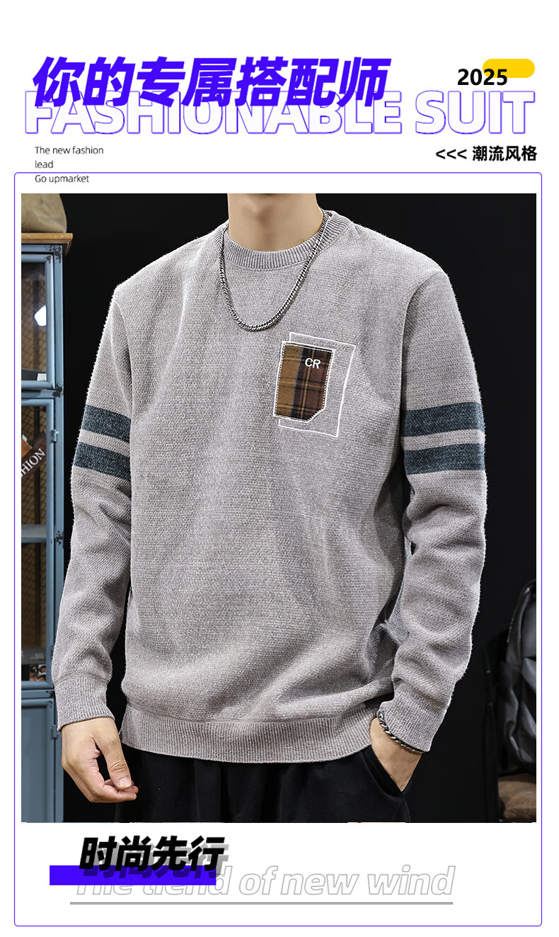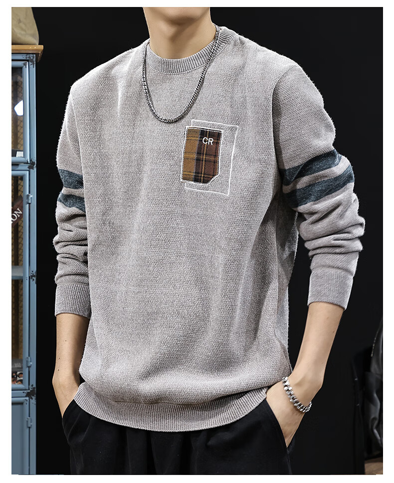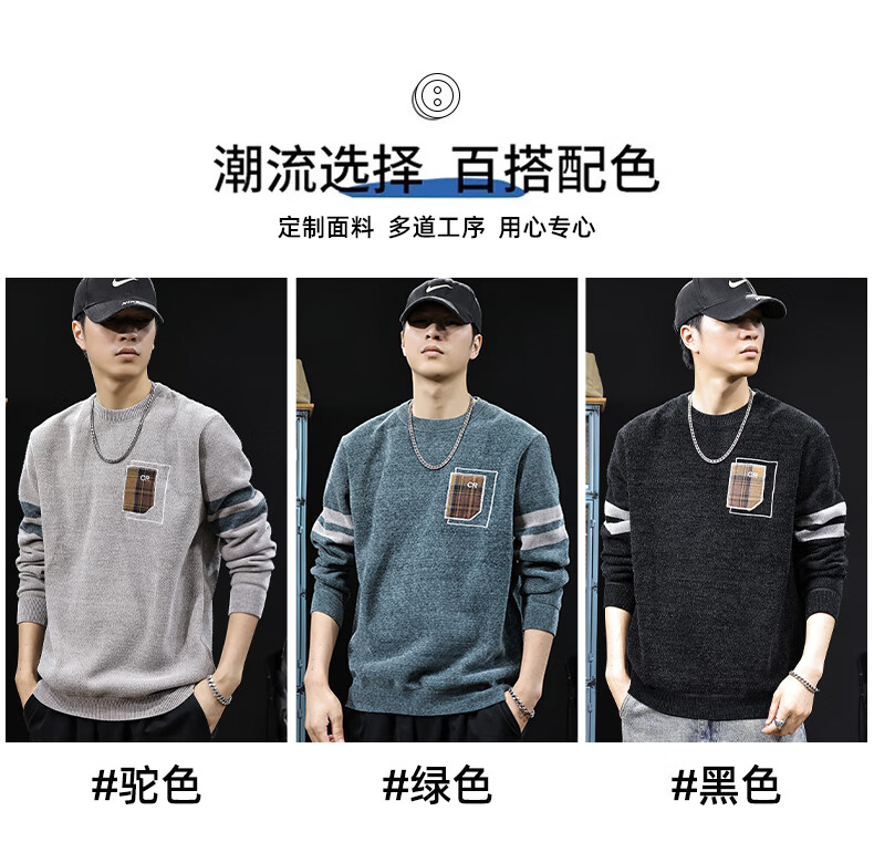 新百伦加绒毛衣男士秋冬款加厚保暖针织衫长袖休闲毛线衣内搭上衣男 驼色 加绒 L 码【建议120-135斤】