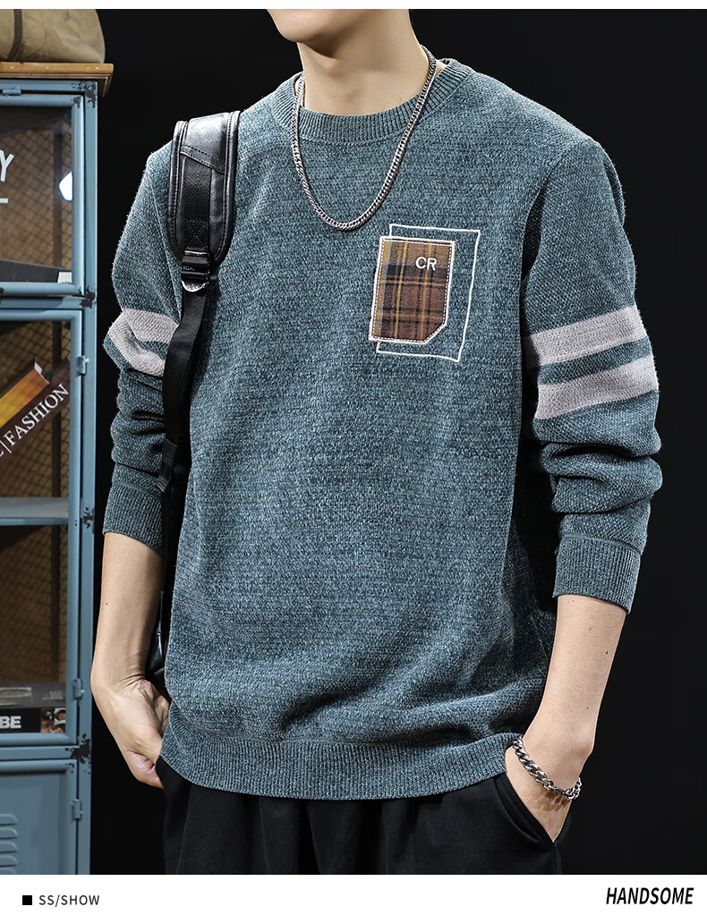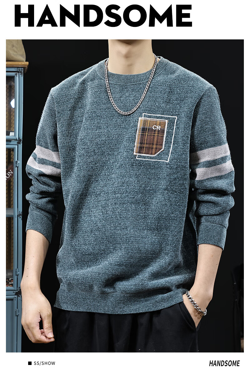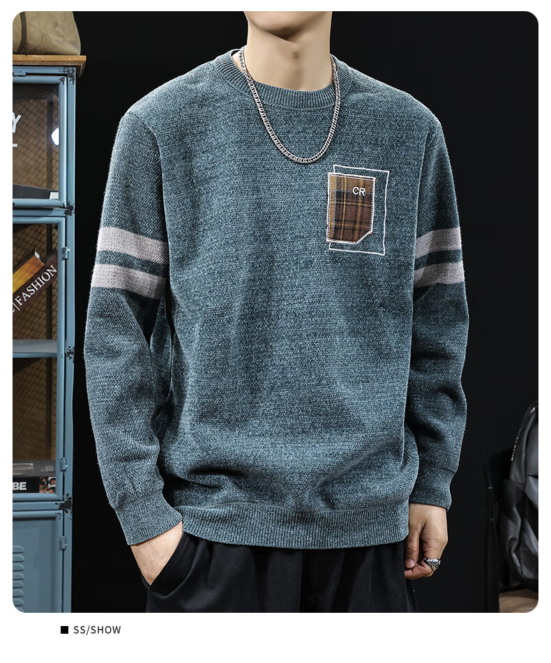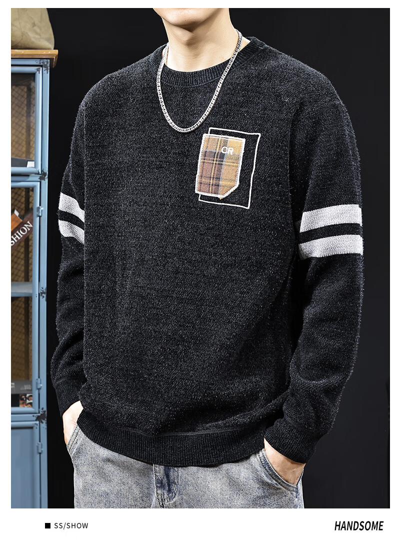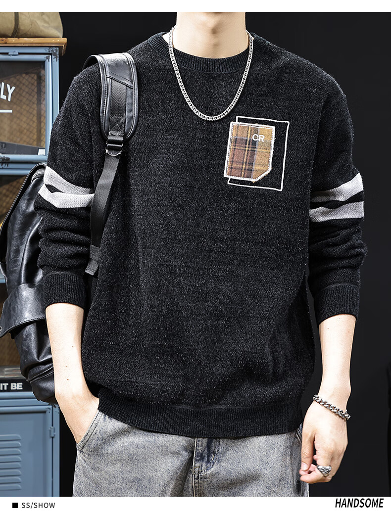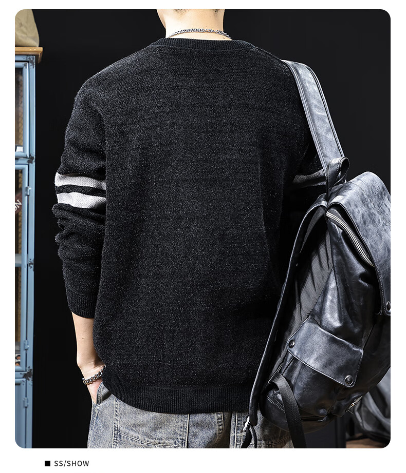 新百伦加绒毛衣男士秋冬款加厚保暖针织衫长袖休闲毛线衣内搭上衣男 驼色 加绒 L 码【建议120-135斤】