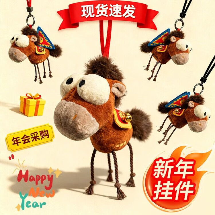 泰利奇旗开得胜马年吉祥物新年生肖公仔马上有钱挂件钥匙扣布偶毛绒玩具 旗开得胜玩偶挂件【含挂绳和旗子】