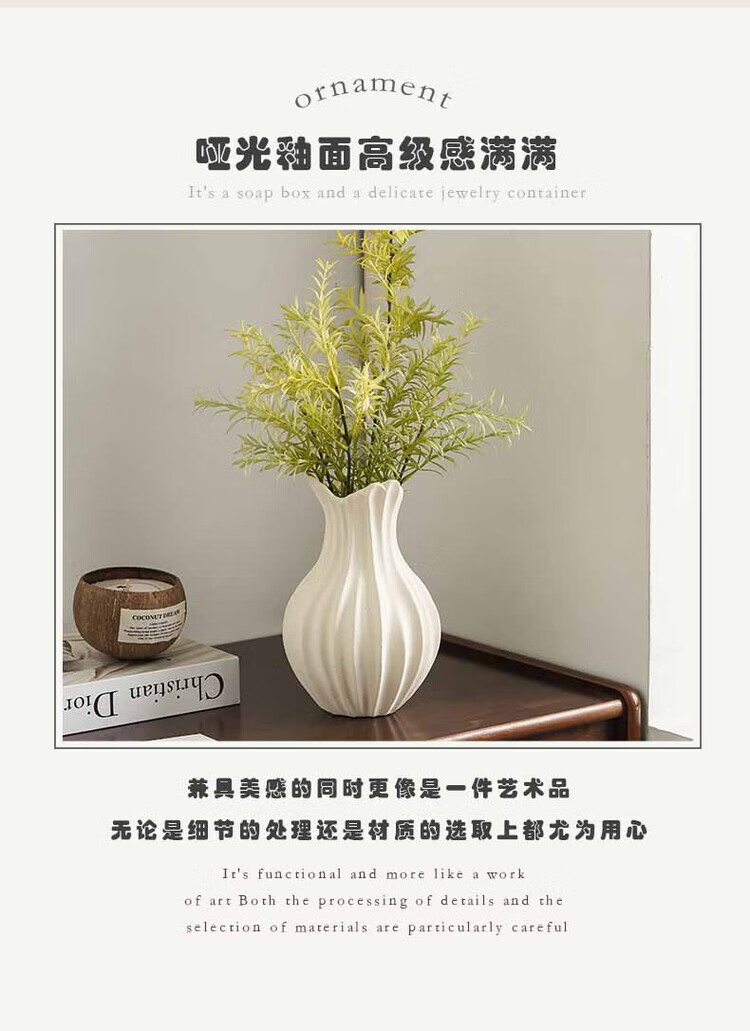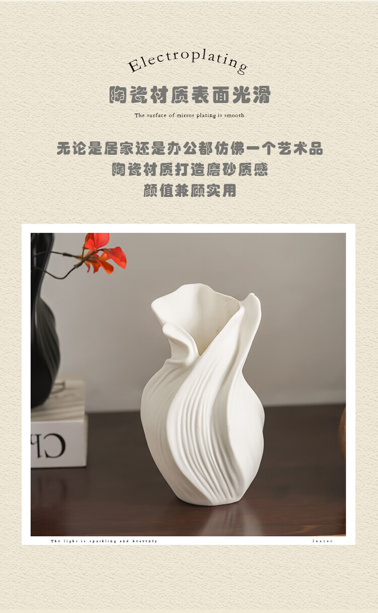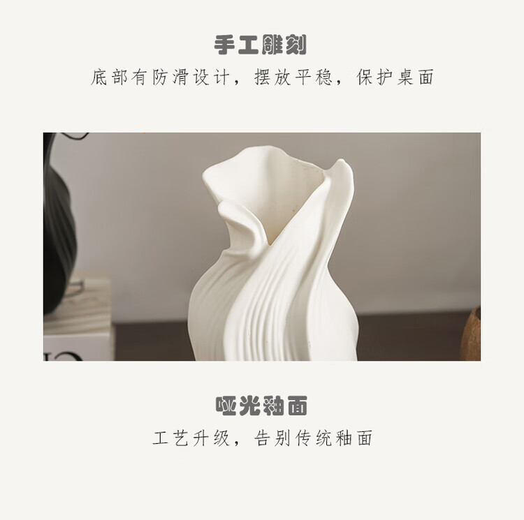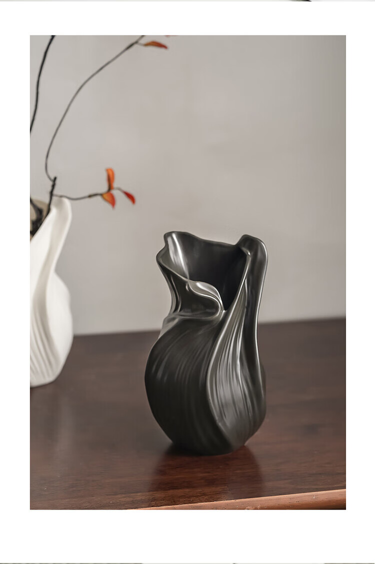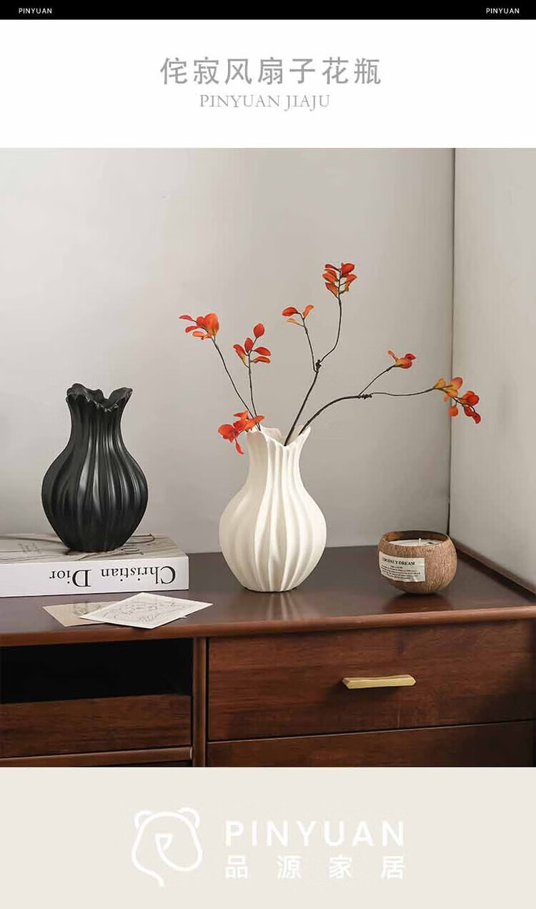 OYKTN轻奢高级感复古大口径花瓶小众设计风个性艺术花器陶瓷工艺品摆件 扇子花瓶-哑白+绿金柳 陶瓷材质