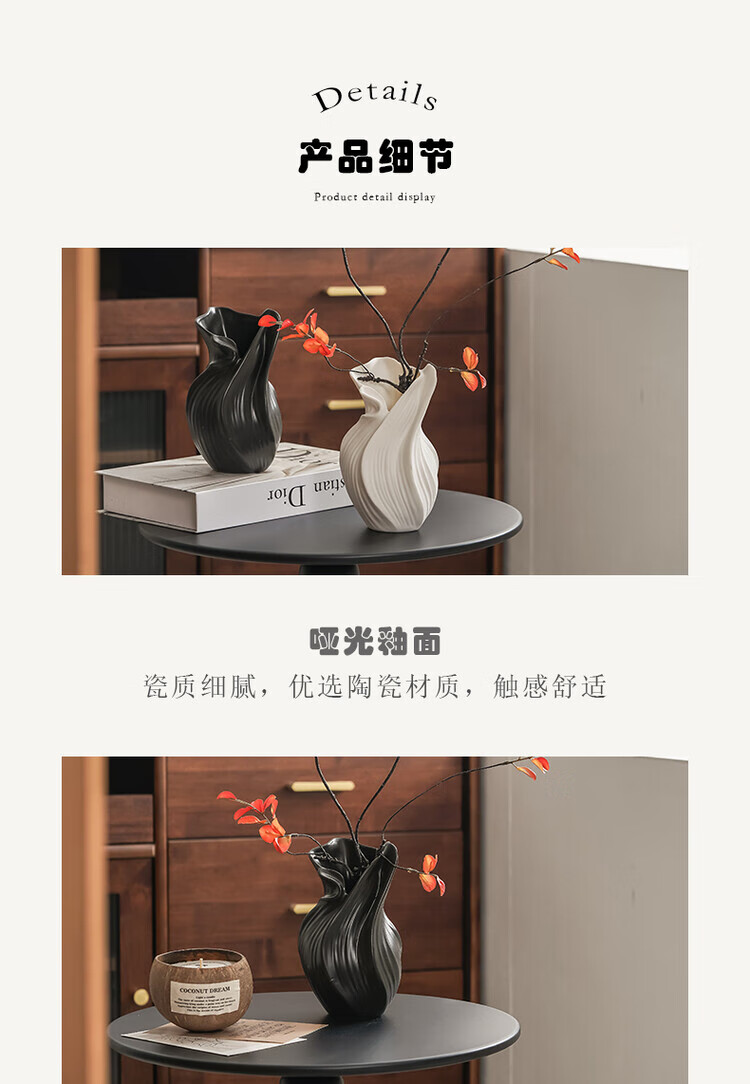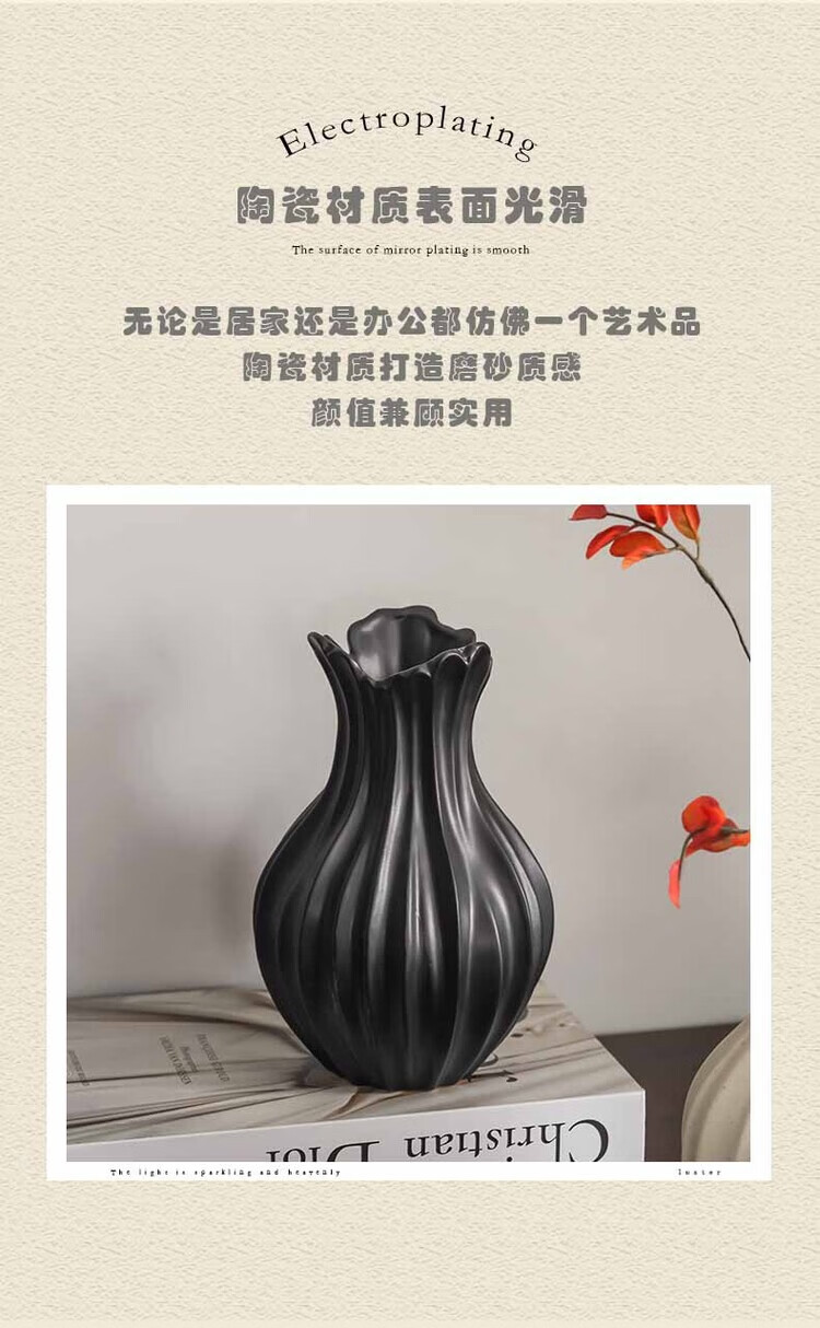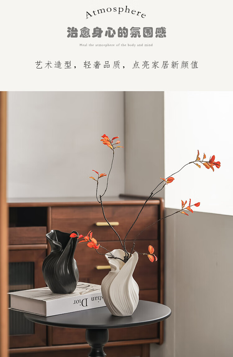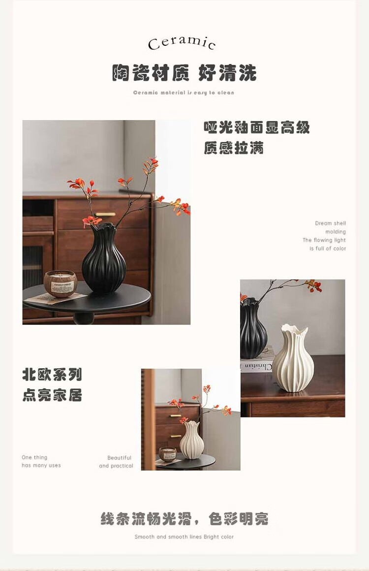 OYKTN轻奢高级感复古大口径花瓶小众设计风个性艺术花器陶瓷工艺品摆件 扇子花瓶-哑白+绿金柳 陶瓷材质