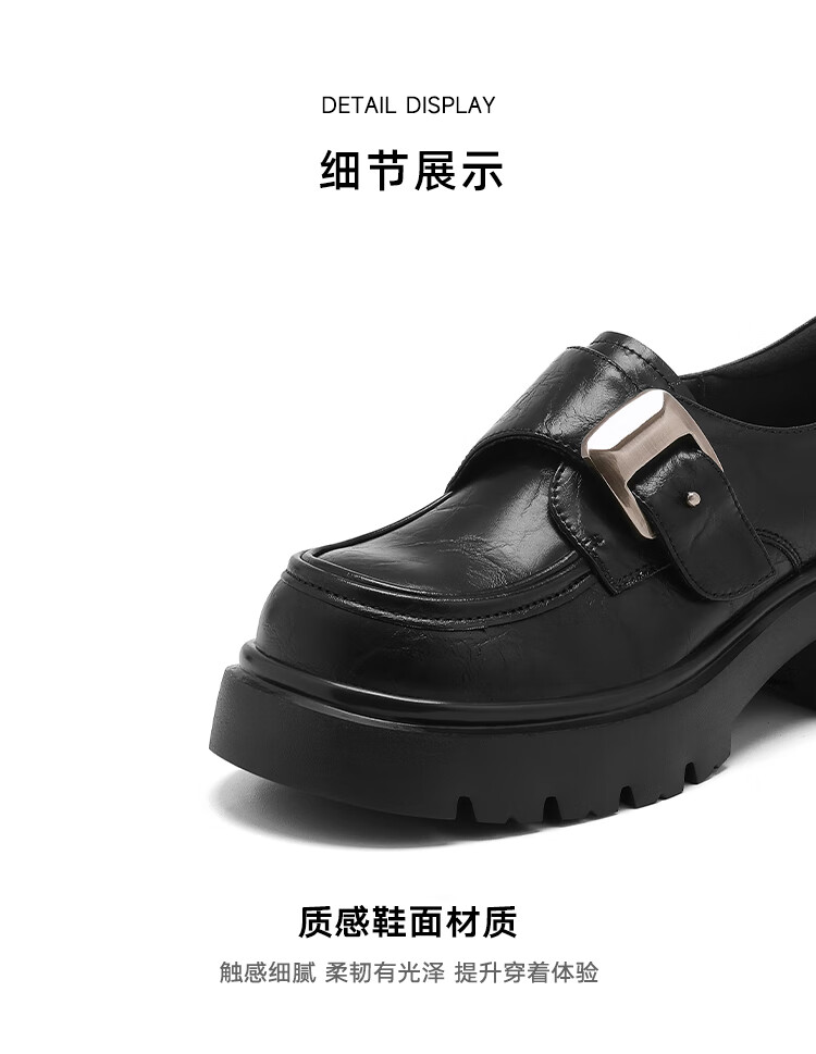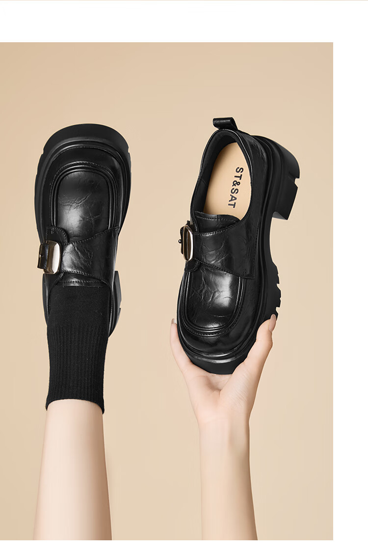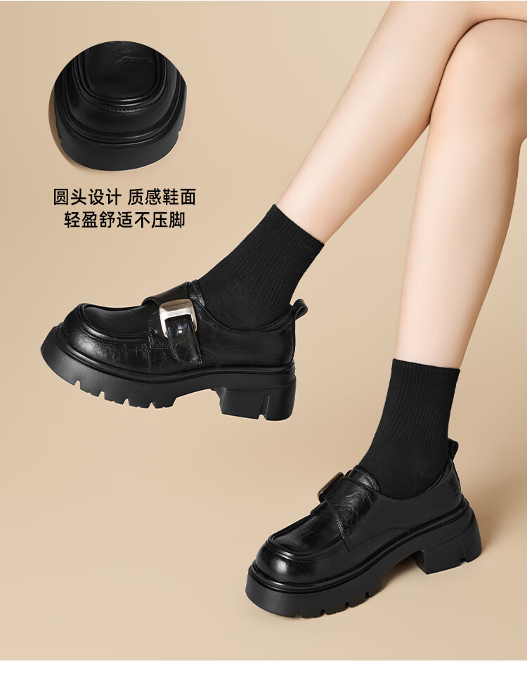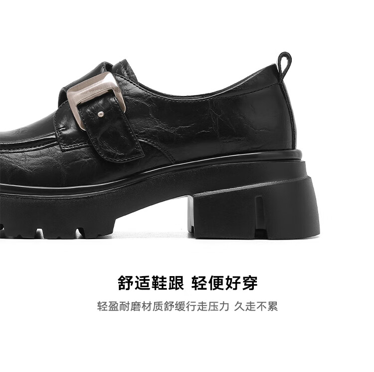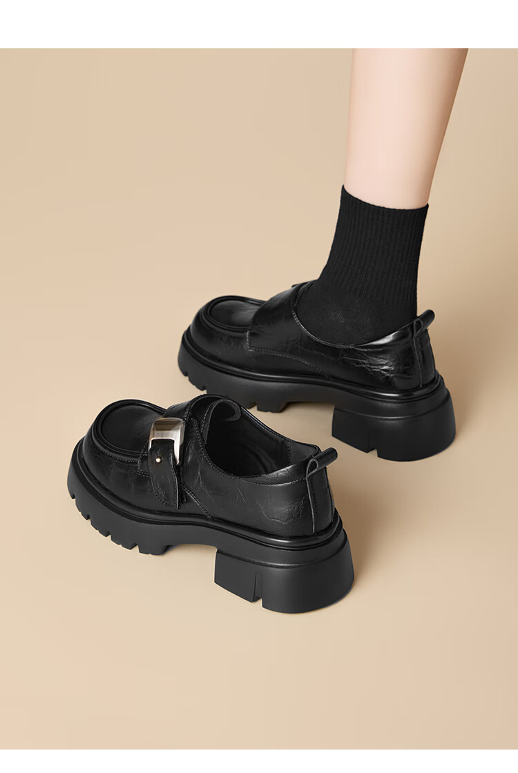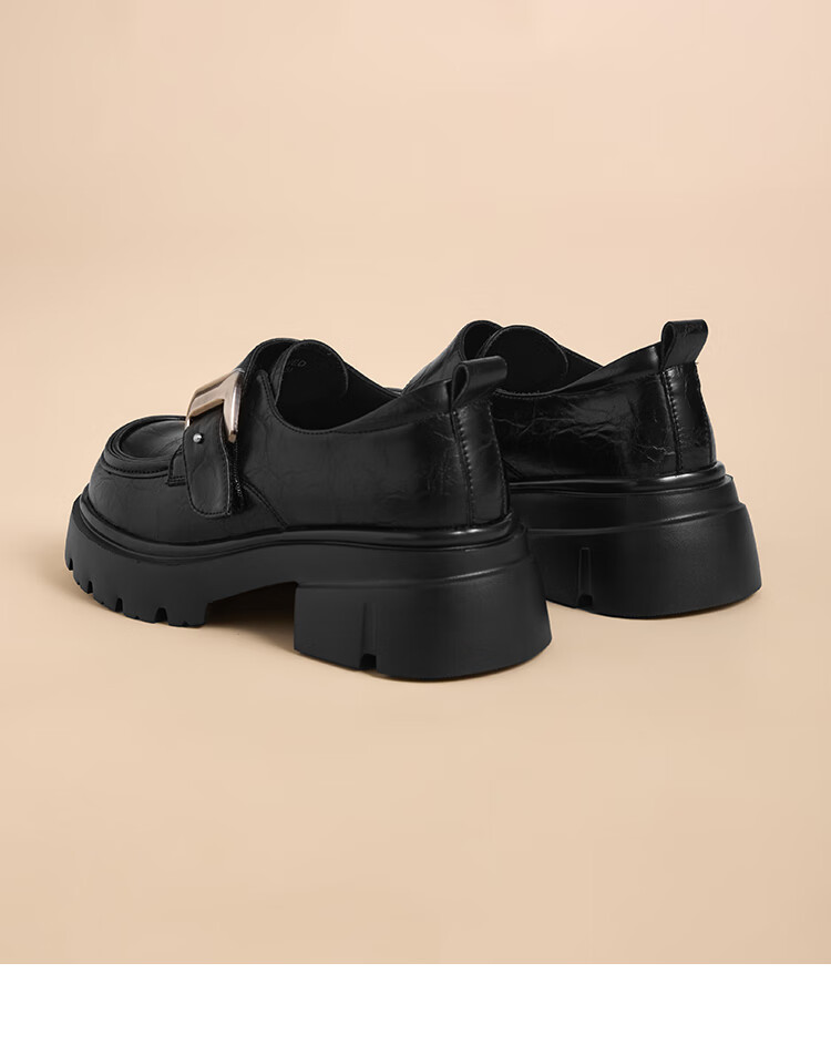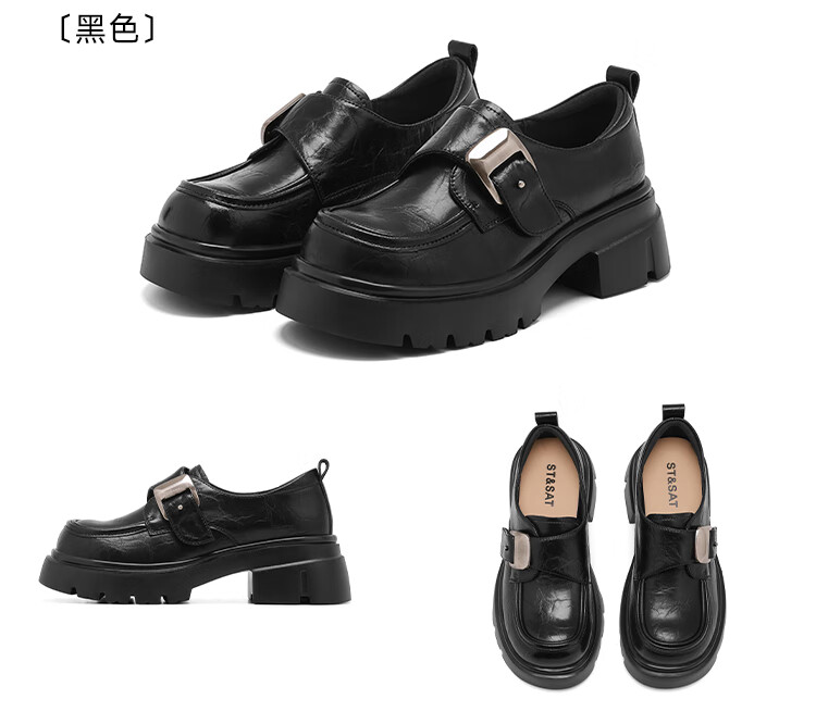 星期六厚底乐福鞋女2025新款秋冬百搭单鞋英伦风亮面黑色小皮鞋女鞋 黑色 36