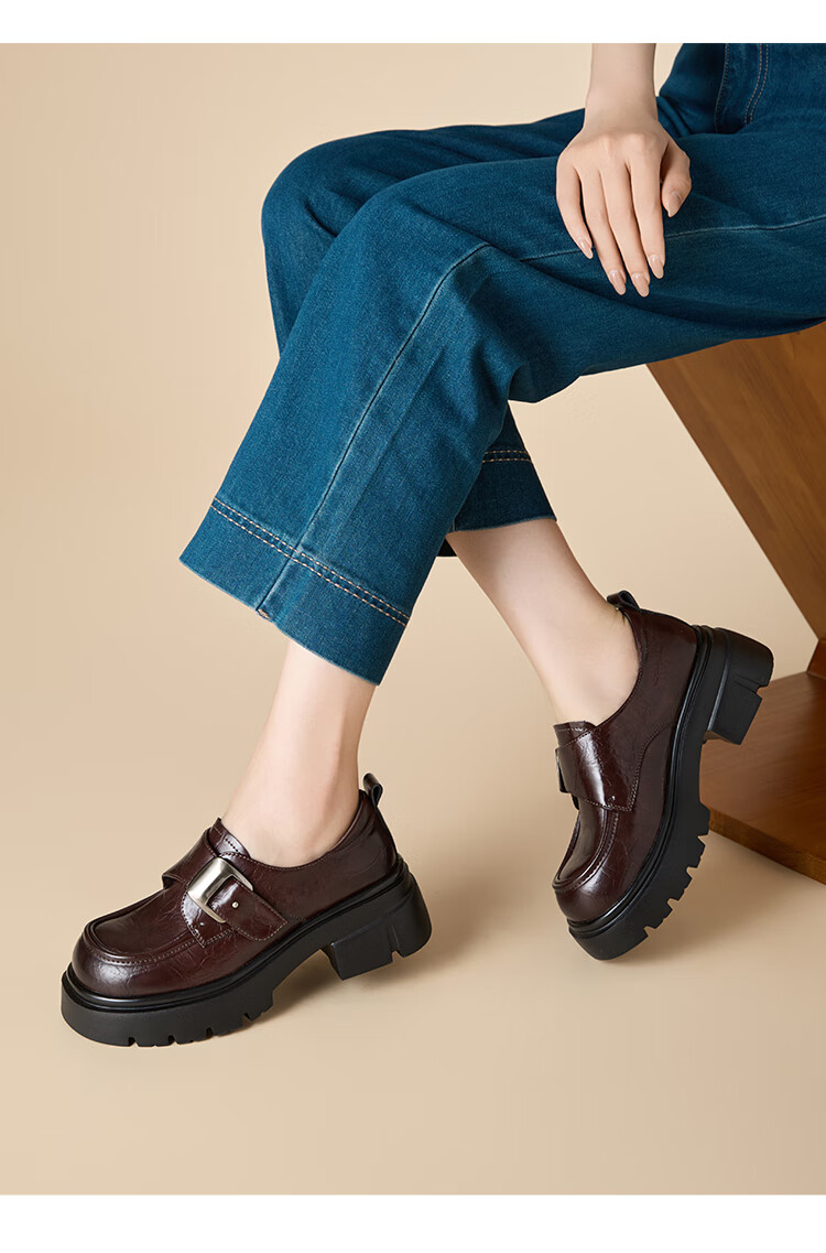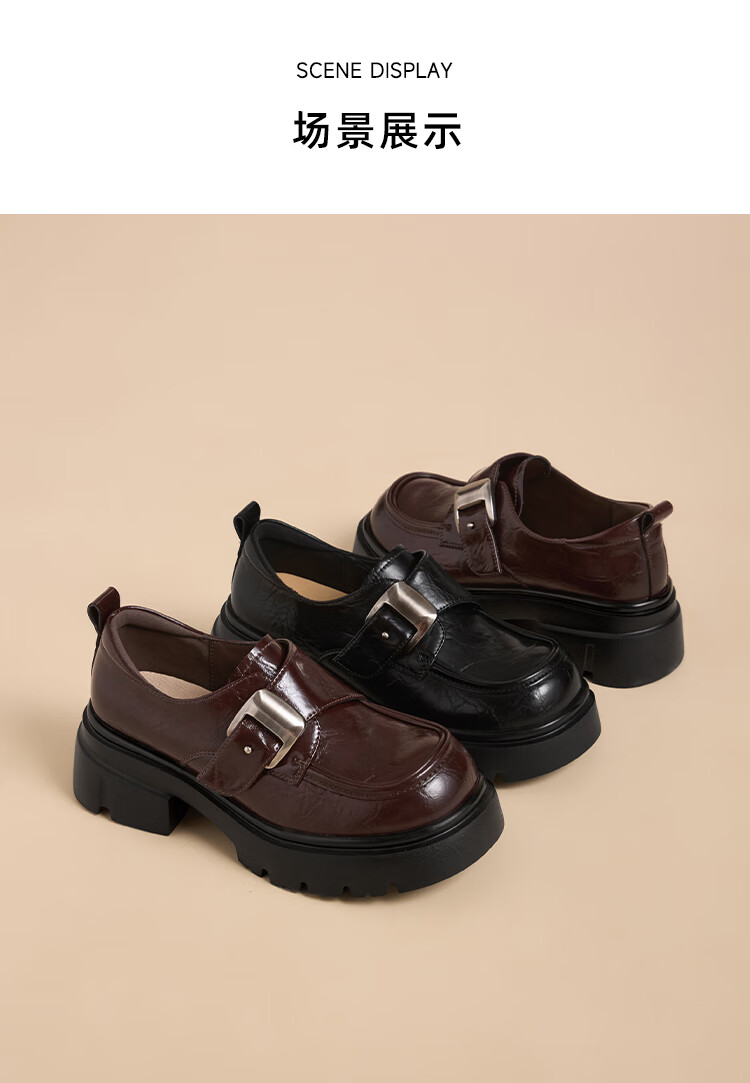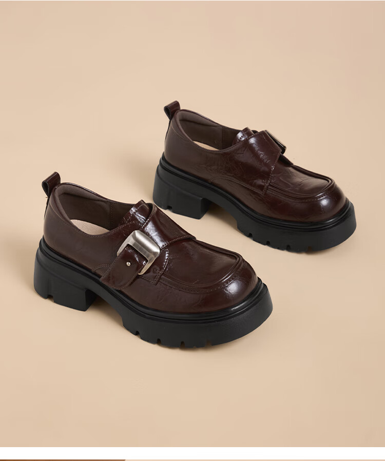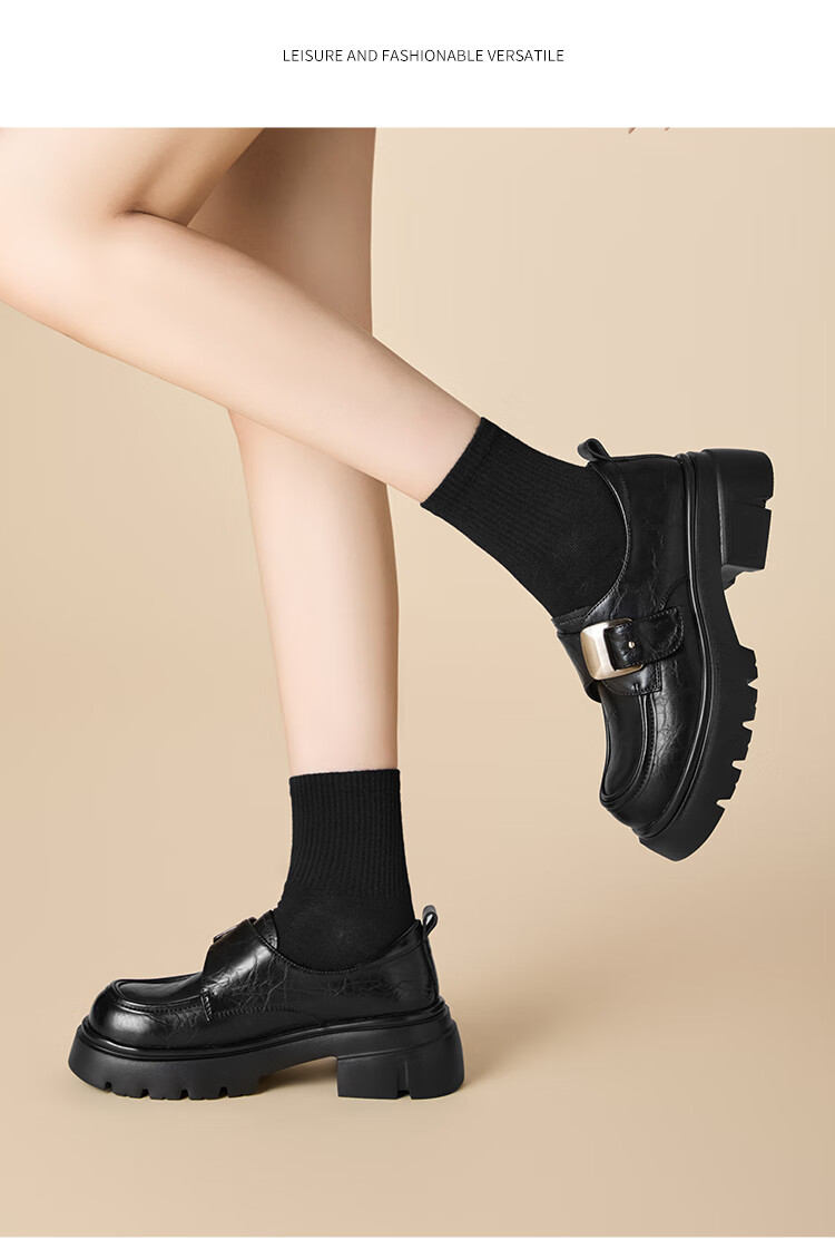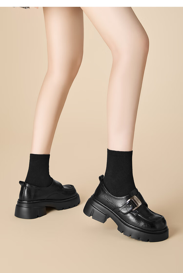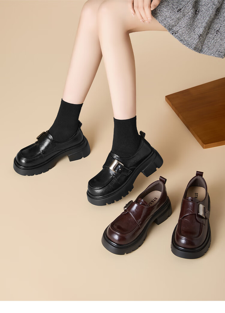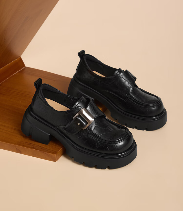星期六厚底乐福鞋女2025新款秋冬百搭单鞋英伦风亮面黑色小皮鞋女鞋 黑色 36