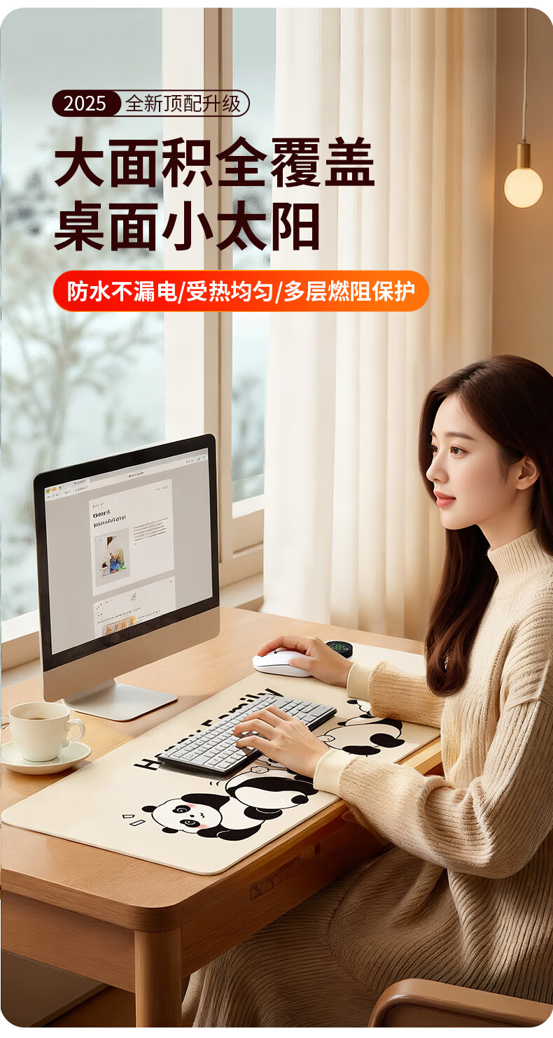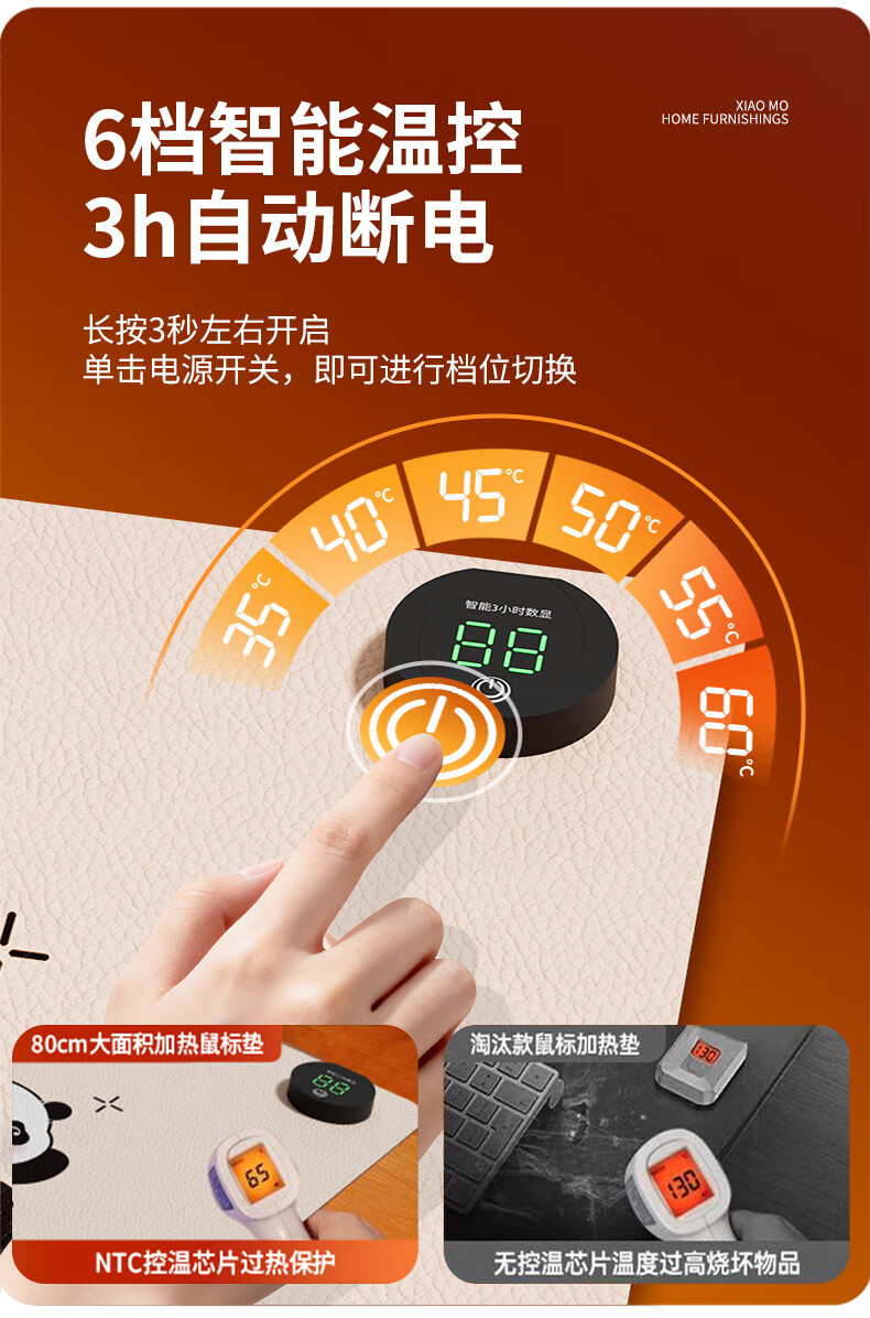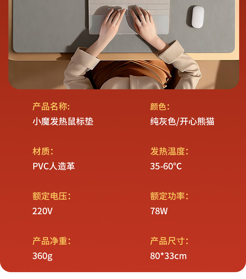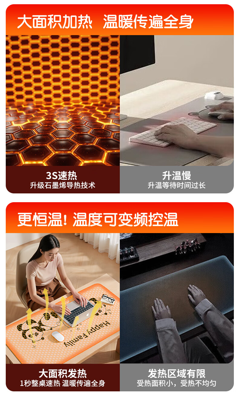 小魔加热鼠标垫发热桌垫超大加长暖手桌垫办公桌写字台桌面加热垫