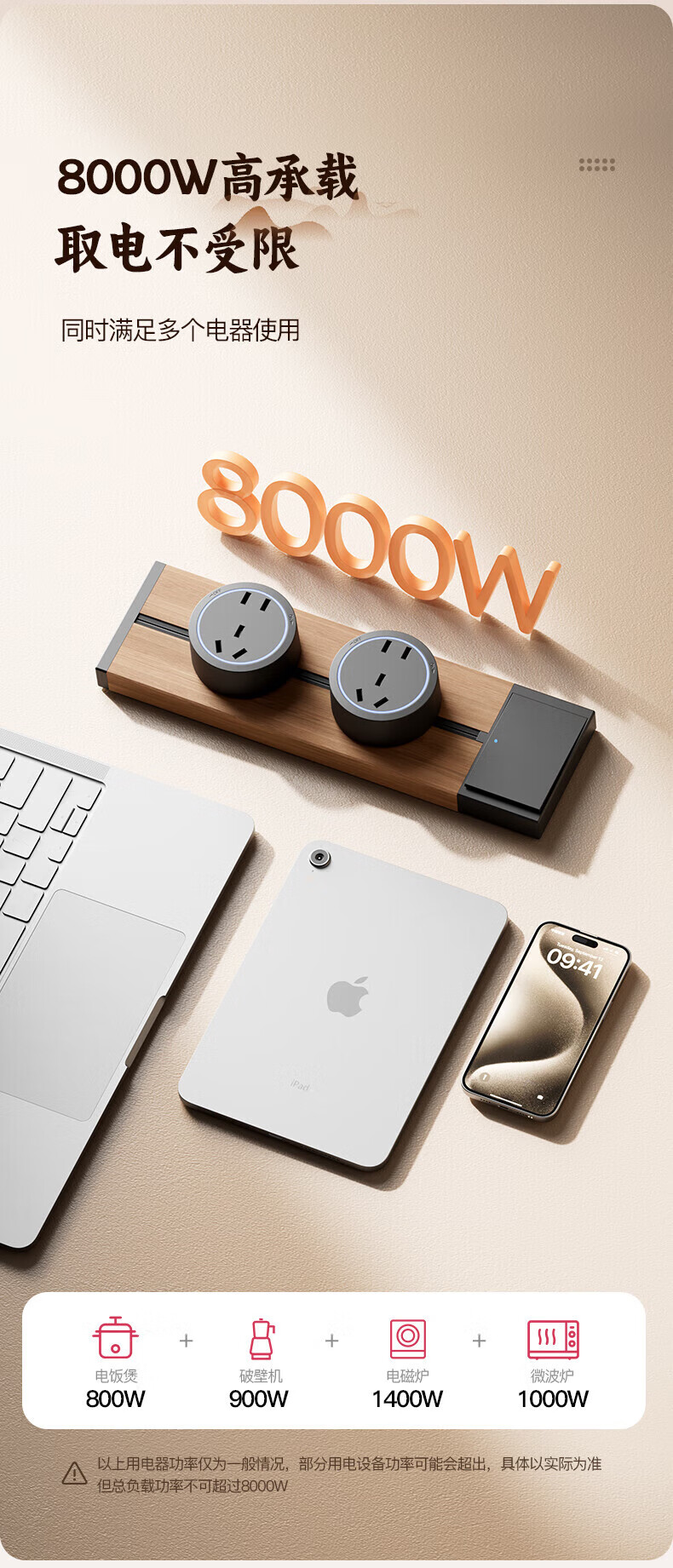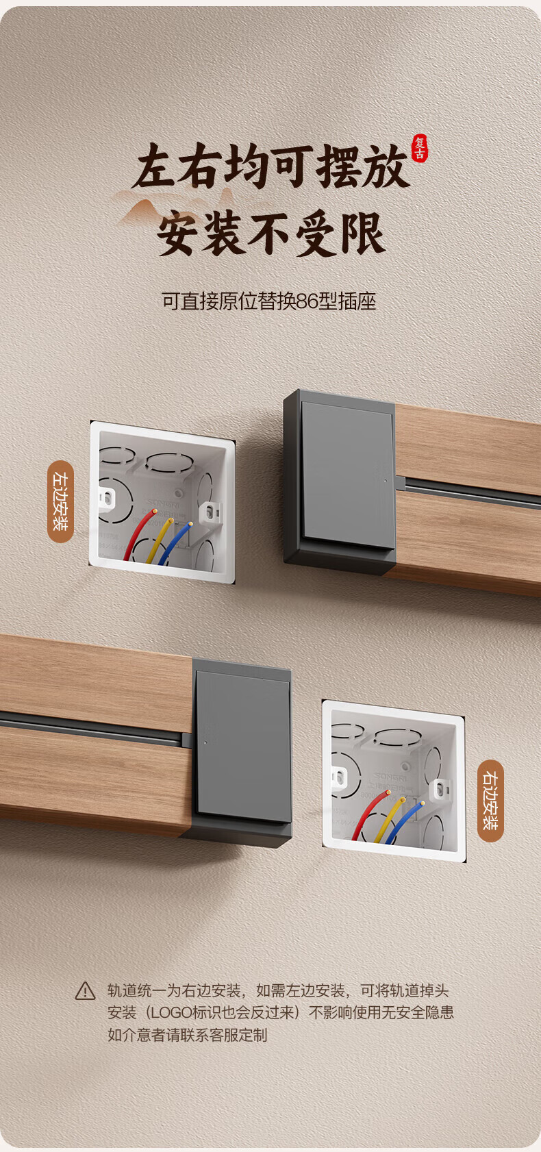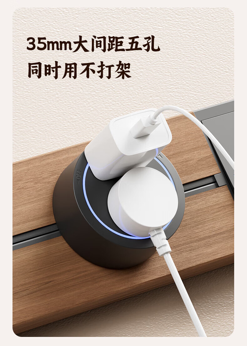 国际电工新中古风迷你轨道插座25cm黑胡桃木纹色复古超短可移动排插小尺寸 USB适配器(蓝灯)
