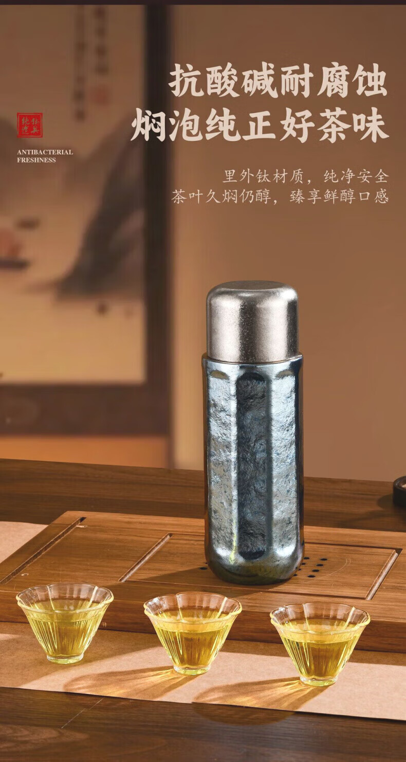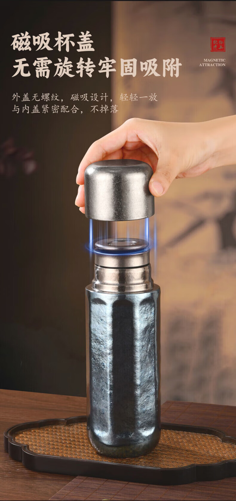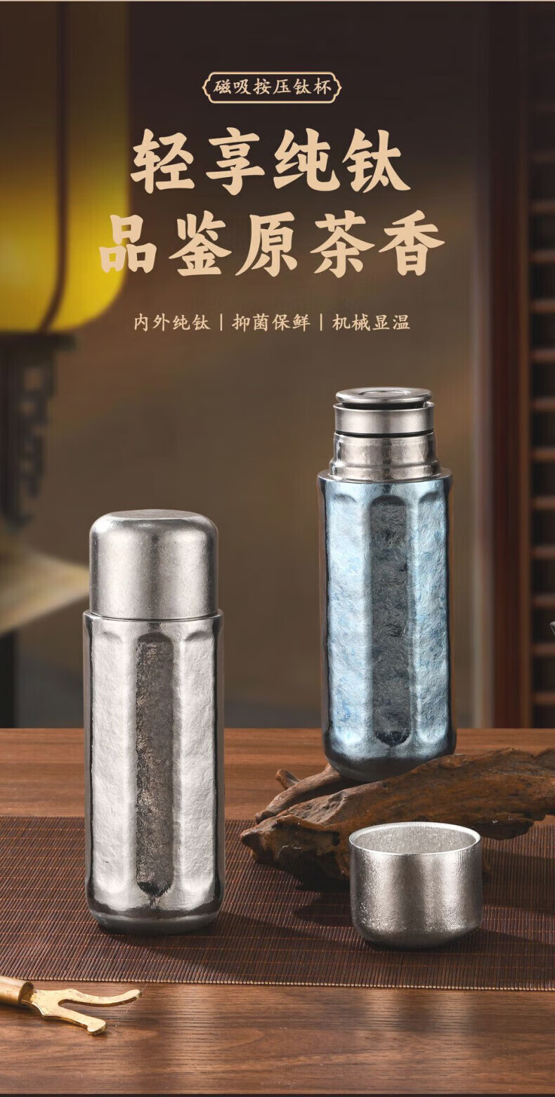 WFFPM德国品牌钛杯轻奢高端纯钛保温杯高颜值泡茶杯磁吸茶水分离焖茶杯 钛本色 450ml