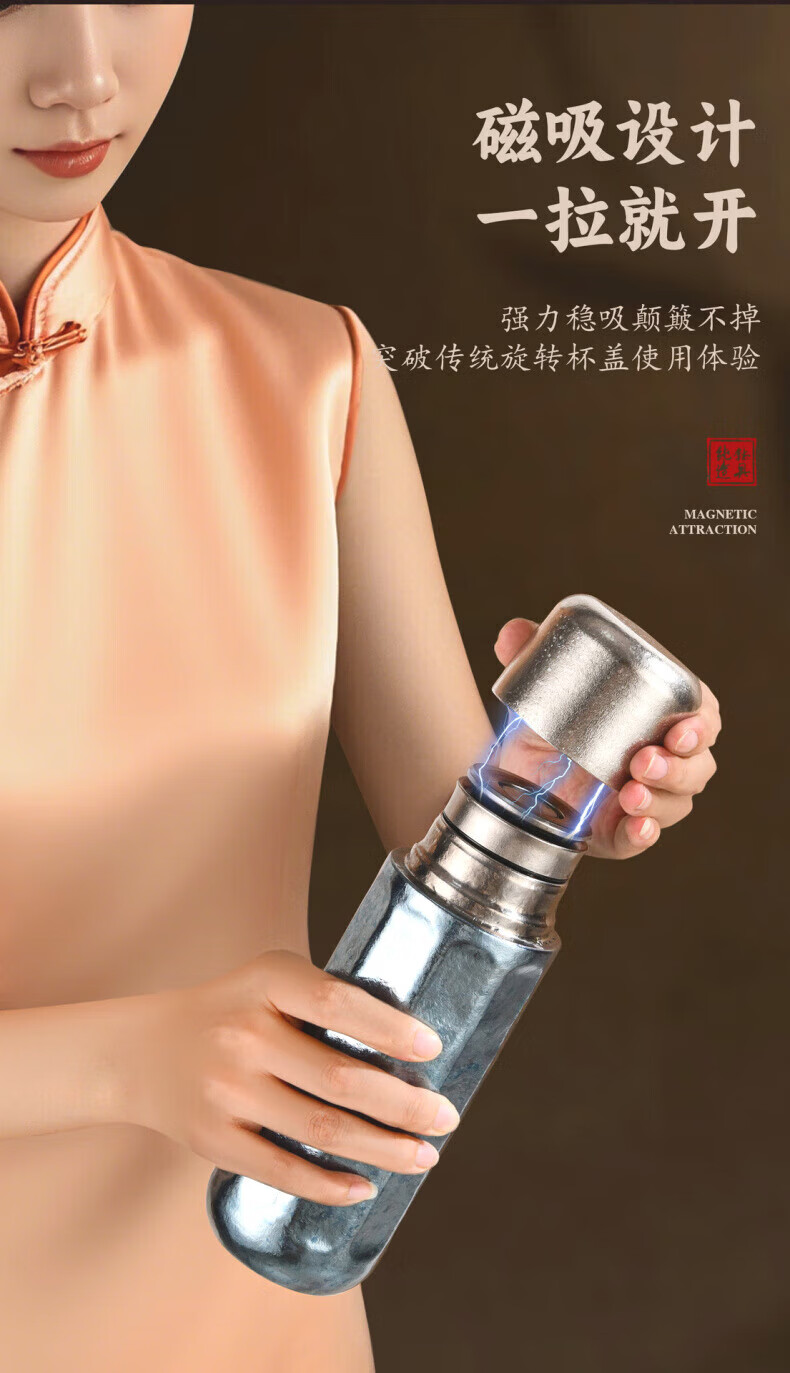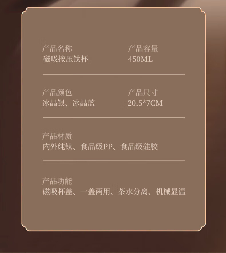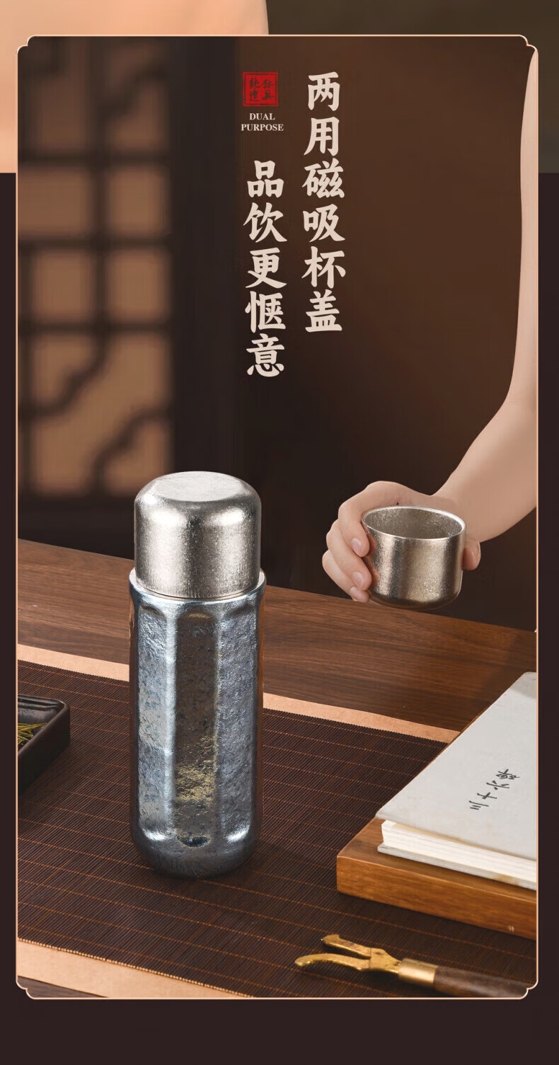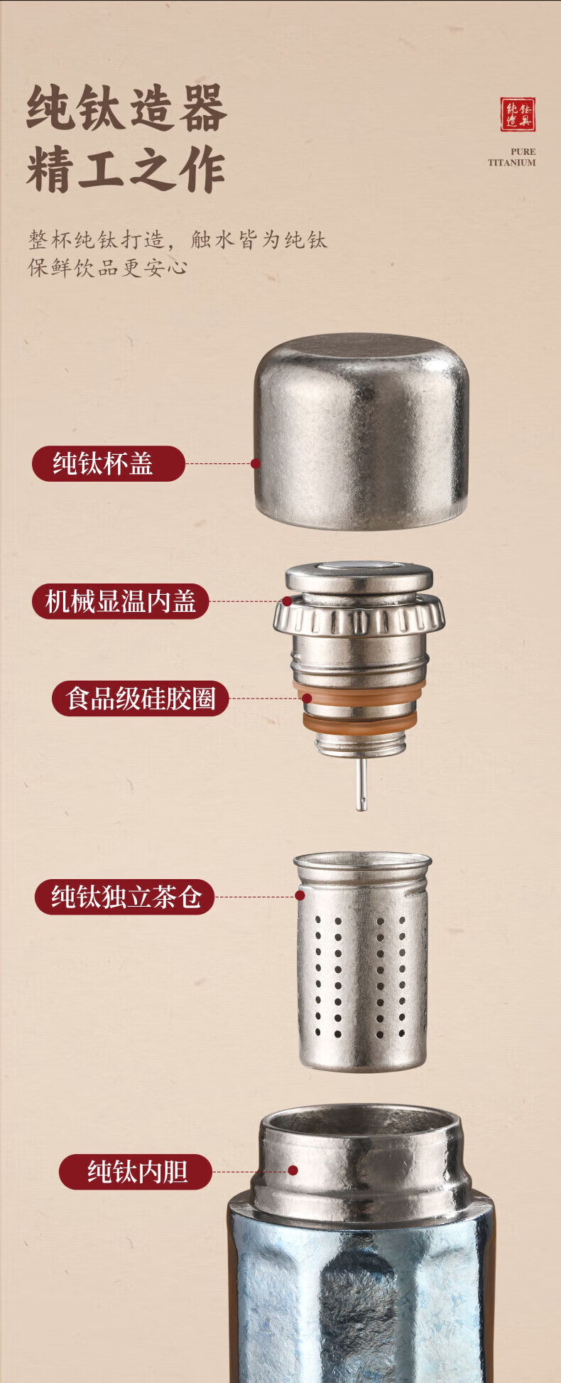 WFFPM德国品牌钛杯轻奢高端纯钛保温杯高颜值泡茶杯磁吸茶水分离焖茶杯 钛本色 450ml