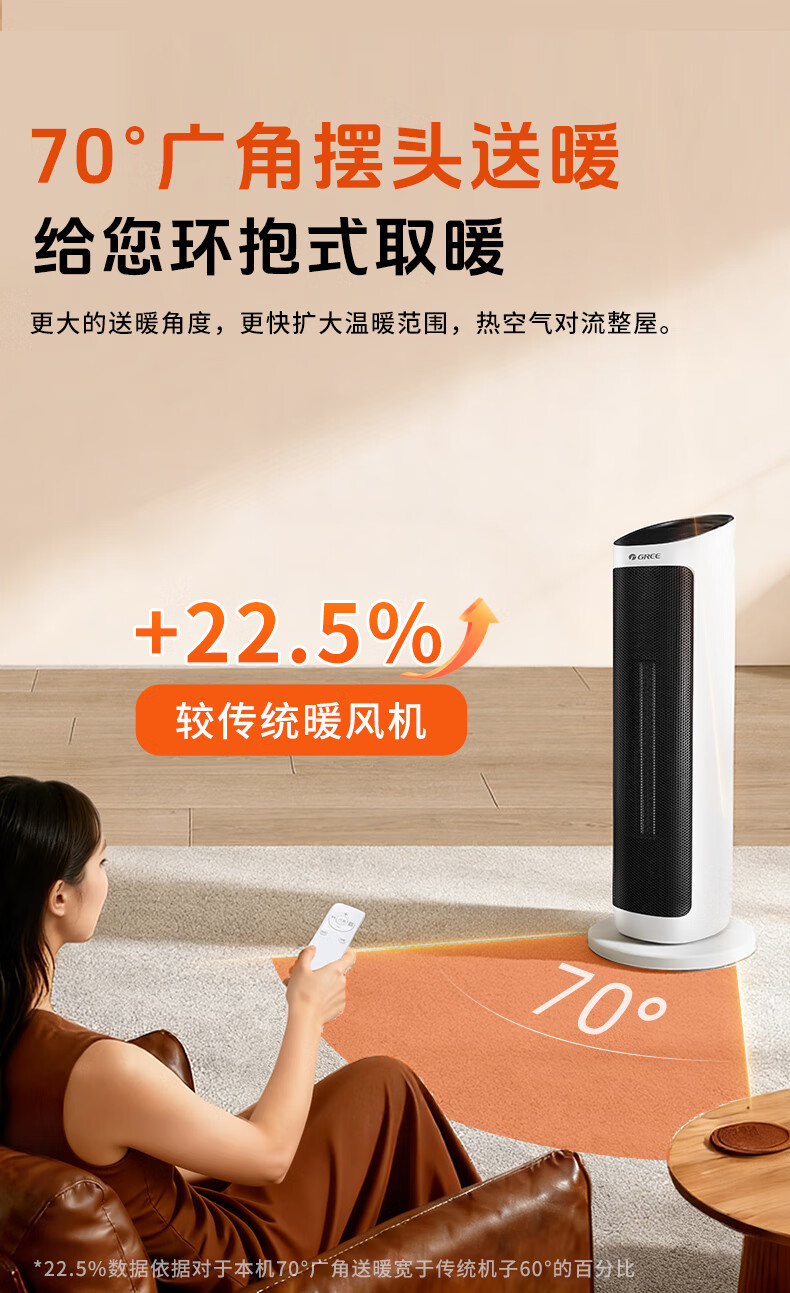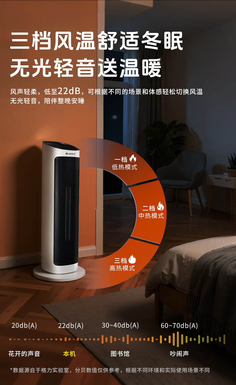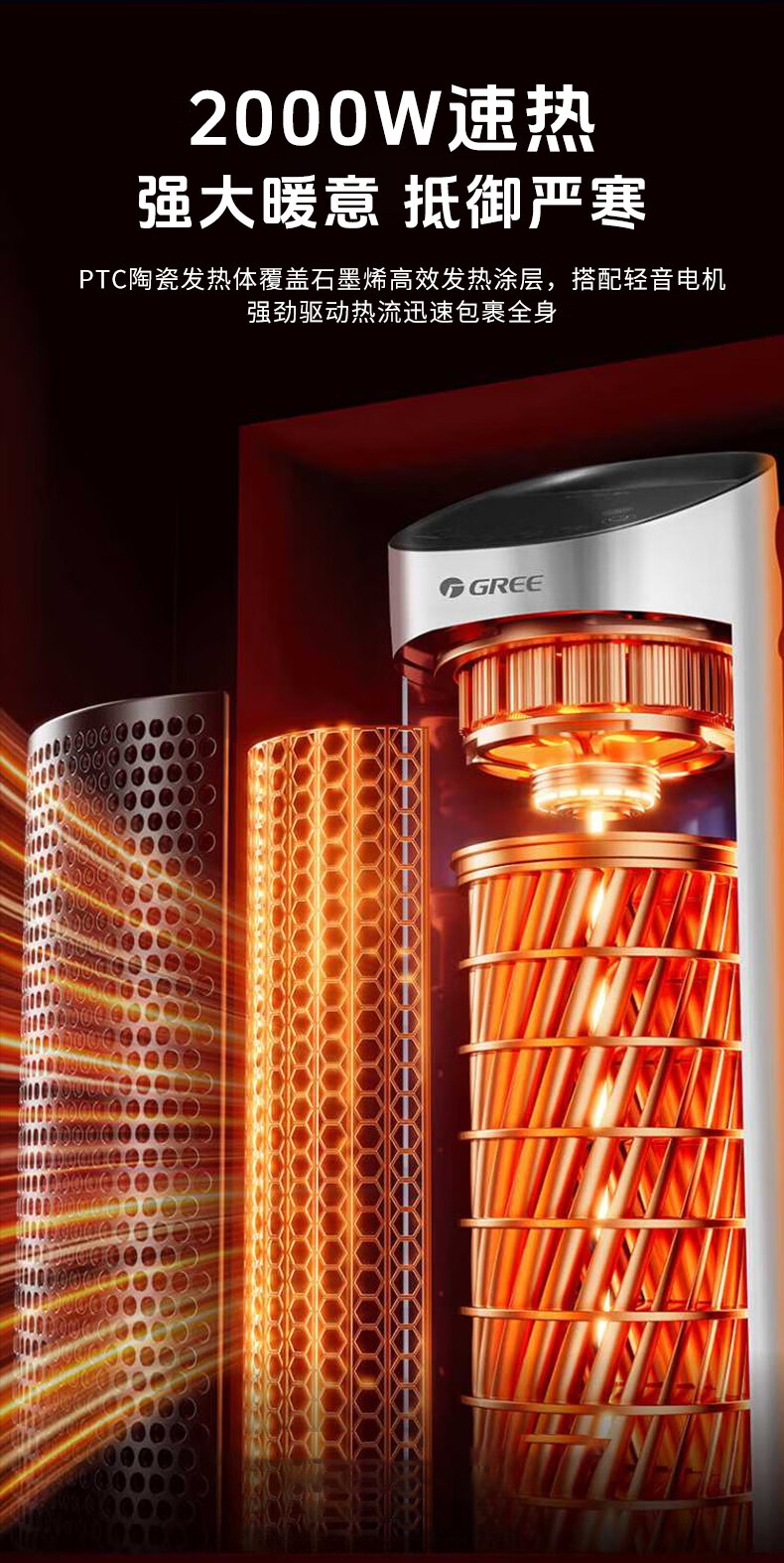 格力取暖器石墨烯家用电暖器 冬天办公室节能速热落地式电暖气卧室热风机全屋升温小太阳加热器 【石墨烯速热 负离子除尘】语音款