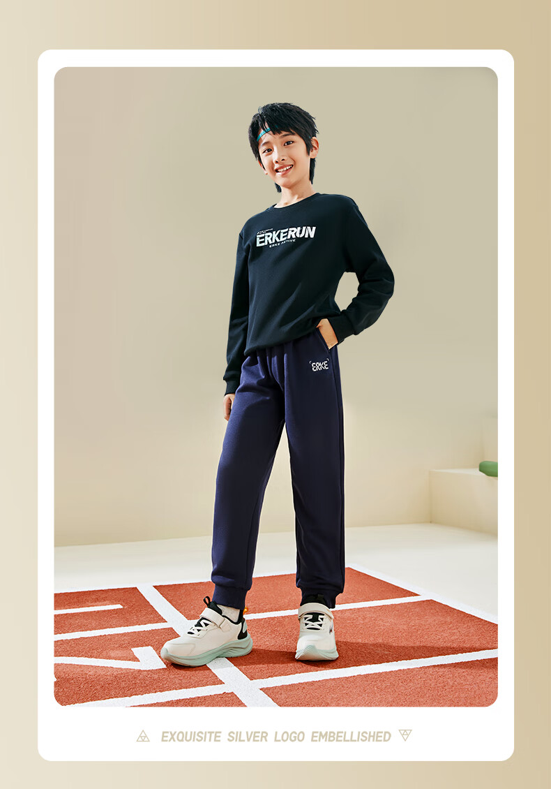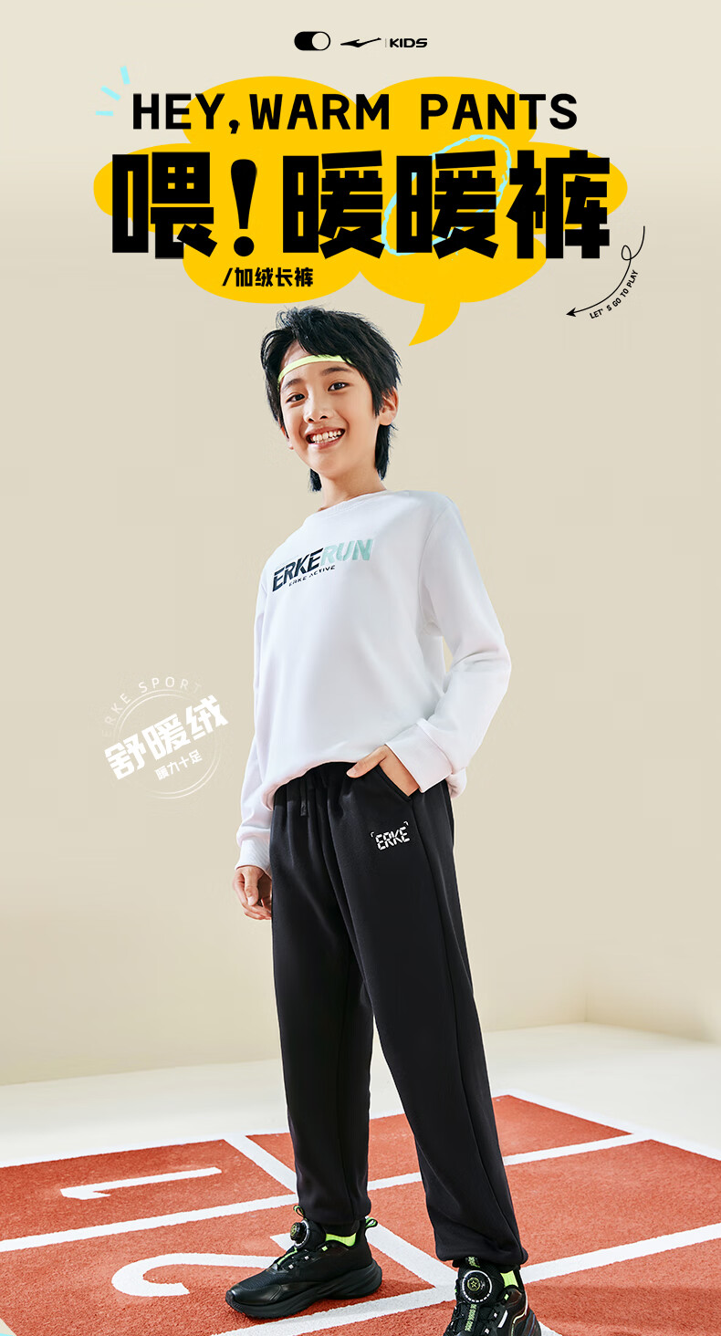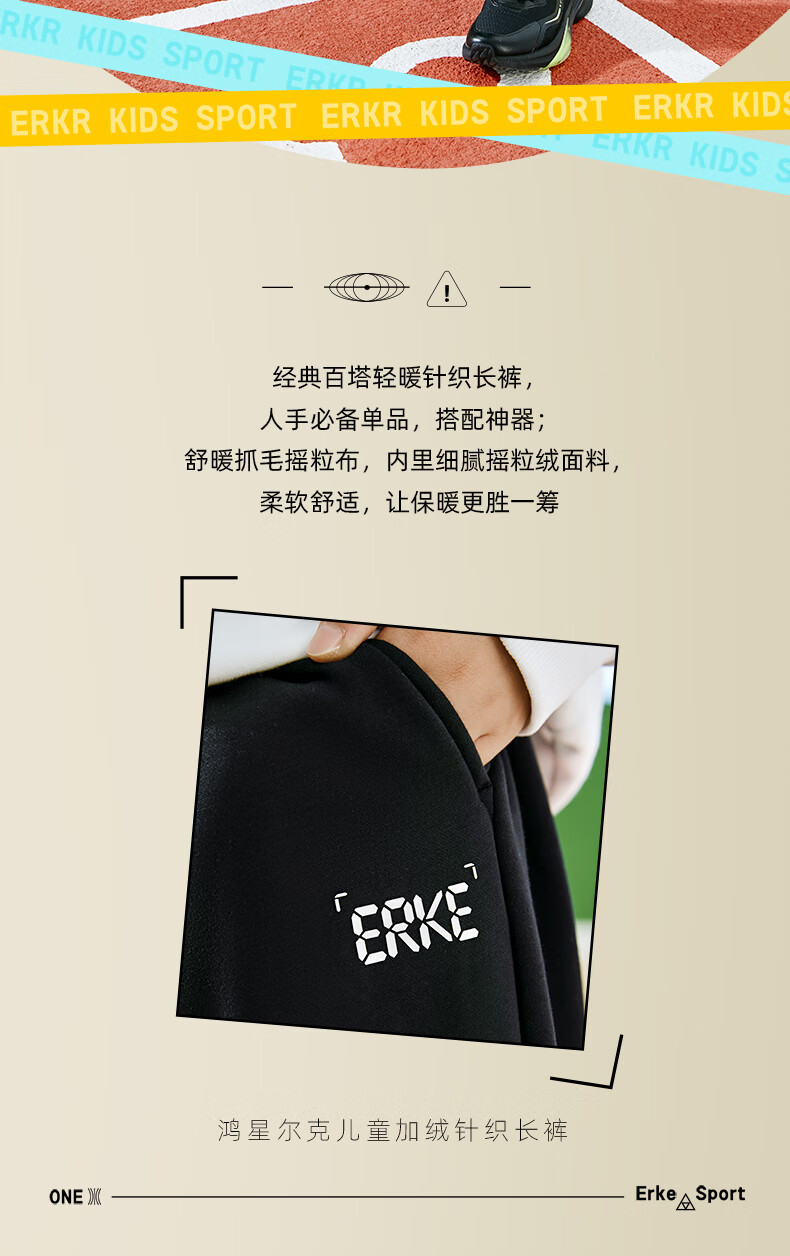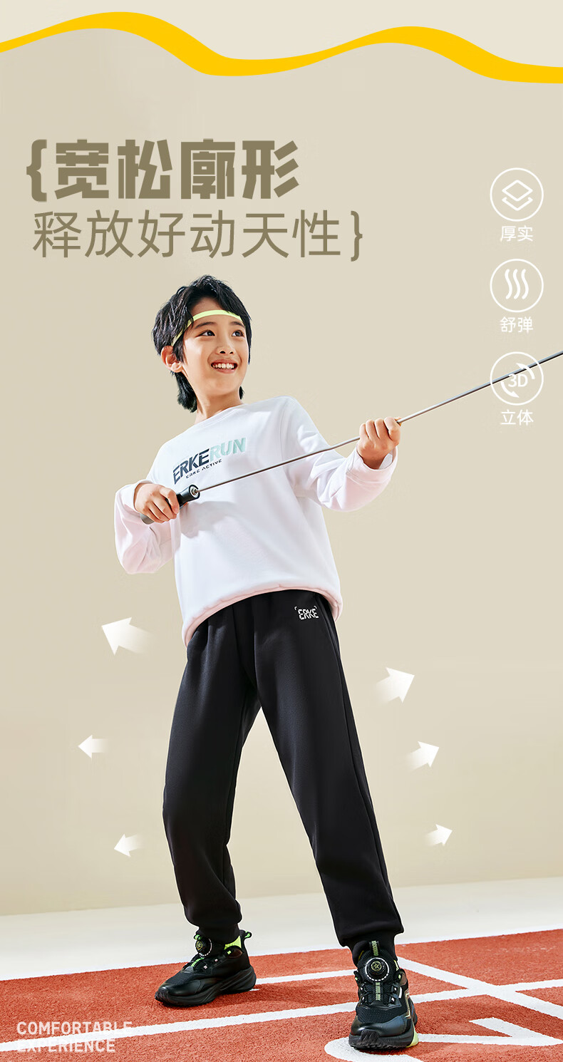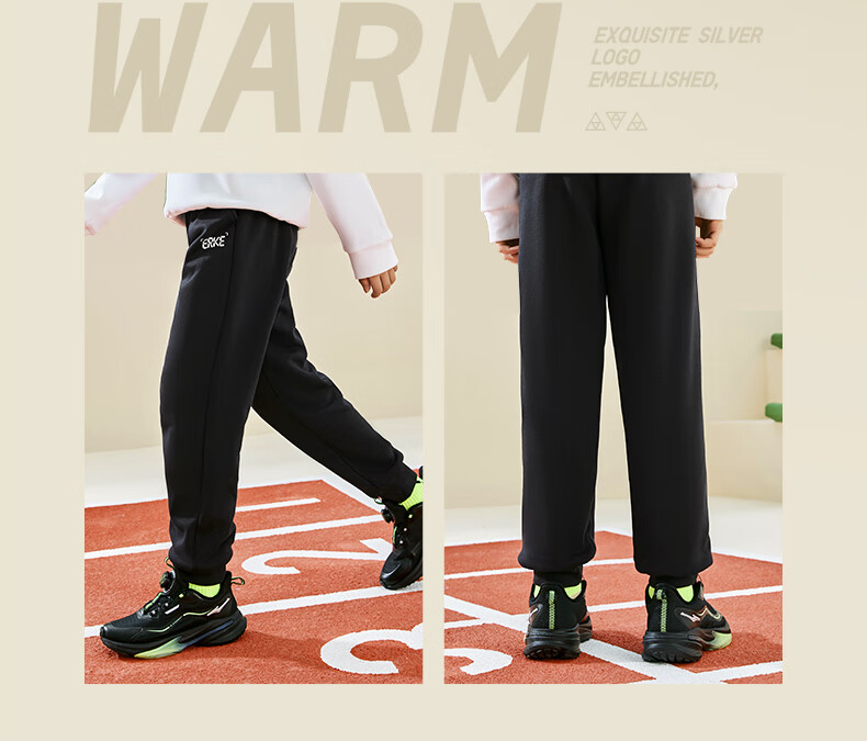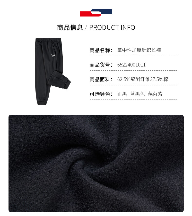 鸿星尔克儿童裤子男女童秋冬保暖加厚加绒裤针织长裤卫裤运动长裤暖暖裤 正黑 160