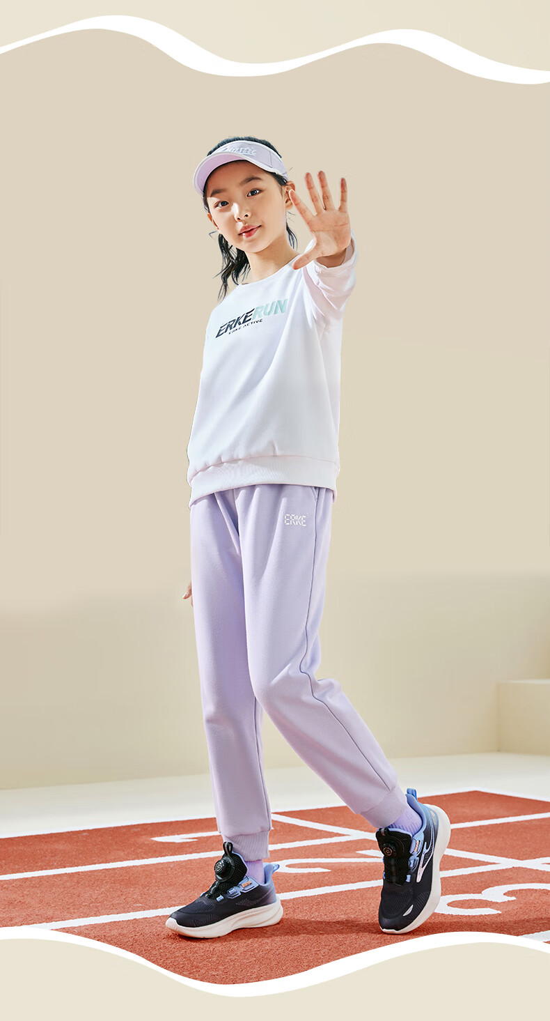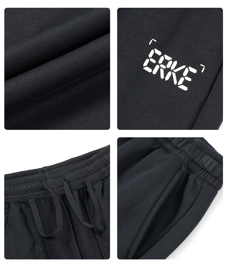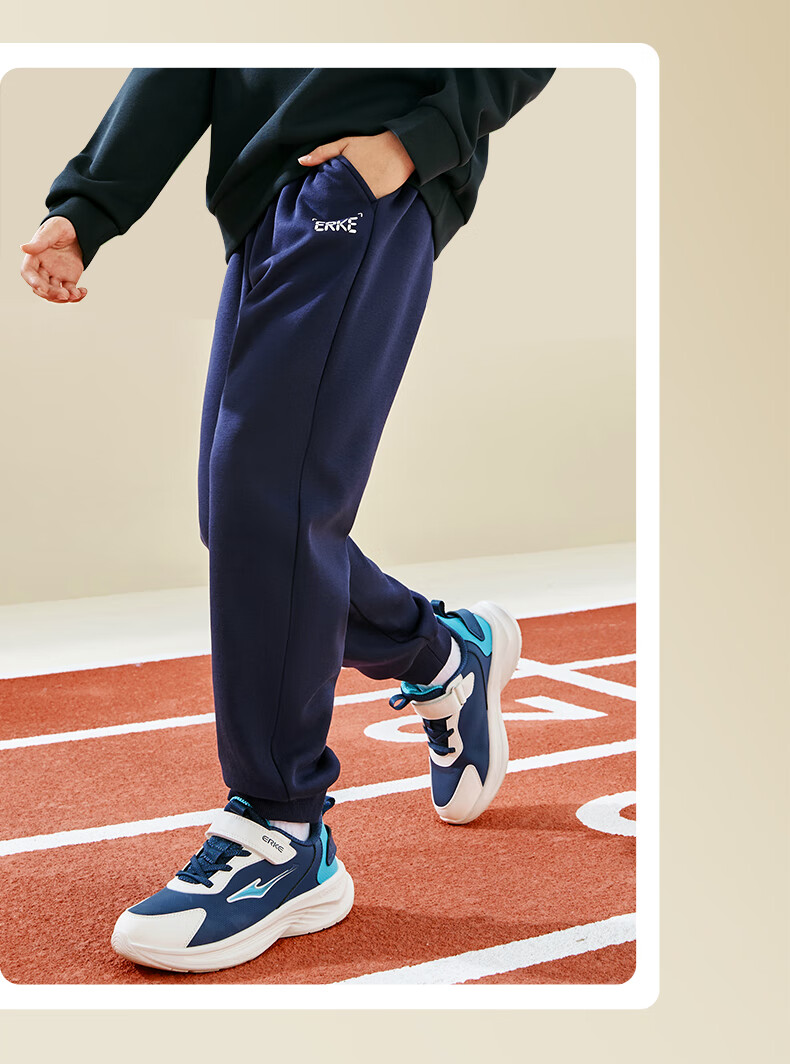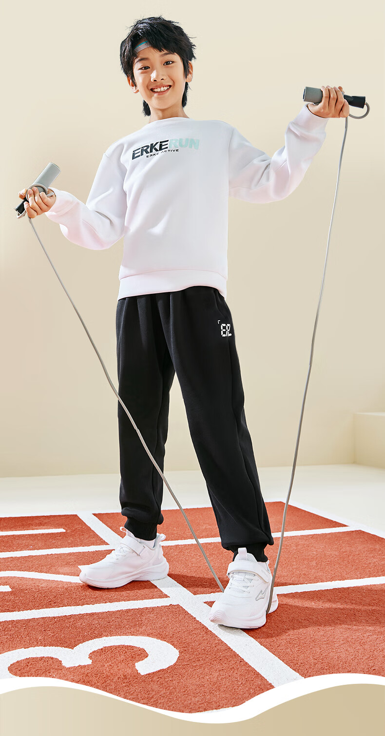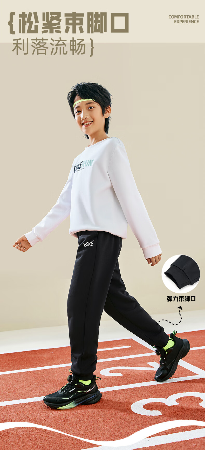 鸿星尔克儿童裤子男女童秋冬保暖加厚加绒裤针织长裤卫裤运动长裤暖暖裤 正黑 160