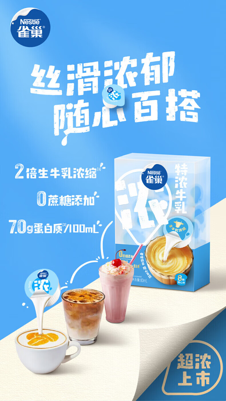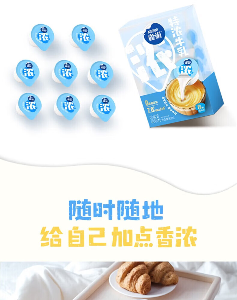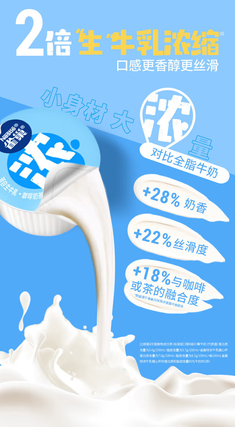 雀巢(Nestle)特浓牛乳胶囊奶球 丝滑浓郁牛乳0蔗糖 咖啡伴侣 茉香牛乳8颗*10ml*3