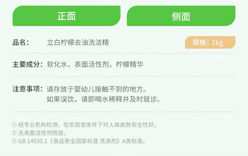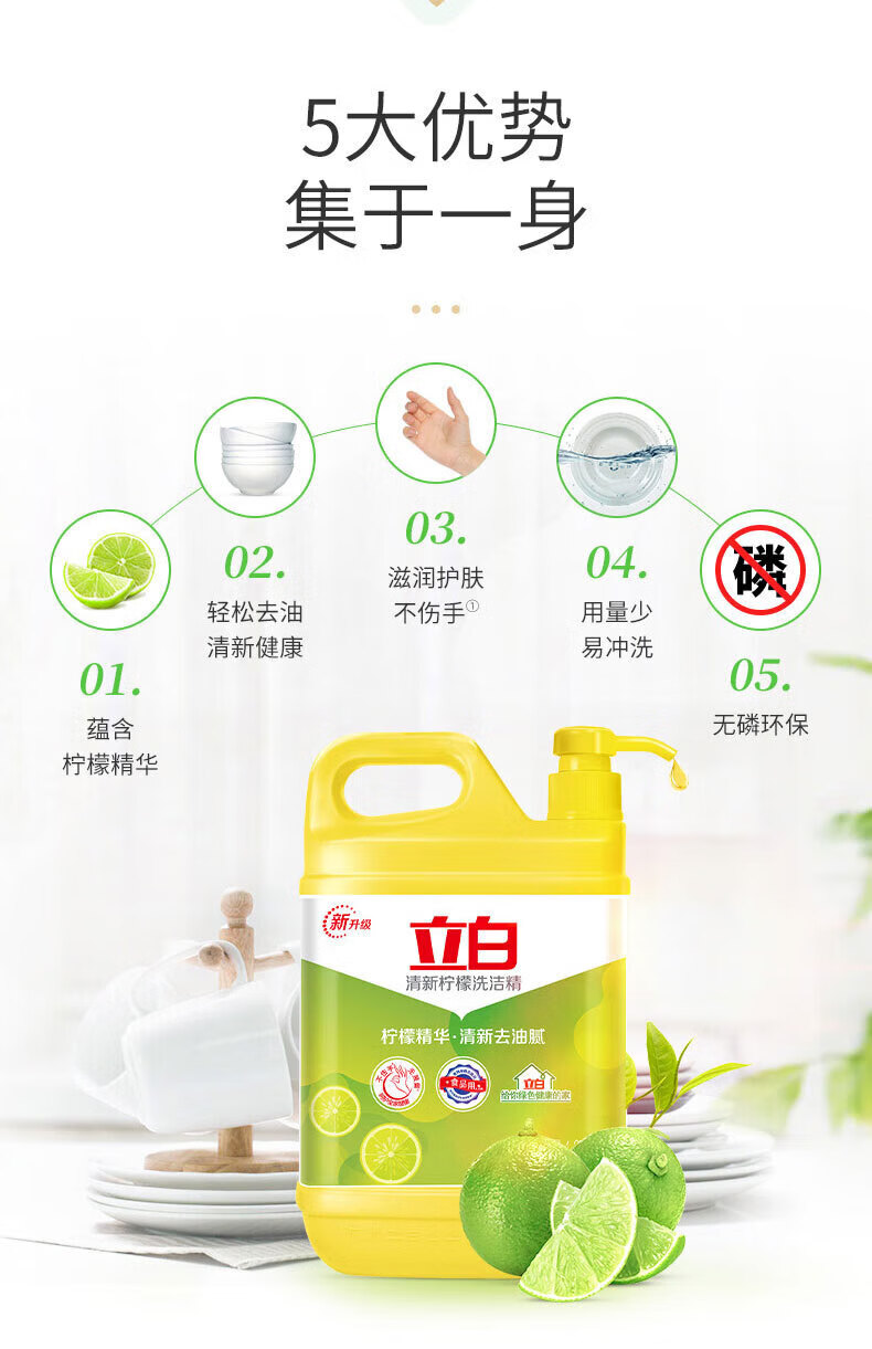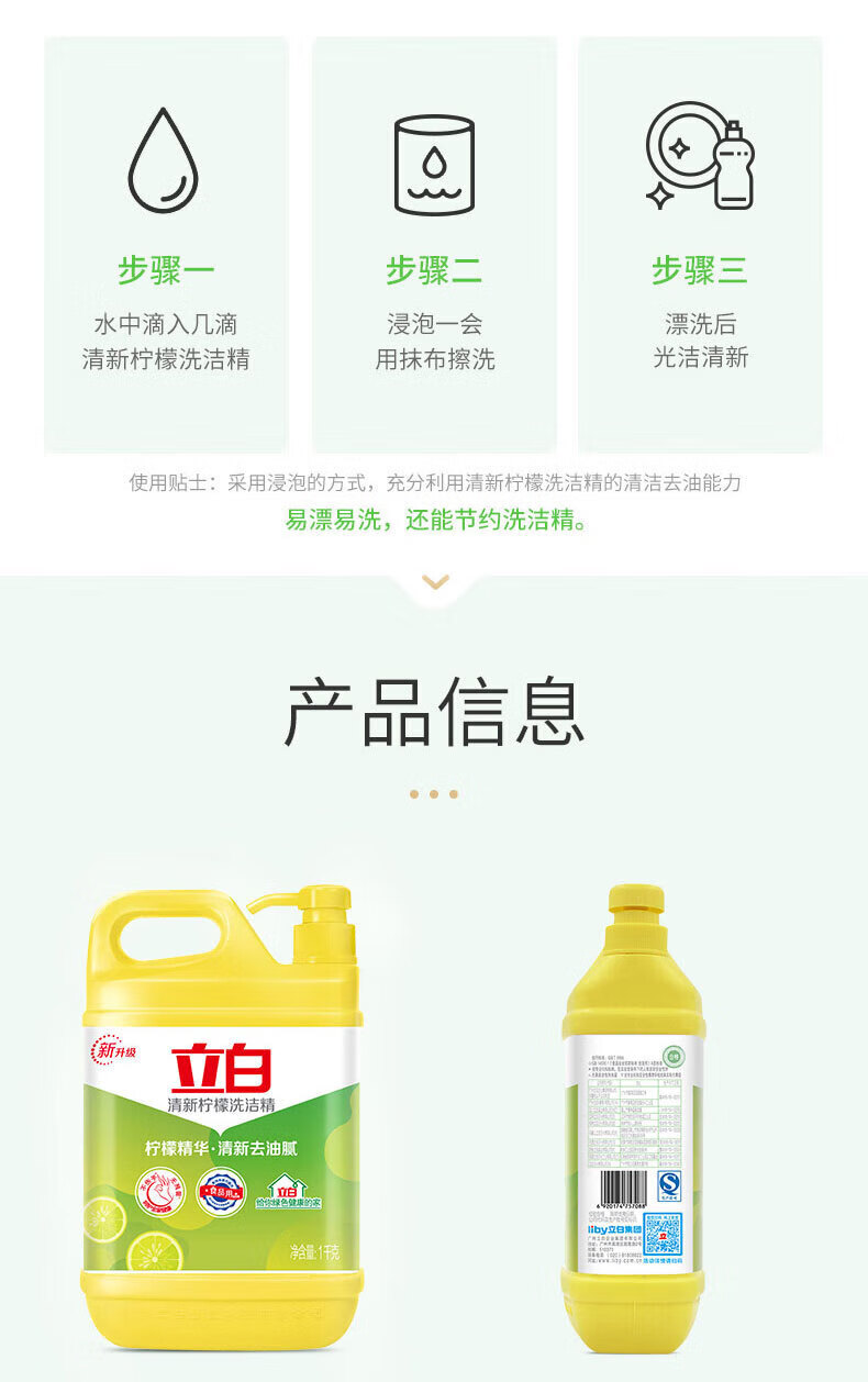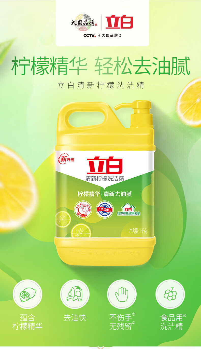 立白柠檬洗洁精食品用洗涤剂级家用实惠装大桶不伤手无残留 柠檬洗洁精1.12kg*1桶