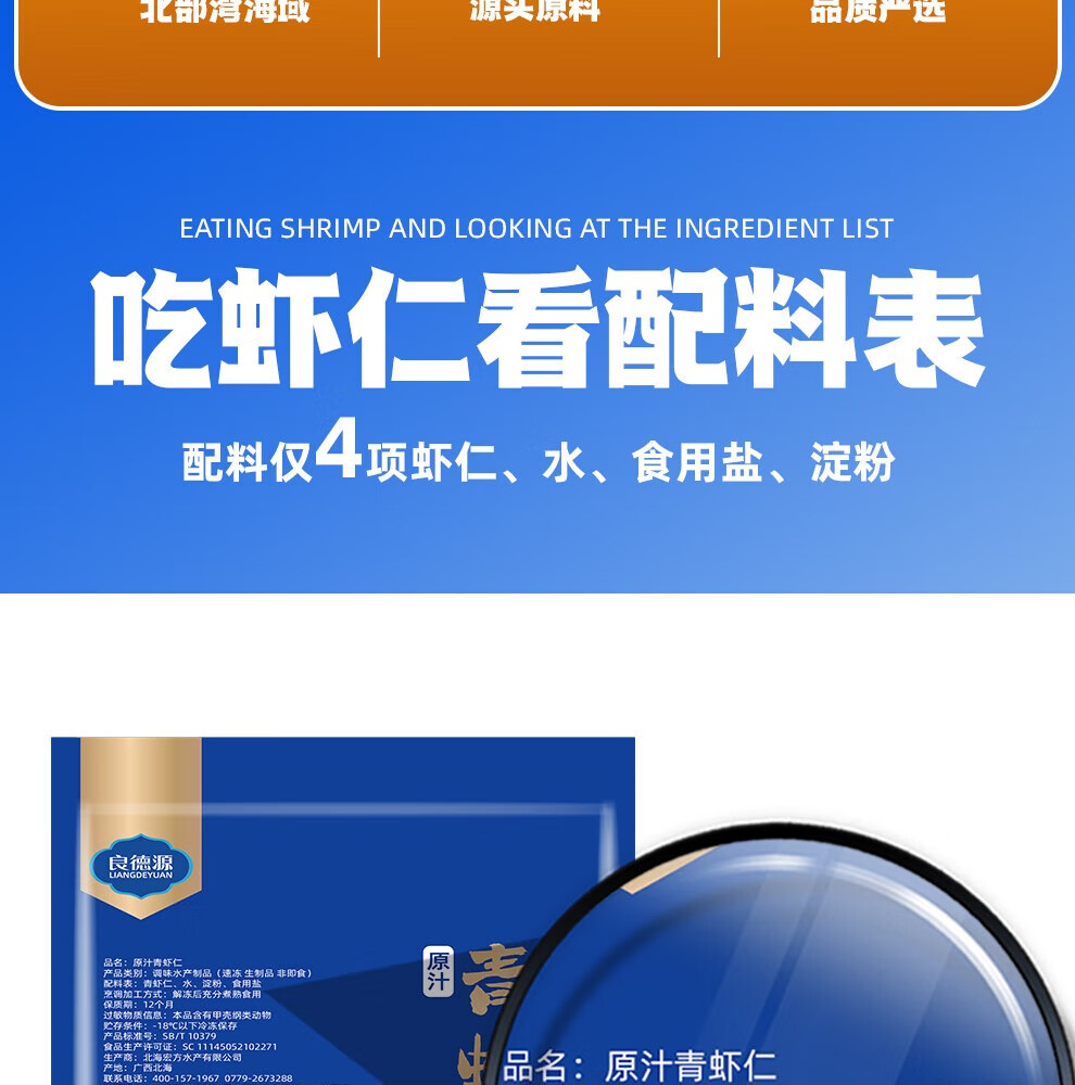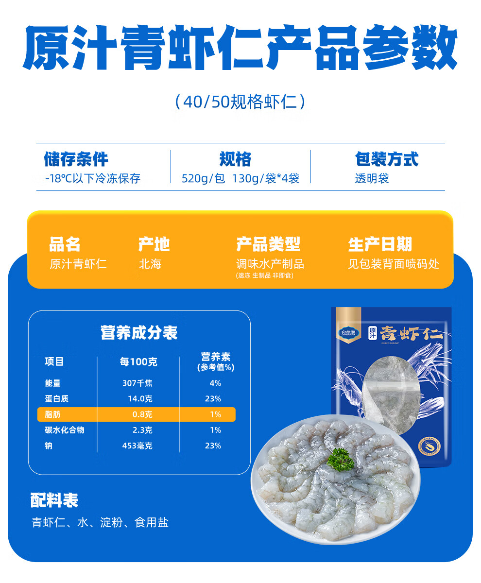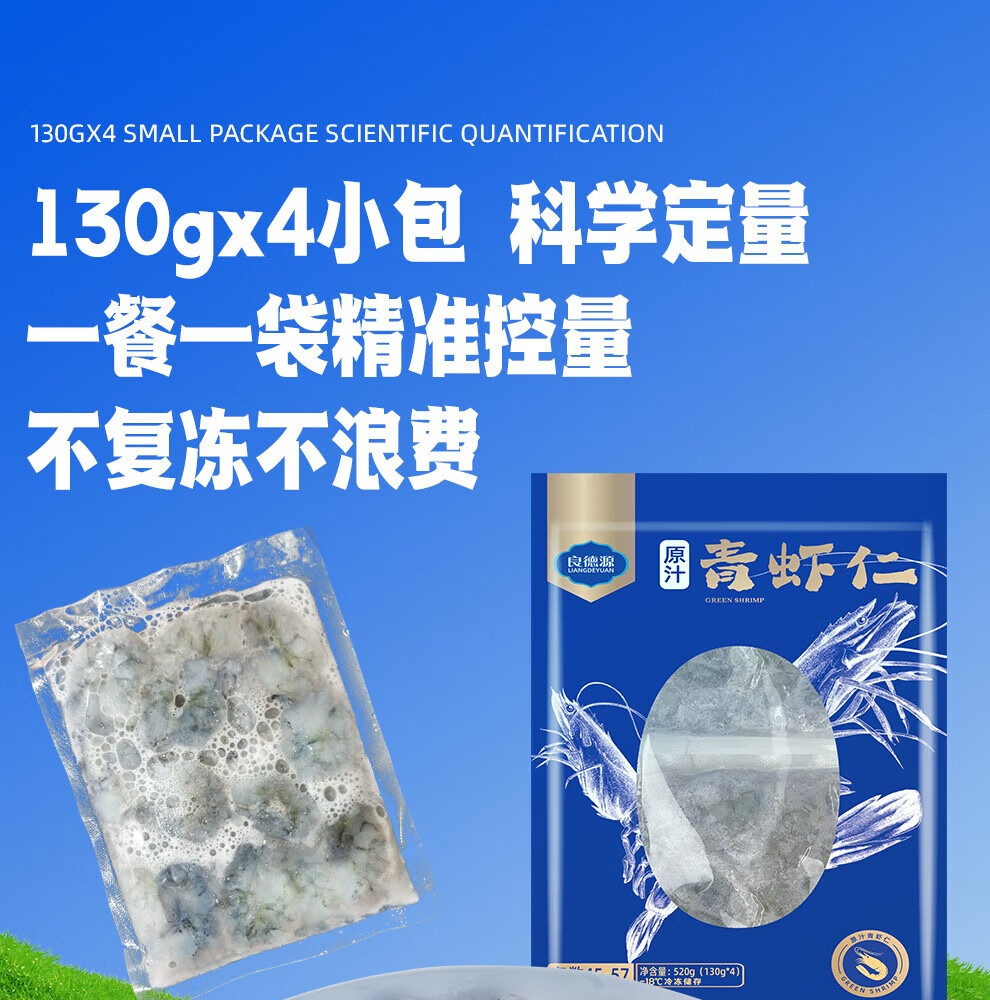 良德源国产北海大号青虾仁净重低脂食材火锅凉拌虾肉手工去虾线速食食材 【0添加】虾味很好 新工艺 520g(净重) 130g*4包