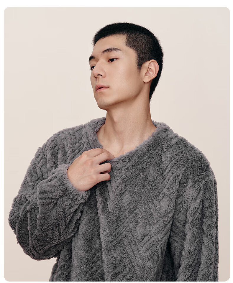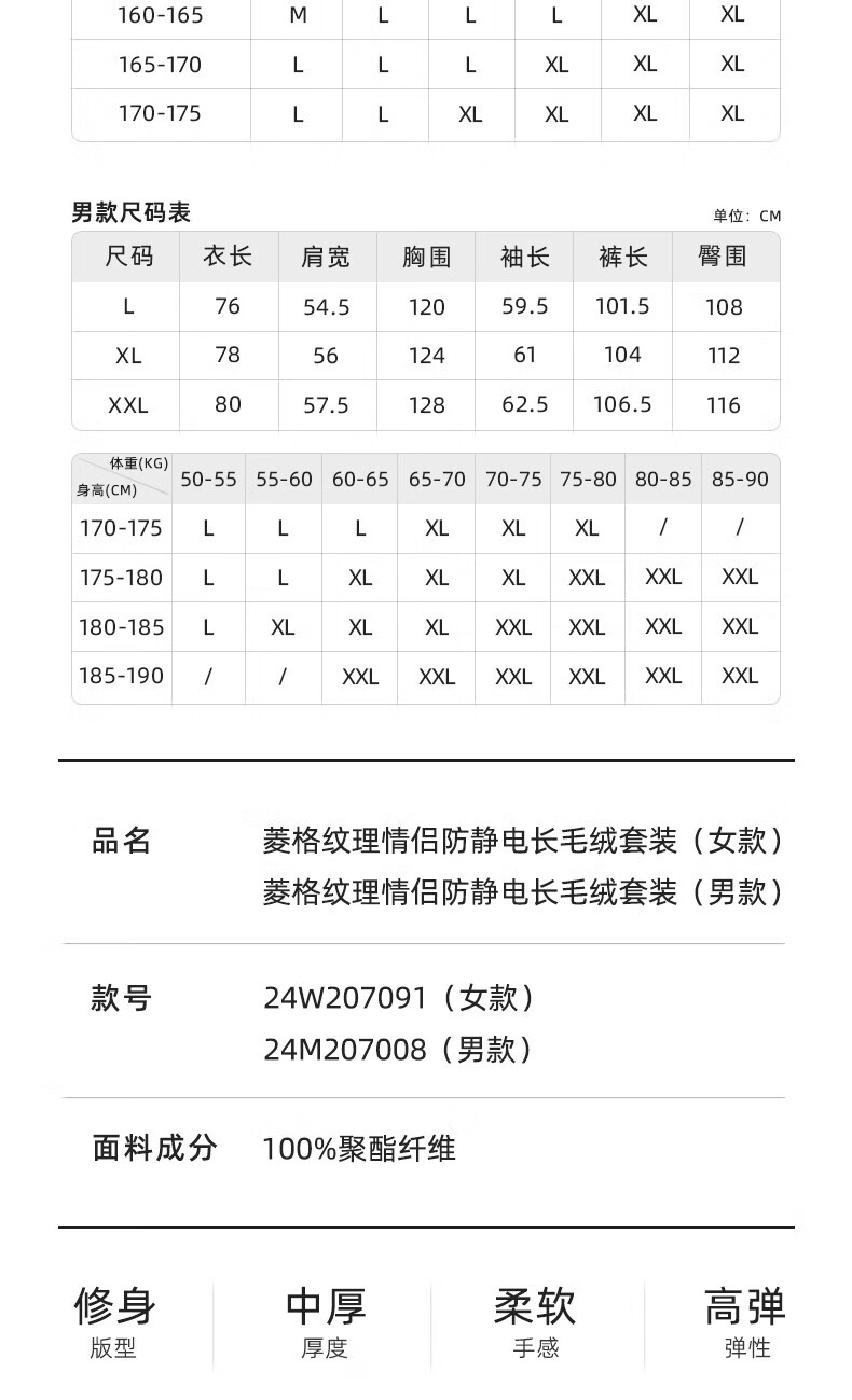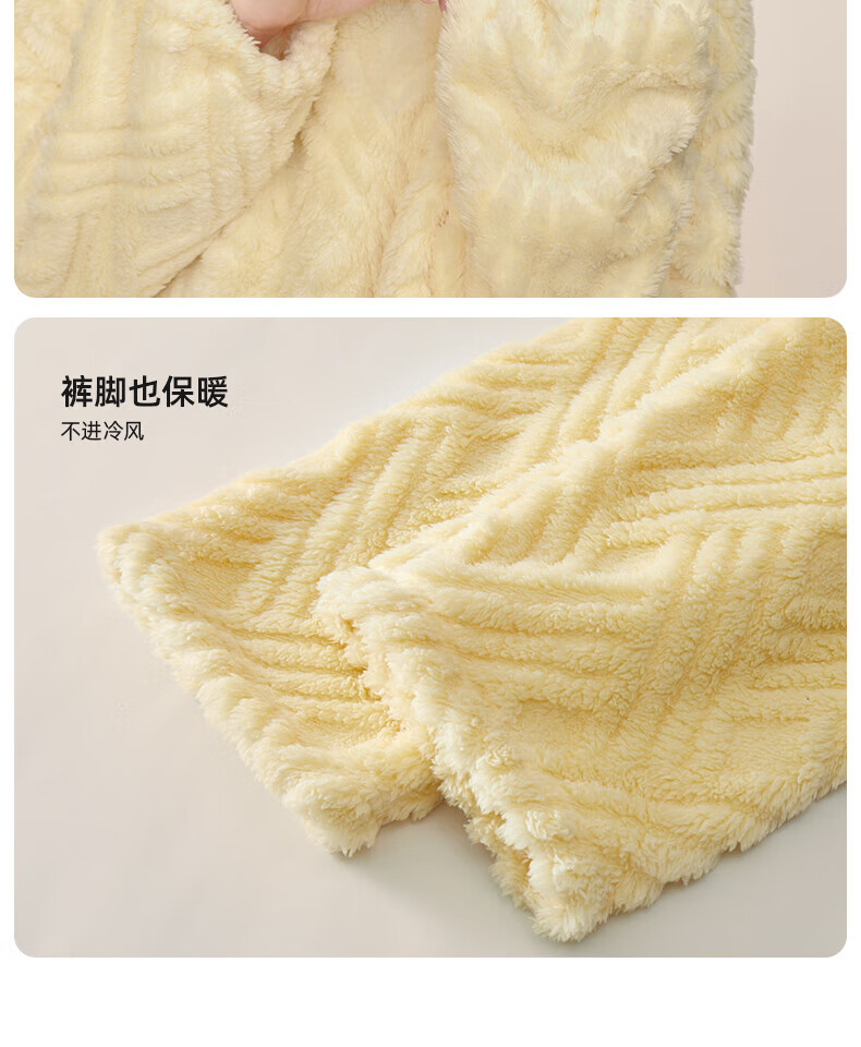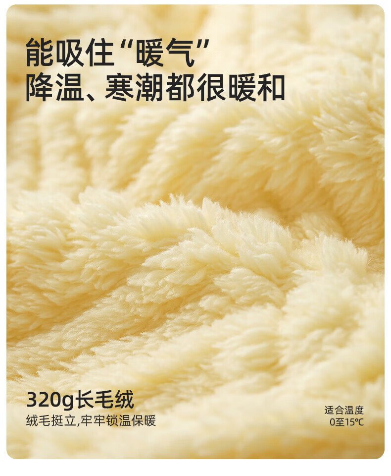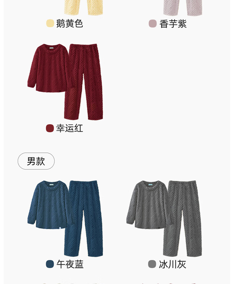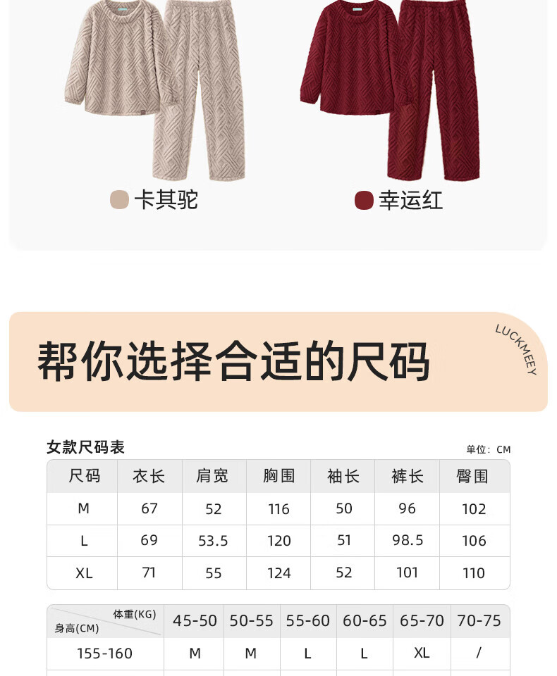 幸棉(LUCKMEEY)家居服女秋冬菱格麻花长毛绒睡衣情侣套装外穿保暖家居服男圆领 奶油白(女款) L (女100-130斤/男100-130斤)